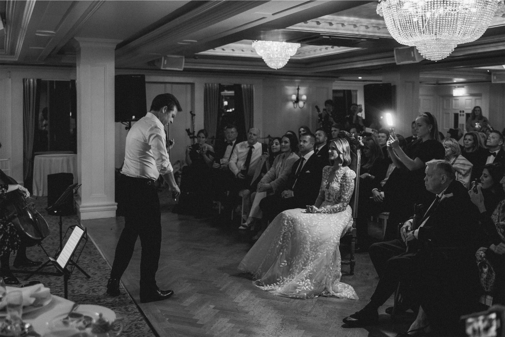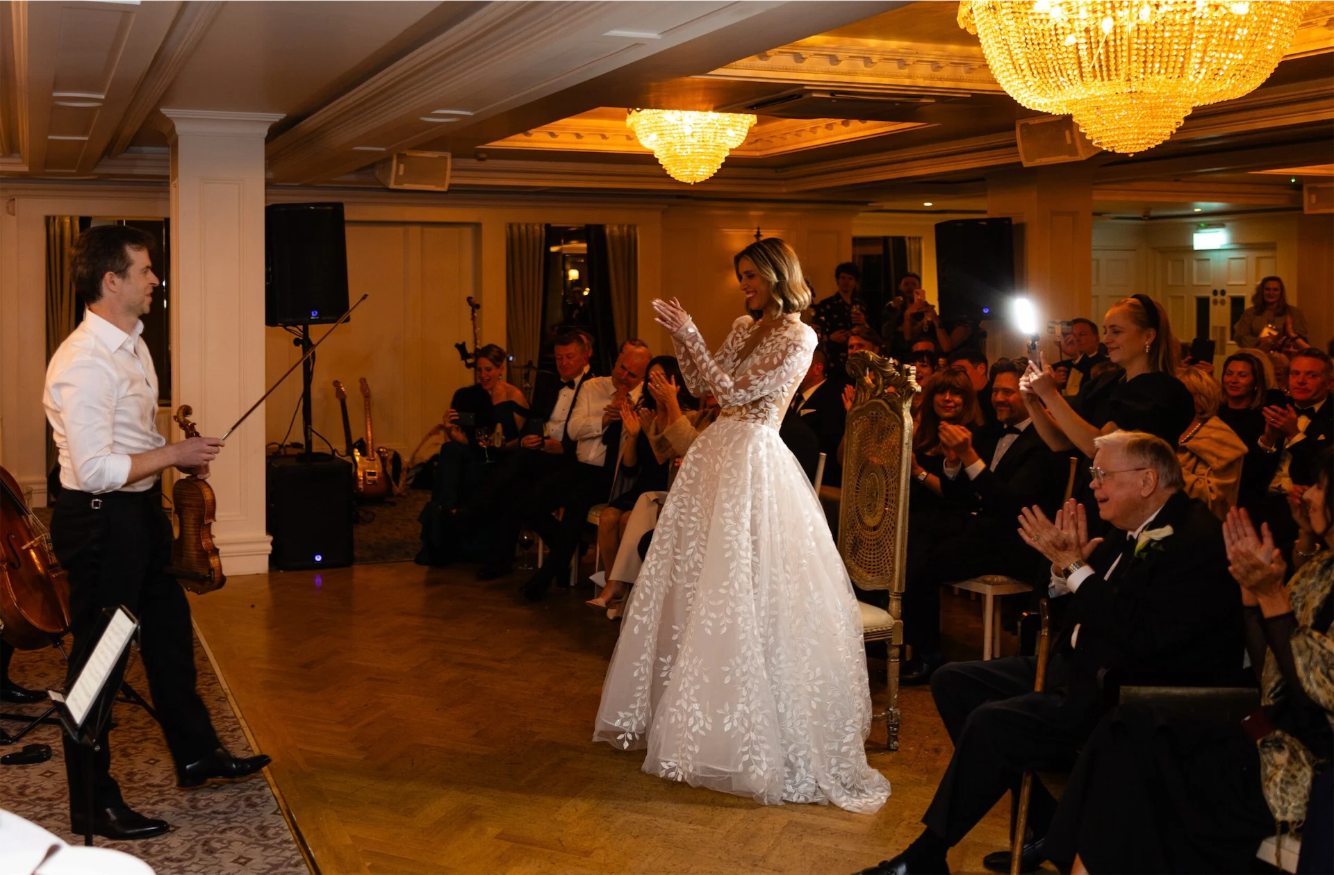 Rather than a first dance, at the end of dessert, Greg performed two songs. While I knew he was going to play, I did not know what songs he had selected! His first song was one he performs often and is one of my favourites, Zombie by The Cranberries. For his second, I didn’t know he had spent months composing a new piece specifically for the occasion that he dedicated to me! Entitled ‘Til The End Of Time, Greg had me – and the entire audience in tears with his sweet surprise.