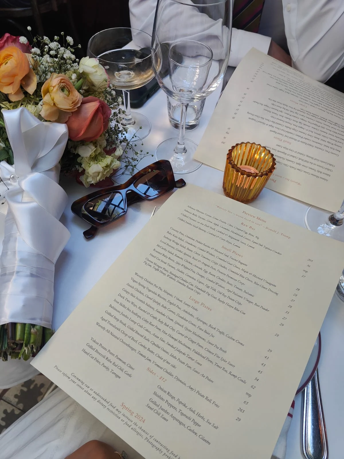 The menu was super charming – above the small plate menu, we saw a quote in brackets “Waverly Inn – ‘The worst food in the city’ – Donald J Trump” – it was a fantastic example of satire and we loved it. The restaurant has an indoor restaurant and a beautiful indoor garden and we were seated in the indoor garden. The restaurant has been there since 1898 and the indoor garden used to be a greenhouse, nestled in the West Village in an old brownstone.
