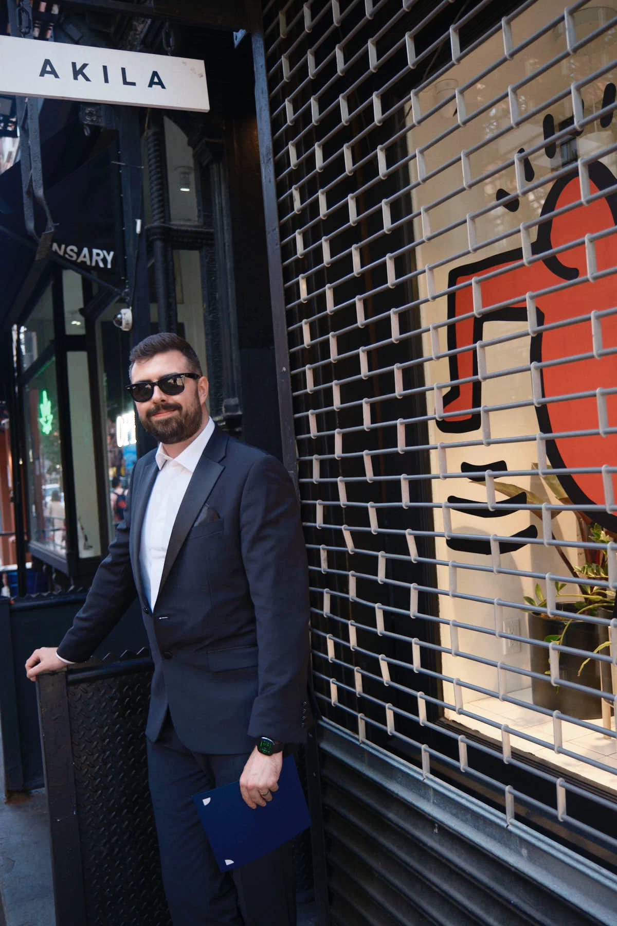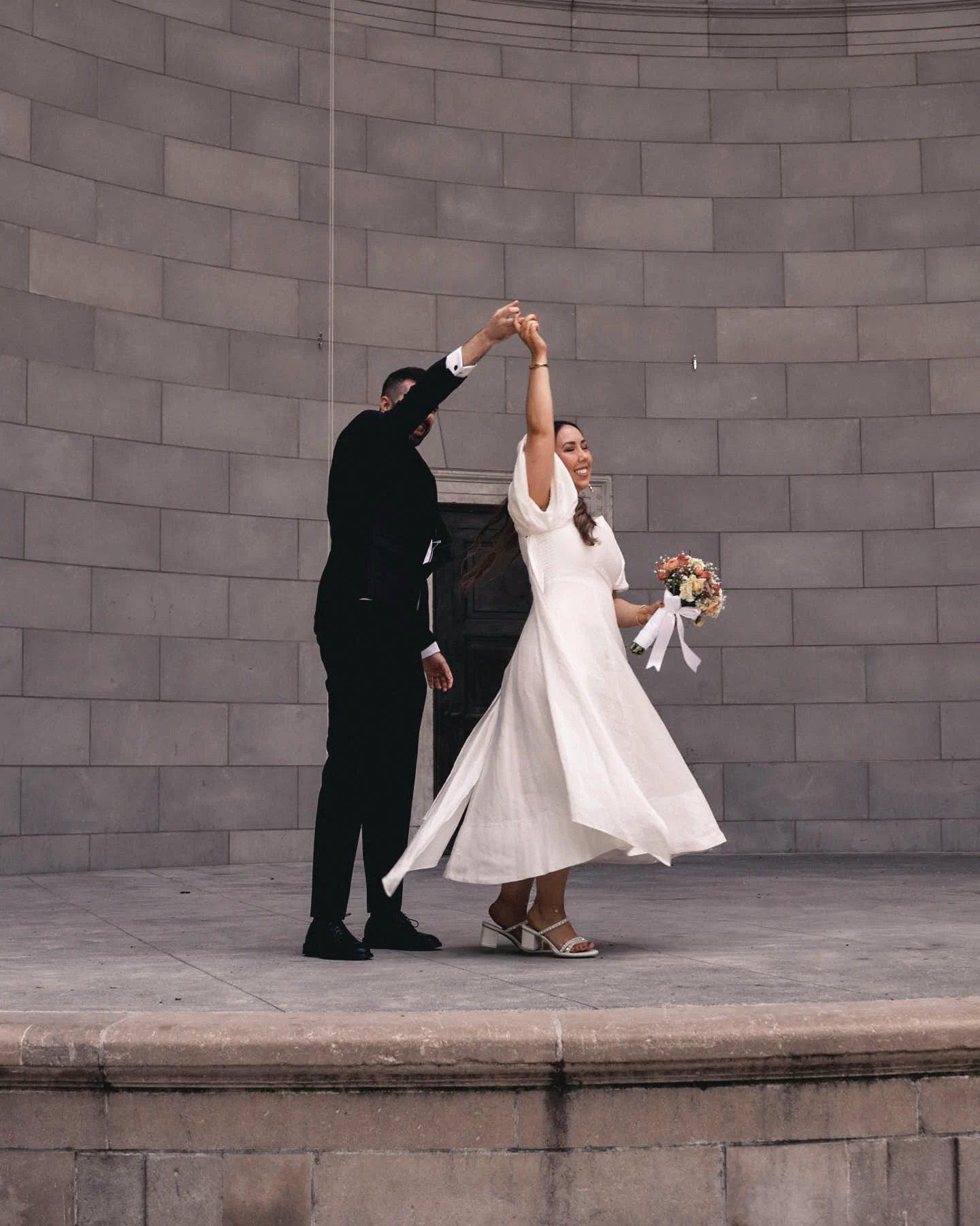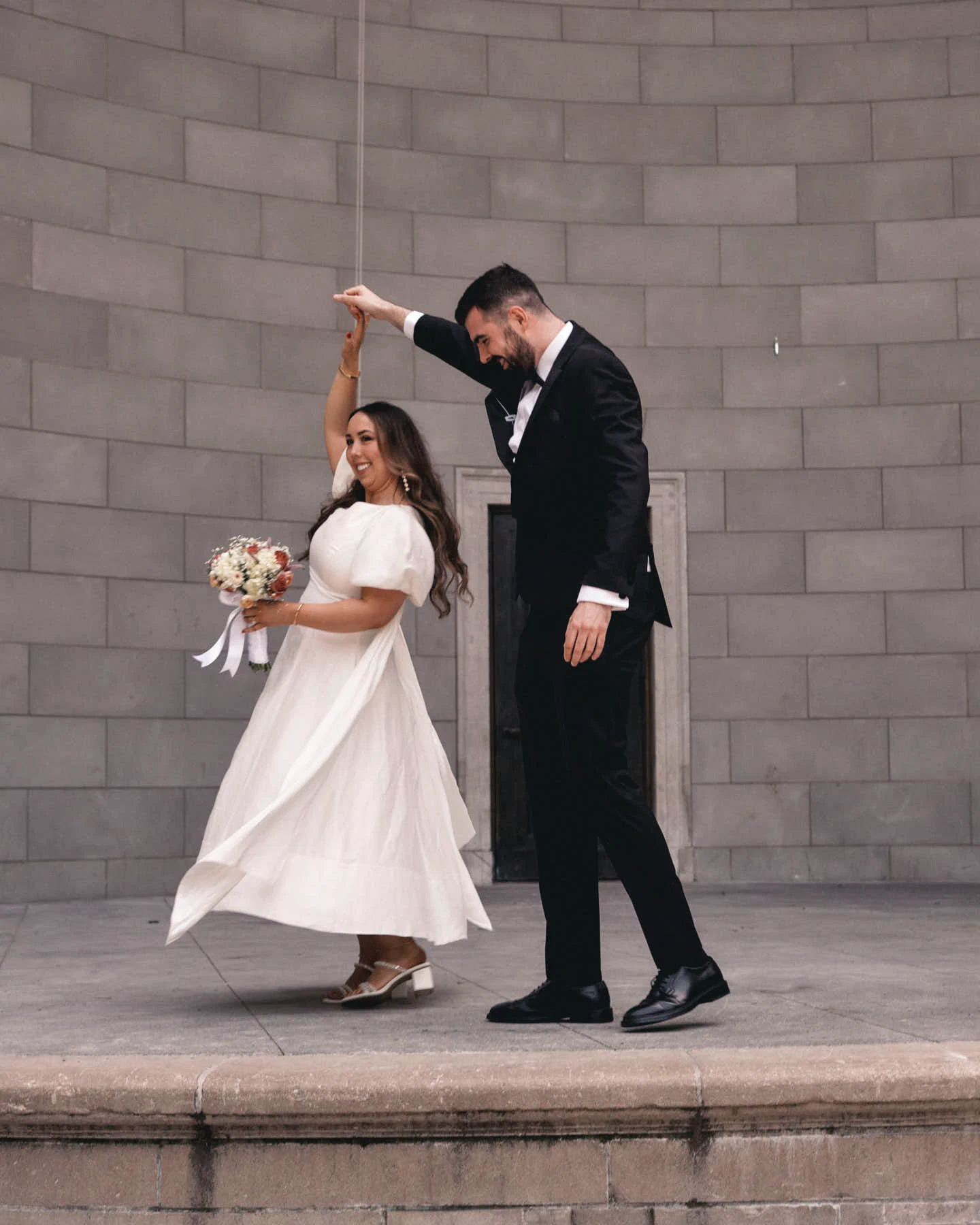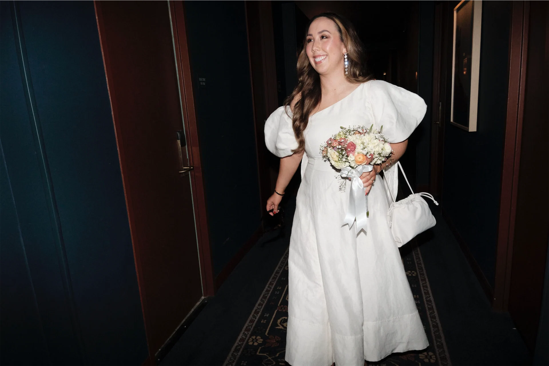 Wedding dress: Aje. Bride’s shoes: Dolce Vita. Bride’s jewellery: Magda Butrym. Groom’s suit: Moss Bros. Groom’s tie: Dior. Groom’s shirt: Remus Uomo. Florist: Bouquet by the beautiful Cira in Wholefoods Columbus Circle. Food & Venue: The Waverly Inn.