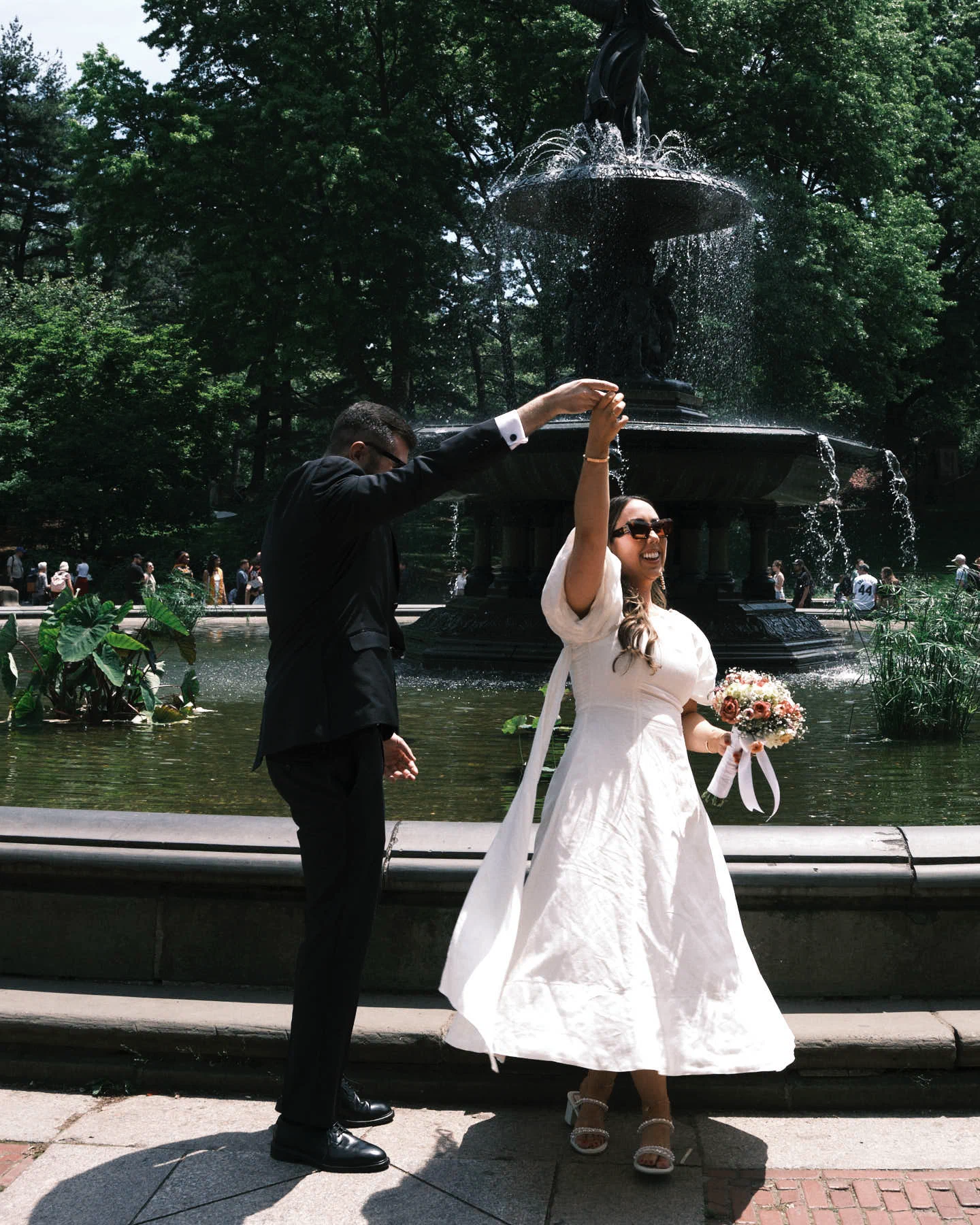 We really enjoyed our first look in Central Park; we literally danced our way to the Boathouse. It was such a beautiful experience and we had so many people wish us well – we really felt the love here! With our closest friends with us, we got the best seat in the house and floated through the afternoon on a cloud of love and of course – champagne!