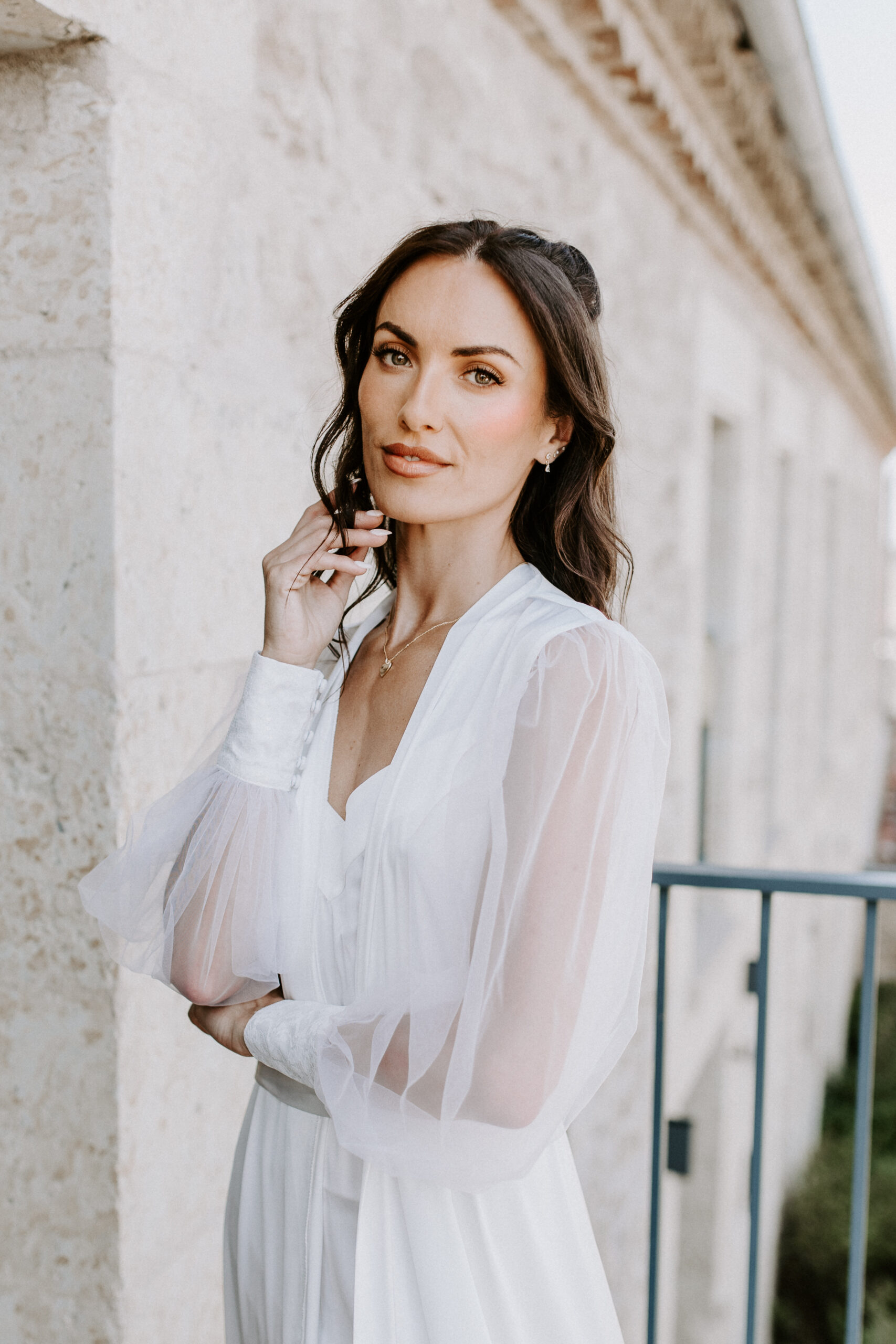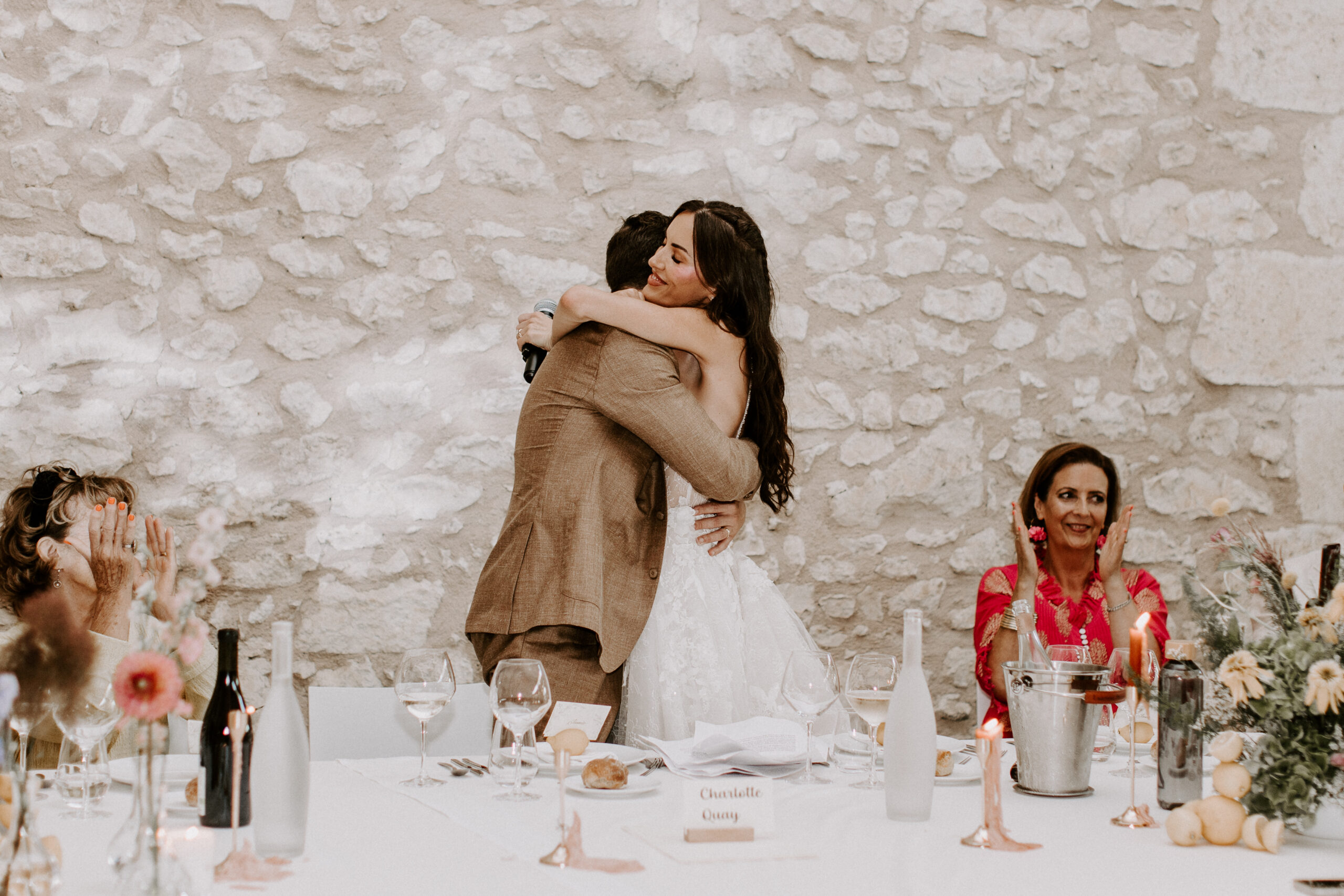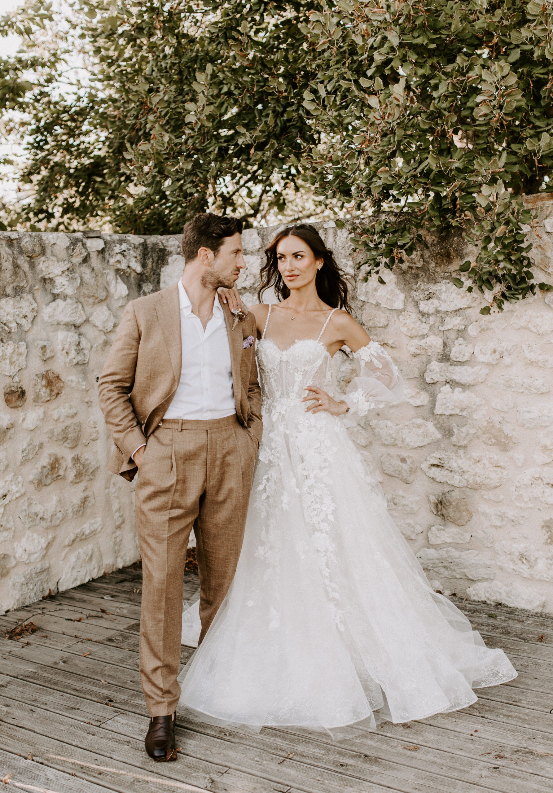Our venue was an old farmhouse converted into a hotel. I loved that there was a rustic feel with the view of the rolling French countryside, the old exposed stone walls, and they had really cute donkeys and chickens on site too. There was also a spa and a chic vibe to the venue.