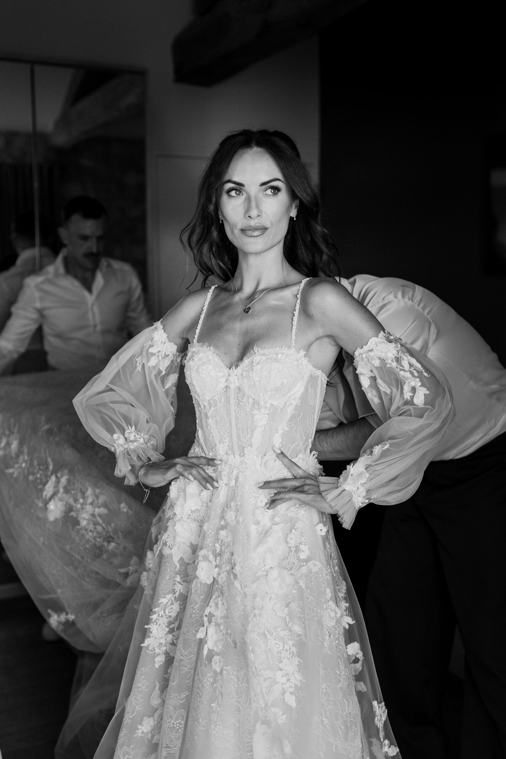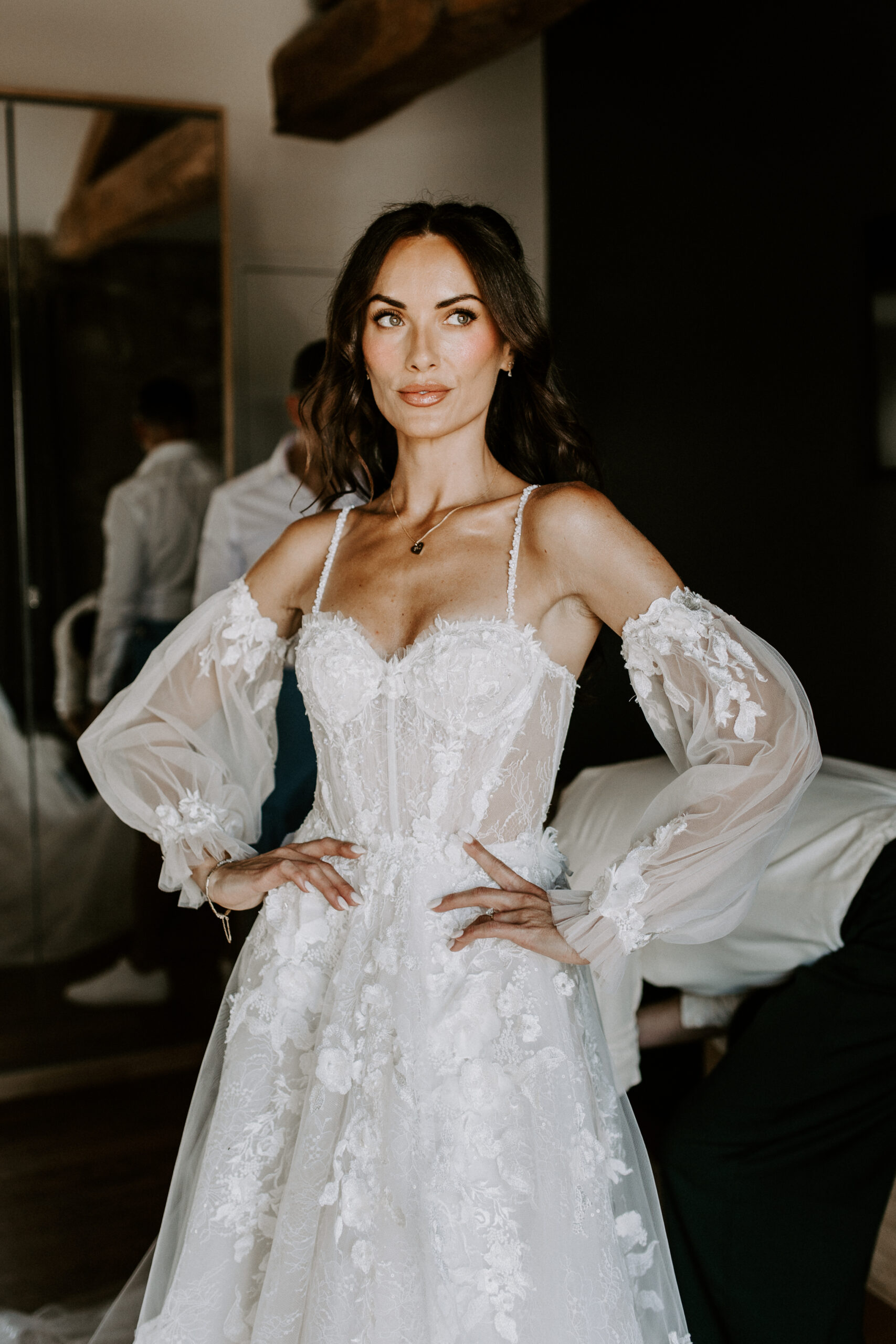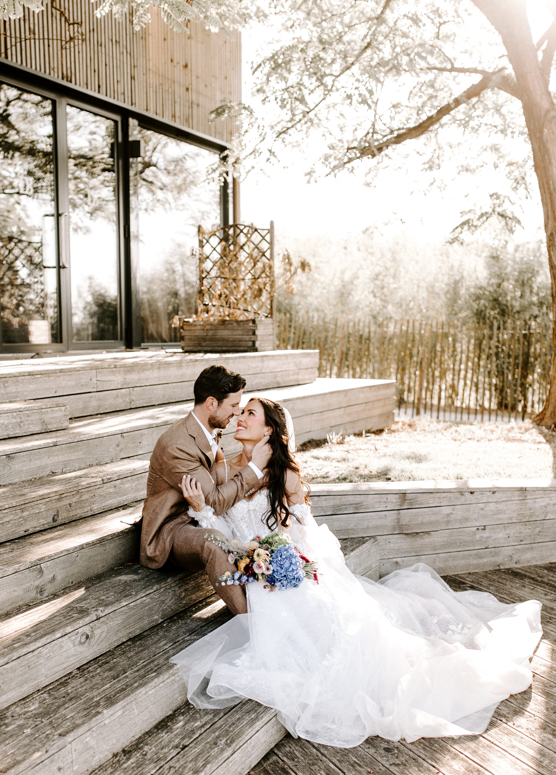 Our venue was an old farmhouse converted into a hotel. I loved that there was a rustic feel with the view of the rolling French countryside, the old exposed stone walls, and they had really cute donkeys and chickens on site too. There was also a spa and a chic vibe to the venue.