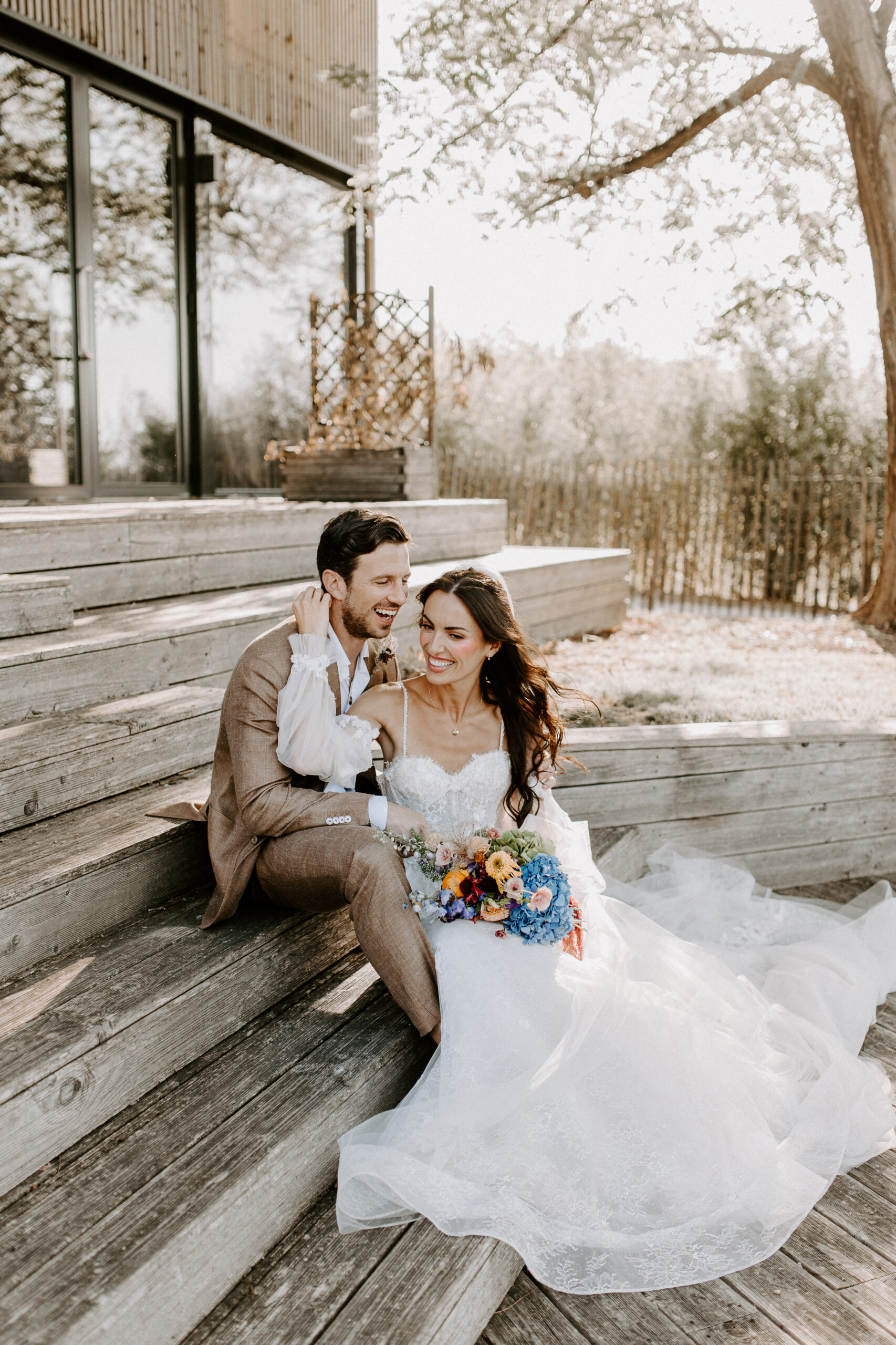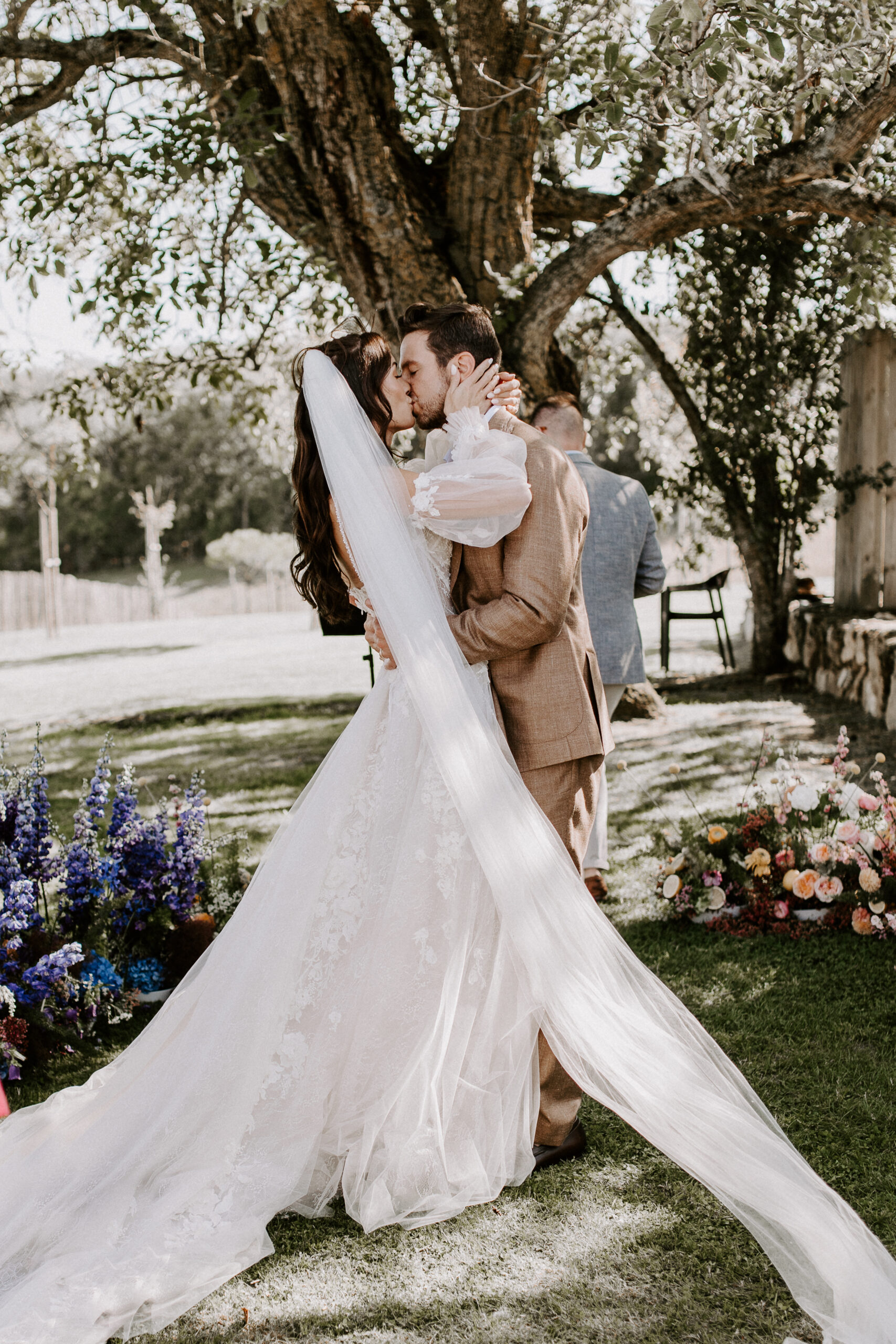 Content creator Holly Carpenter tied the knot with fiancé Jamie Hunt in a rustic French farmhouse setting, followed by a Day Two pool party. The florals were colourful, the mood was fun and dancing went long into the night.