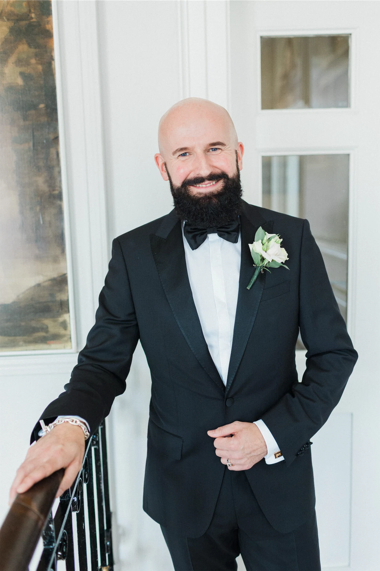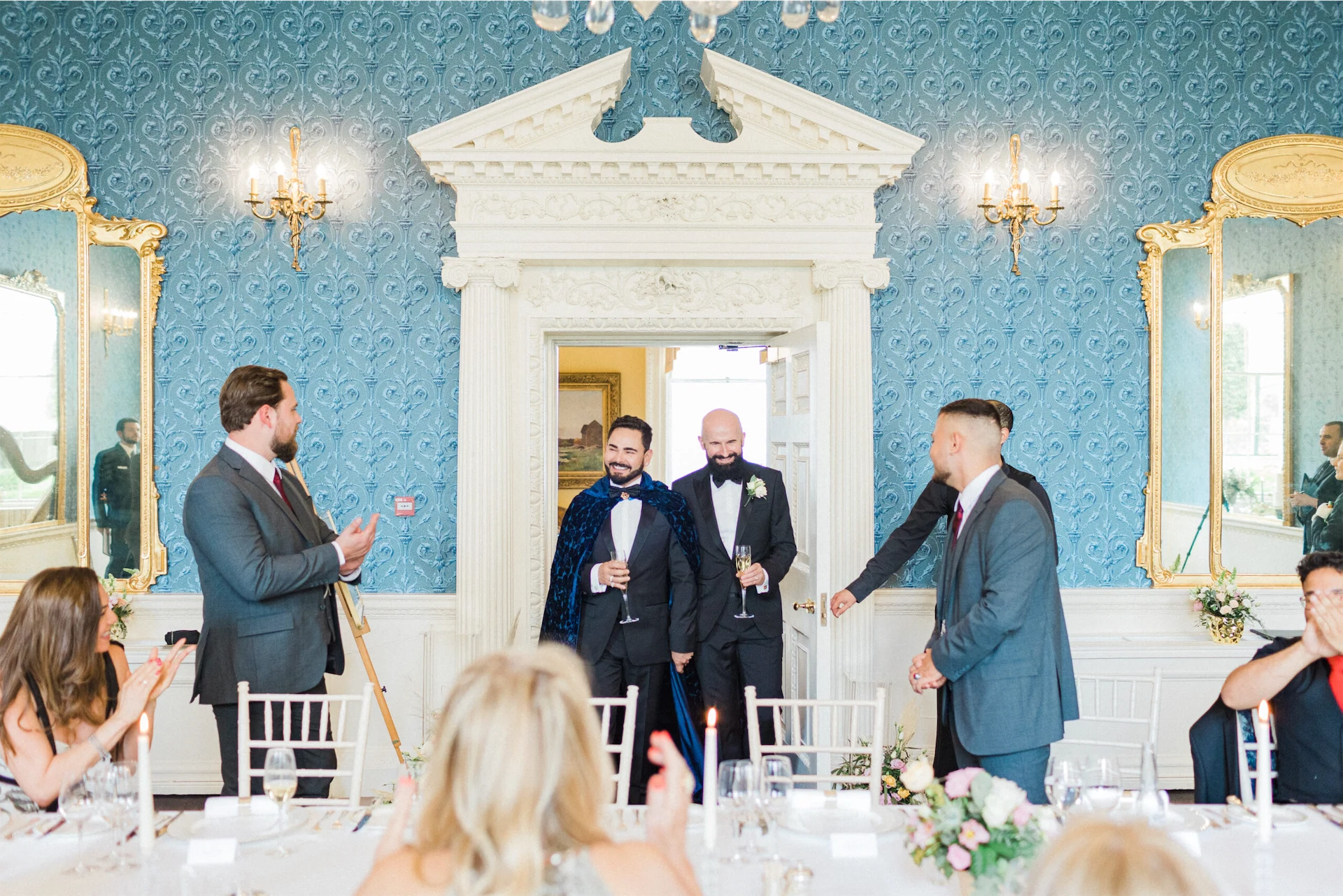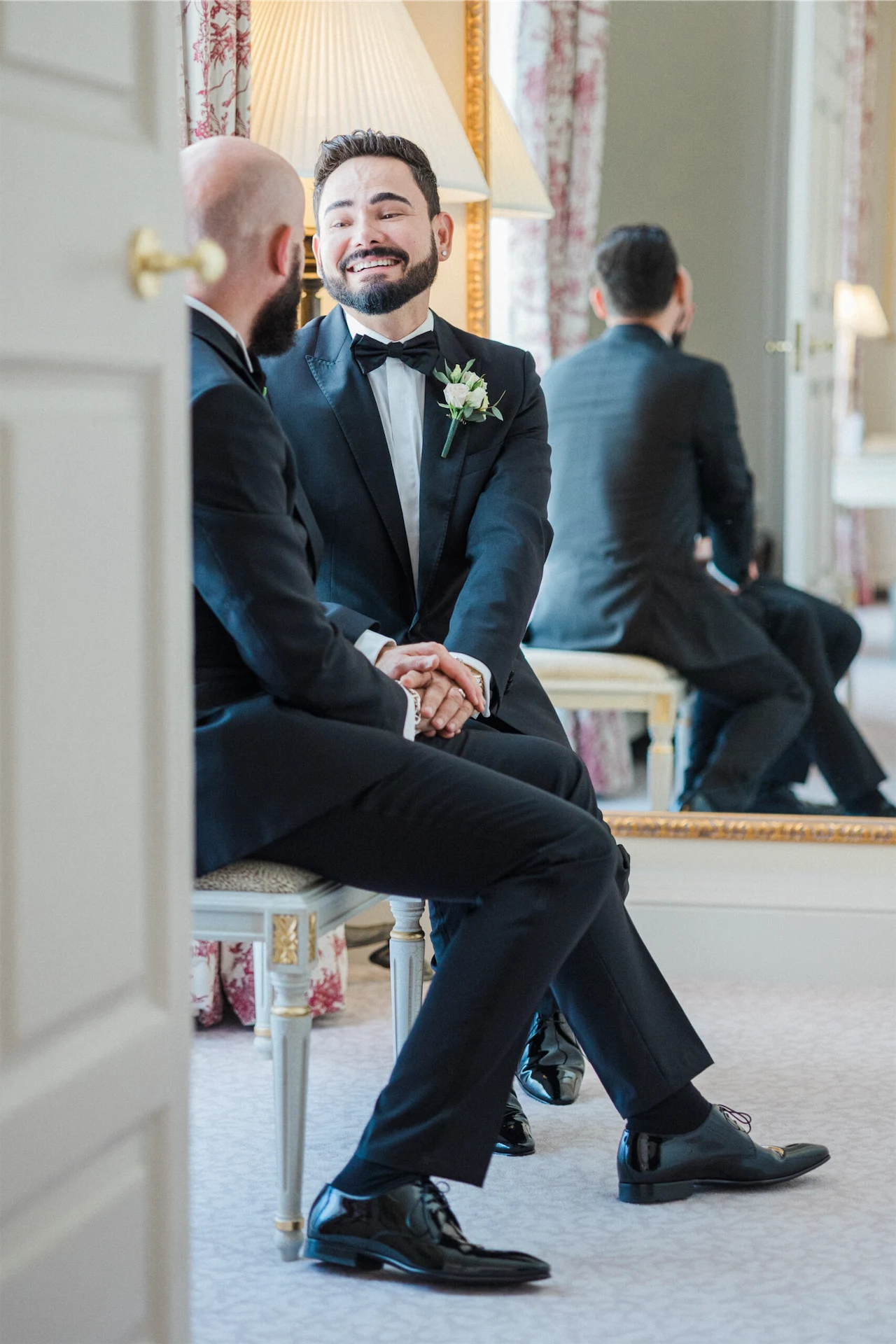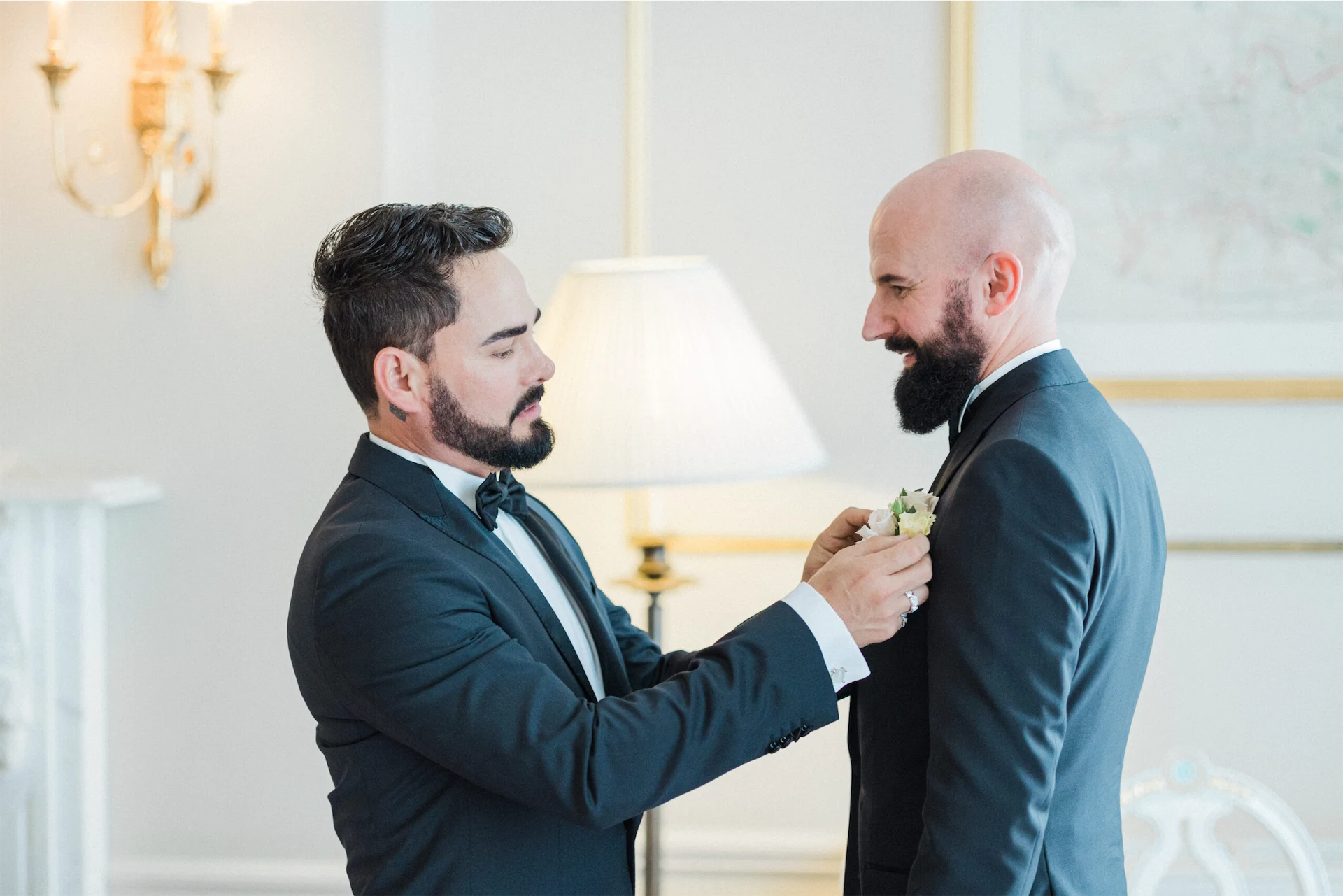 Given the elegant surroundings of The Merrion, a classic and well-tailored tuxedo seemed like the perfect option. We chose Hugo Boss for their full outfits and shoes. However, to add a little extra glamour and presence Hud also opted for a translucent midnight blue cloak from El Costurero Real, Barcelona.