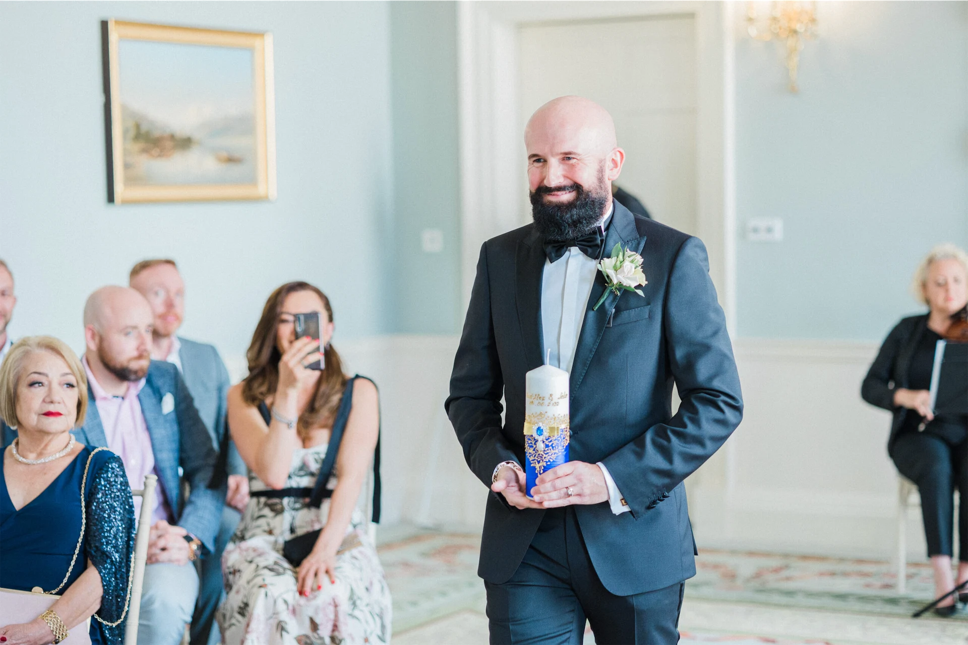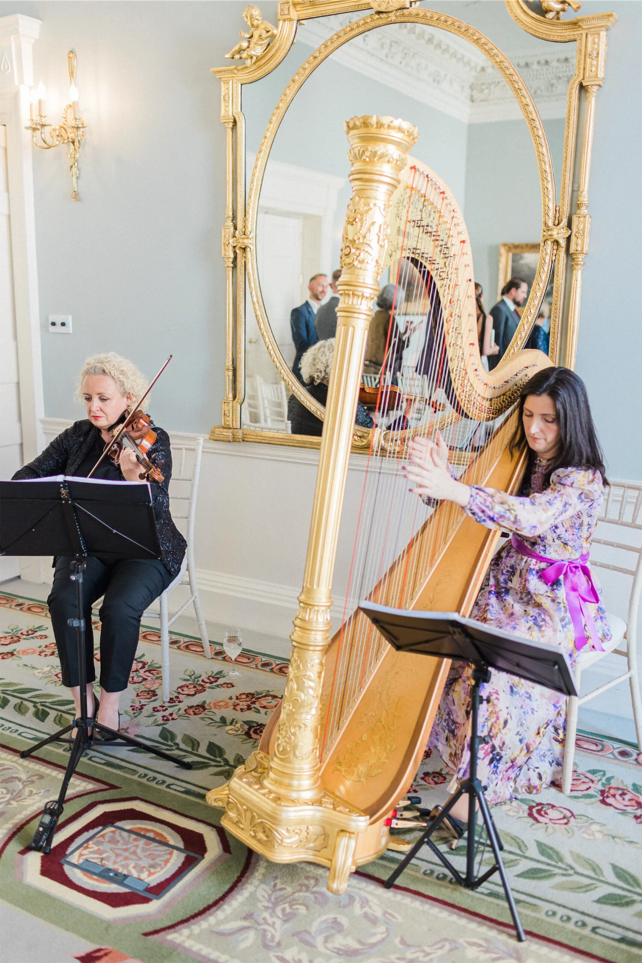 We wanted the music to fit our tastes and be appropriate for the surroundings, so we chose a harpist and violinist to play some of our favourite pieces for the ceremony, and background music for the pre-ceremony and post-ceremony receptions. We found that it provided the perfect ambience and suited the elegant rooms.