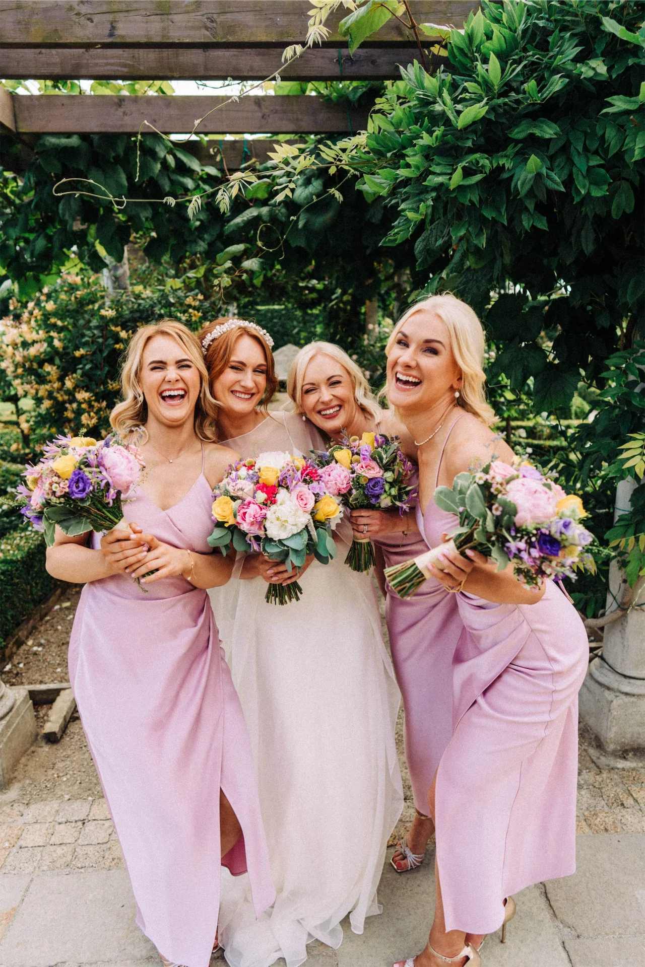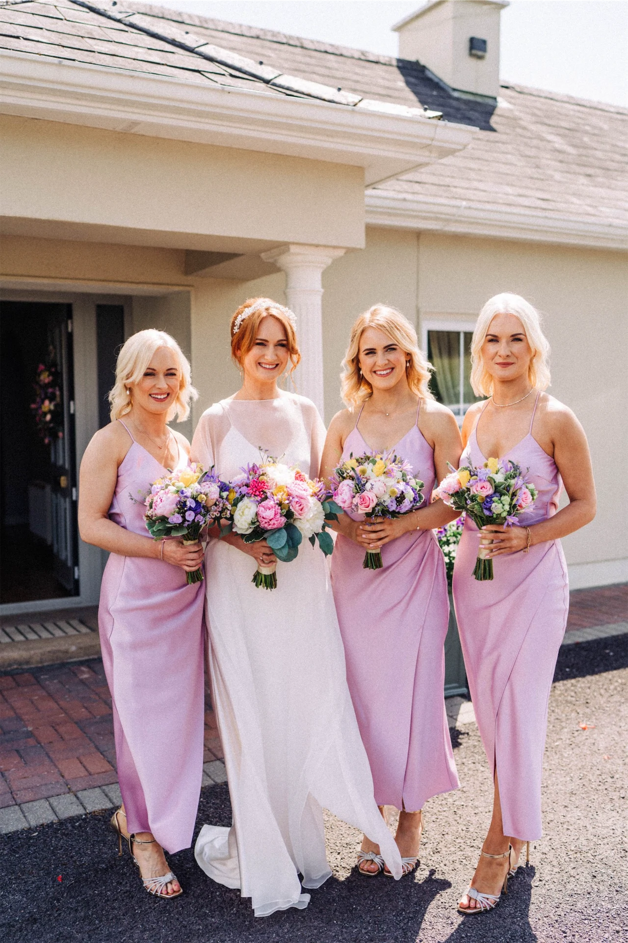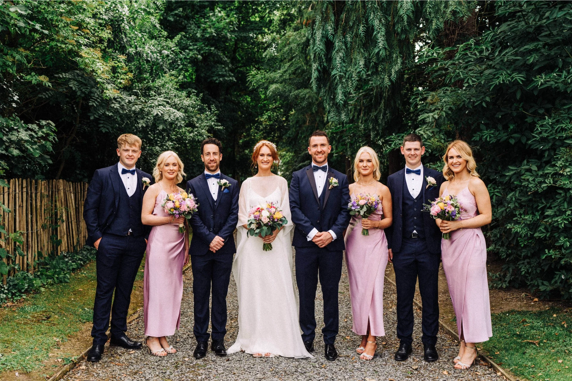 Bride’s Dress: OTADUY. Bride’s Headpiece: Deborah K Design. Bride’s Jewellery: Momuse. Bridesmaids’ Dresses: Karen Millen. Groom’s Tux: Remus Uomo. Groomsmen & Fathers’ Suits: Tom Birmingham Menswear, Mullingar. Bouquets and Altar Flowers: Flower Innovations. Cake: Sweet Tuite Cakes by Edel Tuite. Hair: Denise Bray. Make-up: Anne Marie Doherty. Videographer: Sean Curtis.