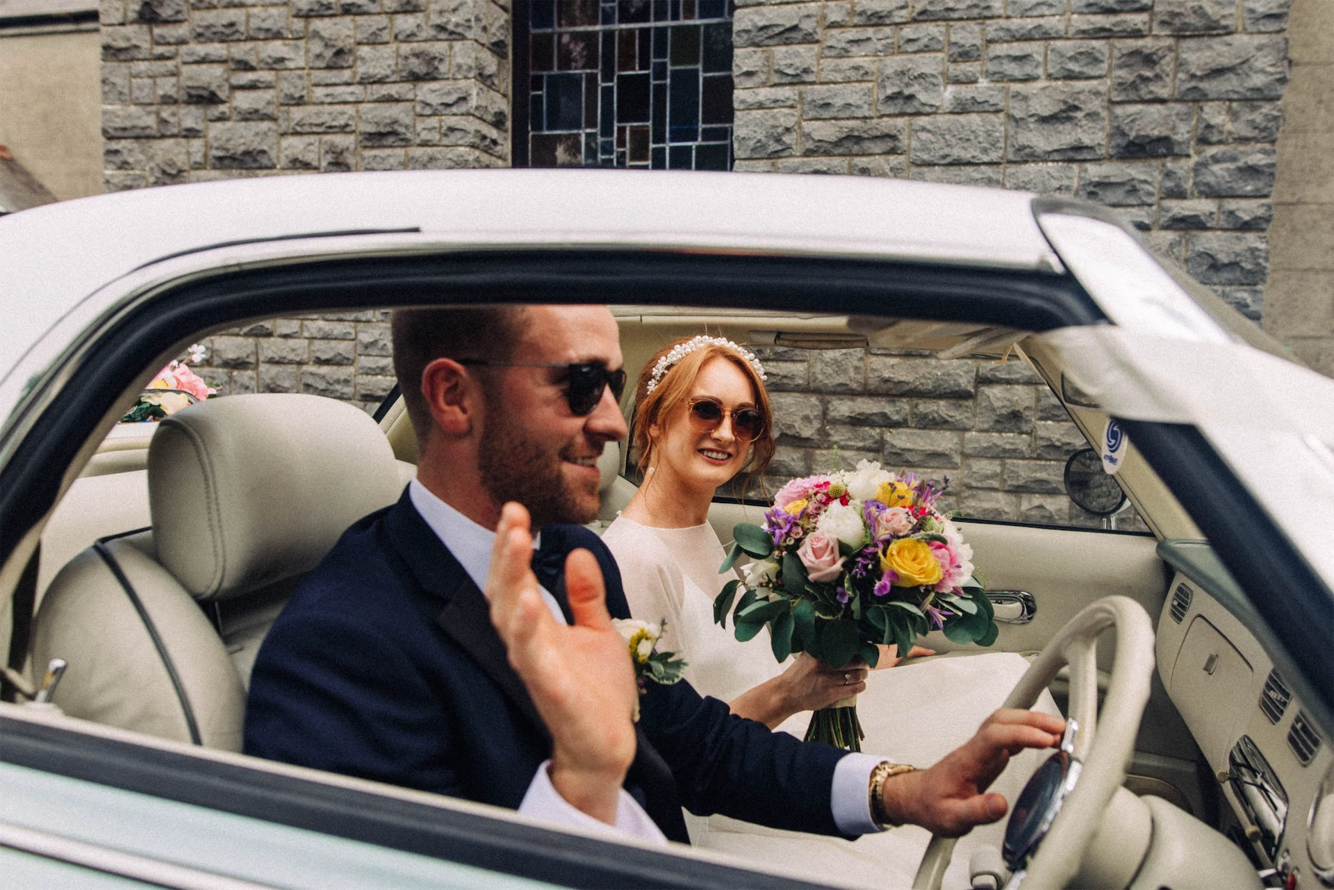 After nearly a decade together, these secondary school sweethearts finally tied the knot at Bellingham Castle. Their fun and colourful wedding included a ceremony at their local church, DIY flower decor and a special, vintage car.