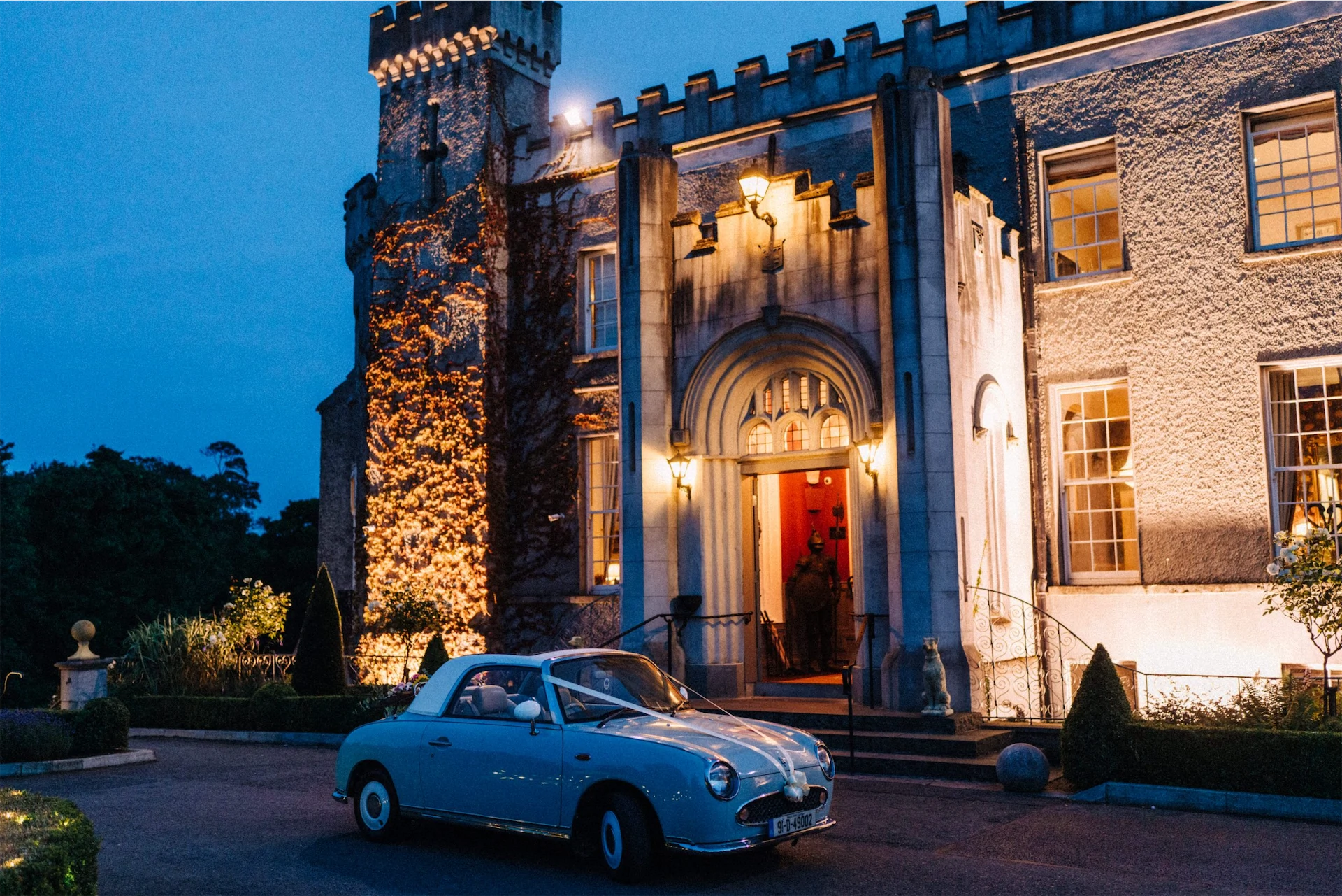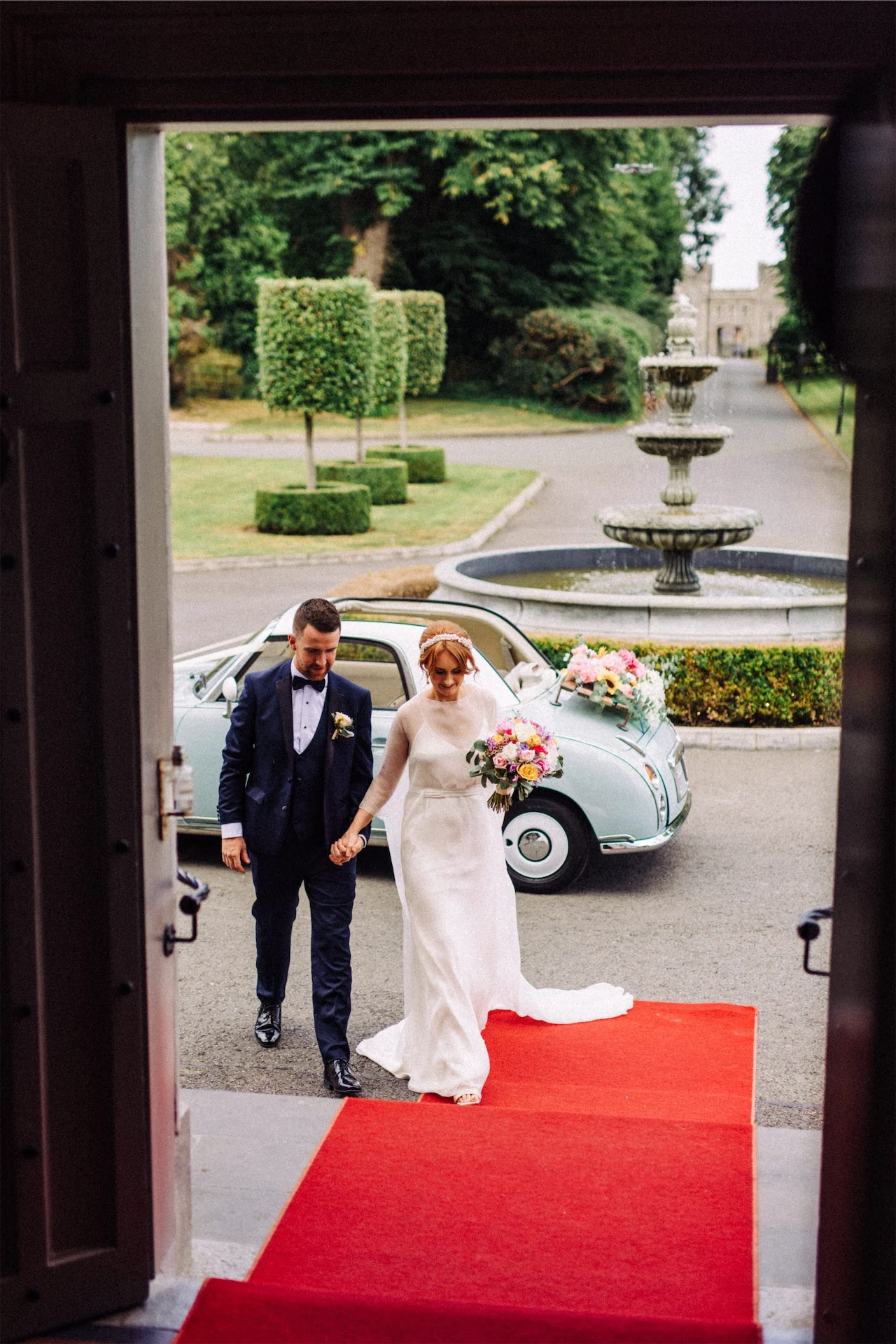 After the ceremony, Paula and Patrick hopped in a Nissan Figaro that was lovingly restored by Paula’s dad Michael and borrowed from her sister Lynda. (It was her something old, borrowed and blue!). They drove to their reception which took place at Bellingham Castle in Co Louth.