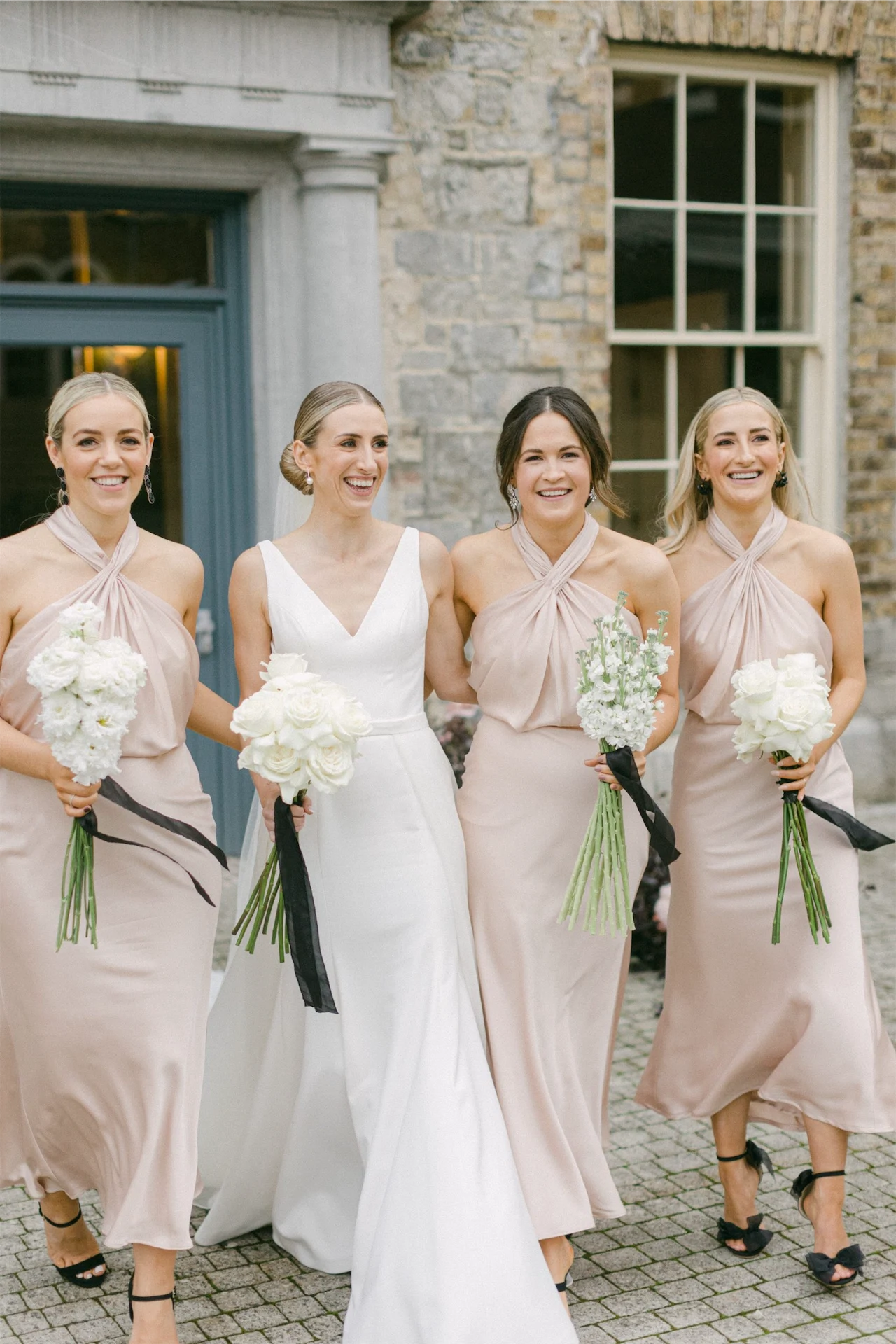 Bride’s Dress: Justin Alexander. Bride’s Earrings: One Dame Lane. Bridesmaids’ Dresses: ASOS. Groom’s Suit: Galvin For Men. Rings: Mathew Weldons, Courtville. Make-Up Artist: Aoife Callaghan. Hair Stylist: Catherine Redican. Wedding Planner & Stylist: Maria Reidy Events. Florist: Bella Botanica. Stationery: Adam McKiernan. Celebrant: Amy Browne. Rentals: Signature Rentals, Select Hire & Total Event. Food: Sally Ann Luykx & Event Waiter. Band: Jo Petit and the Dream Band. Trio Strings: Bow Musique. Videographer: Irish Eye Wedding Videos.