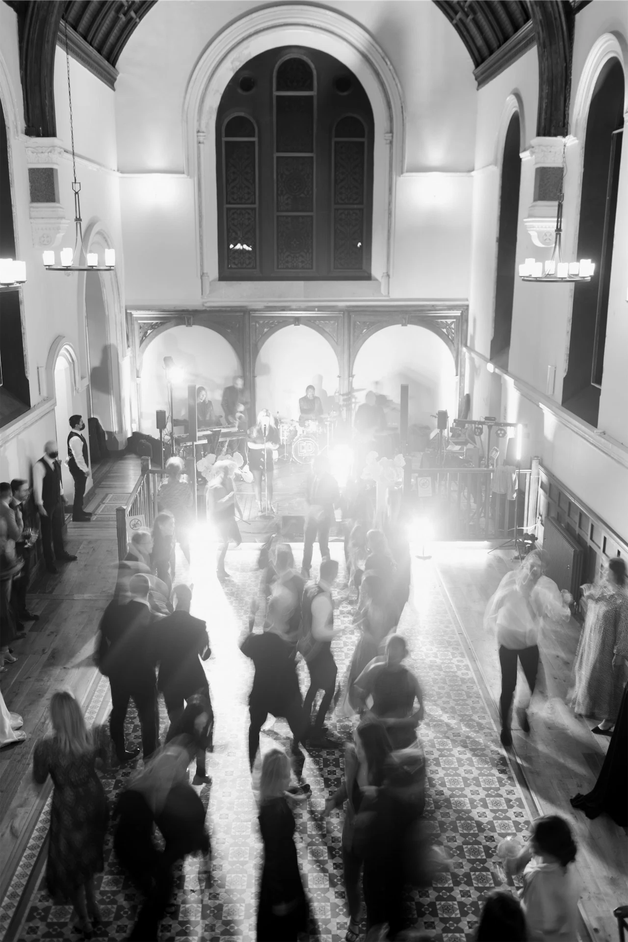 We had the Abbey exclusive to us on our wedding day, so the chapel was transformed into a dancing space while we enjoyed our wedding meal. Our guests were so surprised – the room was totally transformed with mood-uplighting, black velvet cocktail tables and a dance floor. We had the phenomenal Jo Petit and the Dream Band entertain our guests. The dance floor was full all night!