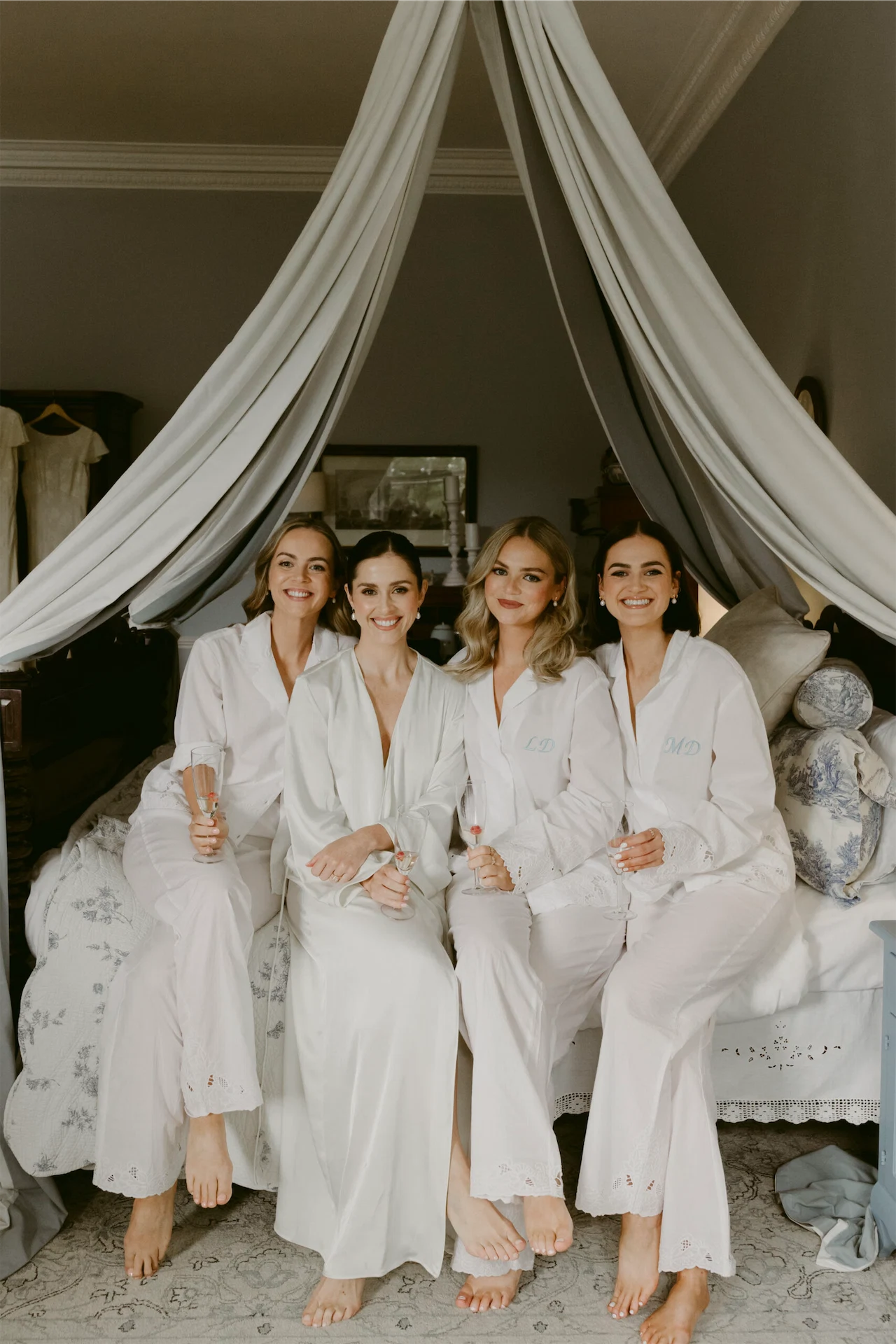 Hair: Melanie Byrne. Flowers: Fields Florist. Venue flowers: The team at Clonwilliam. Food: Naomi’s Kitchen. Cake: My mum made our wedding cake – three tiers of glorious chocolate biscuit. Band: Mixtape. Ceremony music: Kavanagh Ensemble and Rachel Grace. Bridesmaid dresses: Rixo. Bridesmaid PJs: H&M with embroidery from N1 Embroidery in London. Jewellery: My earrings were a gift from my parents and my bracelet from Richie.