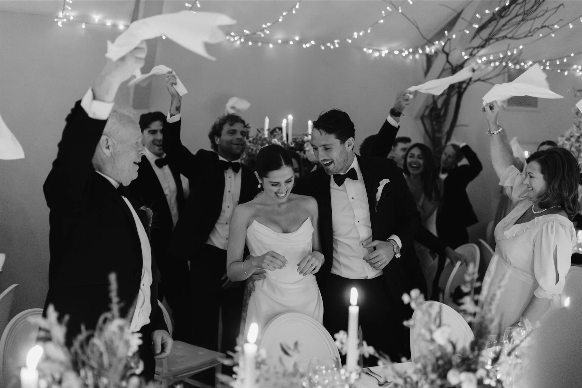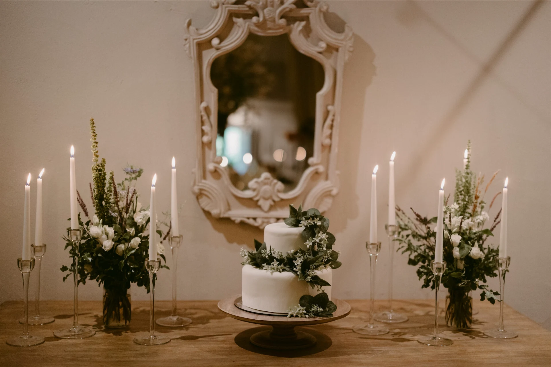 After some speeches outside under the most beautiful flower arch prepared by the Clonwilliam team, we then moved into the dining room. Miriam and her team had prepared the most stunning set-up and the room was filled to the brim with wildflowers and candles. The atmosphere was absolutely electric (probably thanks to the Hugo Spritz cocktails at the drinks reception). We enjoyed every single second and still dream about our incredible wedding dinner prepared by Naomi’s team.