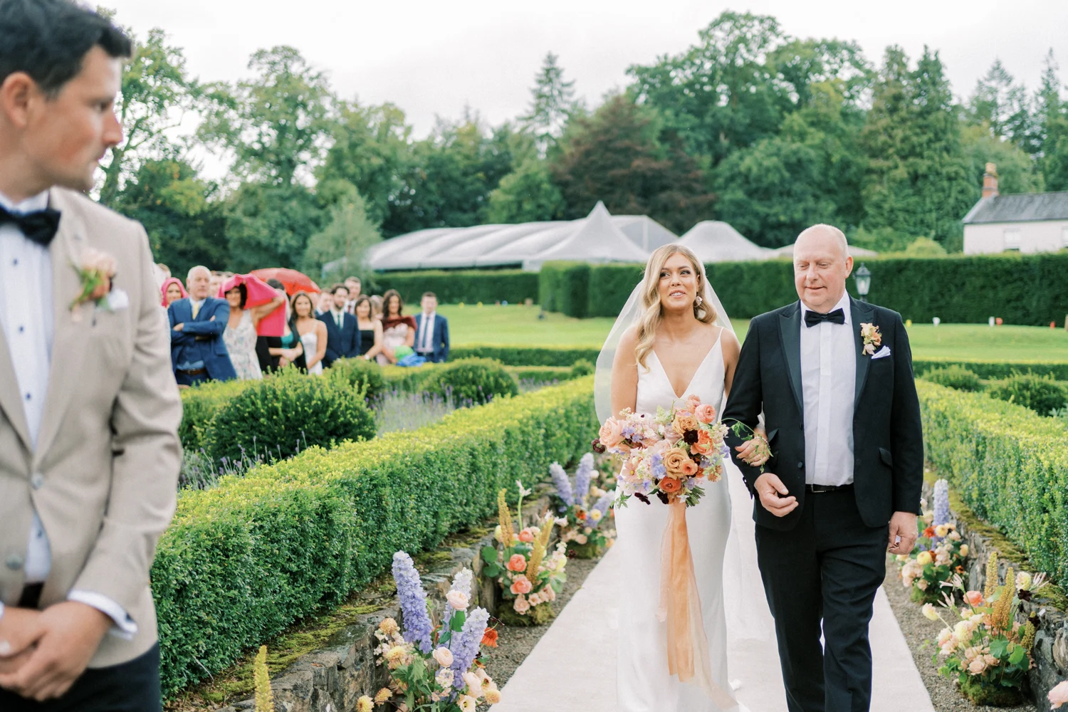 Bride’s Dress: Alexandra Grecco. Bridesmaids’ Dresses: Ghost. Groom & Groomsmen’s Suits: Remus Uomo. Florist: Floral Earth. Make-Up: Sue Brophy. Hair: Shakira Clohessy. Ceremony Music: Joe Kenny. Drinks Reception Music: One For The Road. Band: ReJig. DJ: DJ and Sax. Videography: Rabbit and the Fox. Rings: Pascale James. Cake: Primrose Lane Bakery.