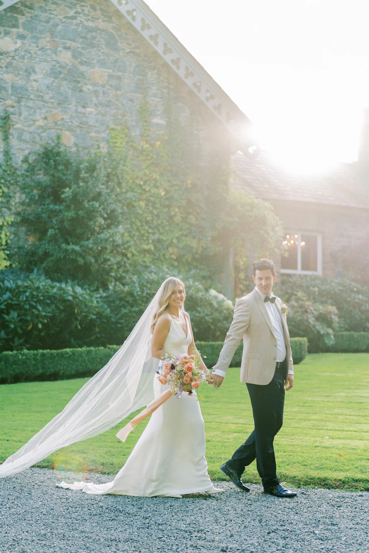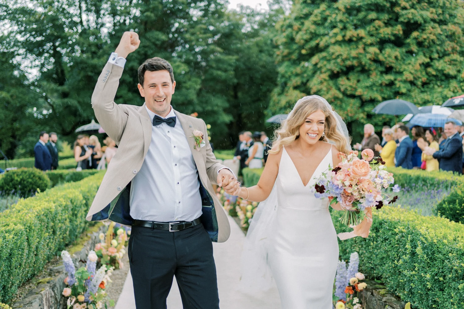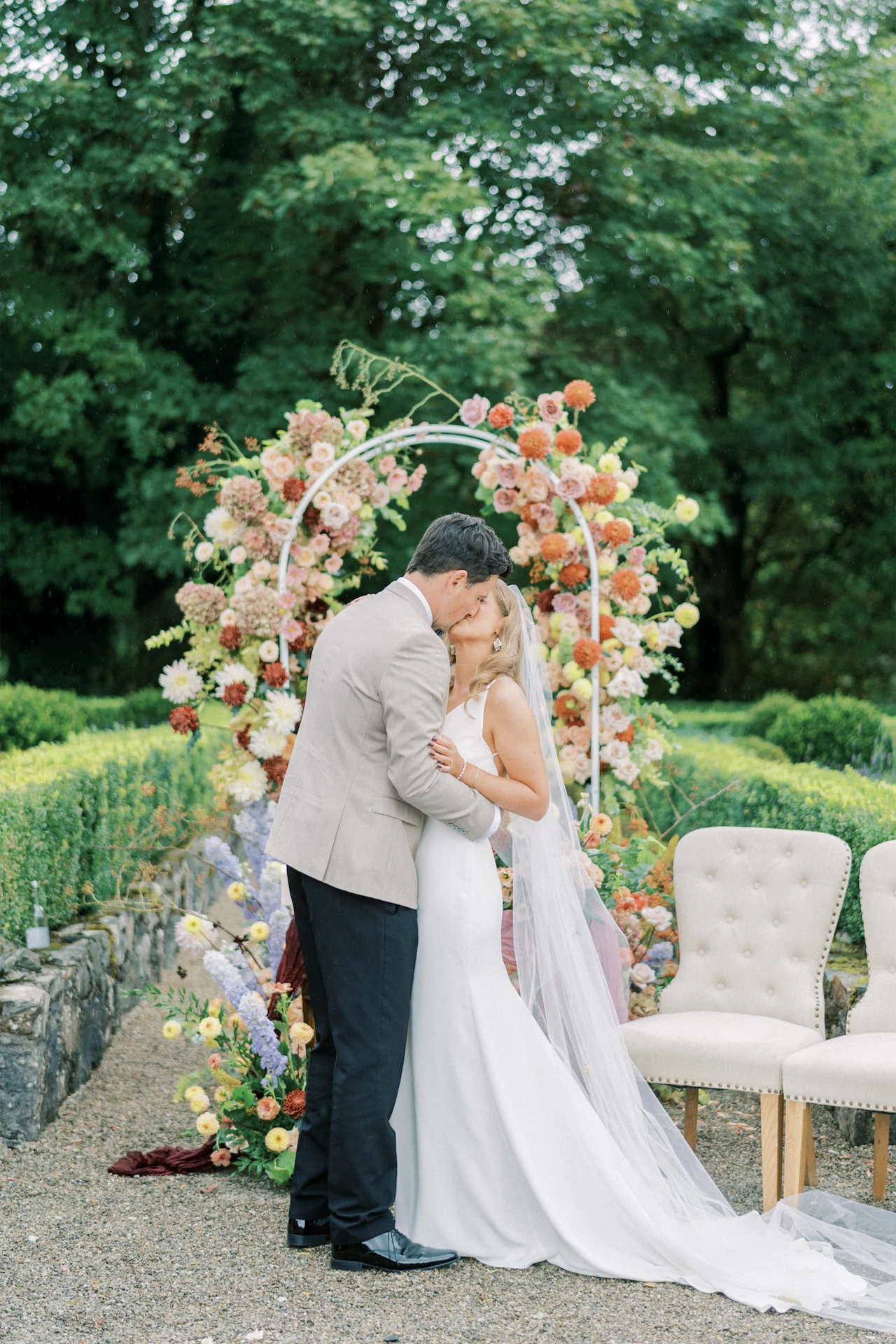 After falling head over boots at a country music festival years ago, Kim and David recently tied the knot at an award-winning country house in Co Cavan, bedecked with beautiful pastel florals and twinkling fairy lights.