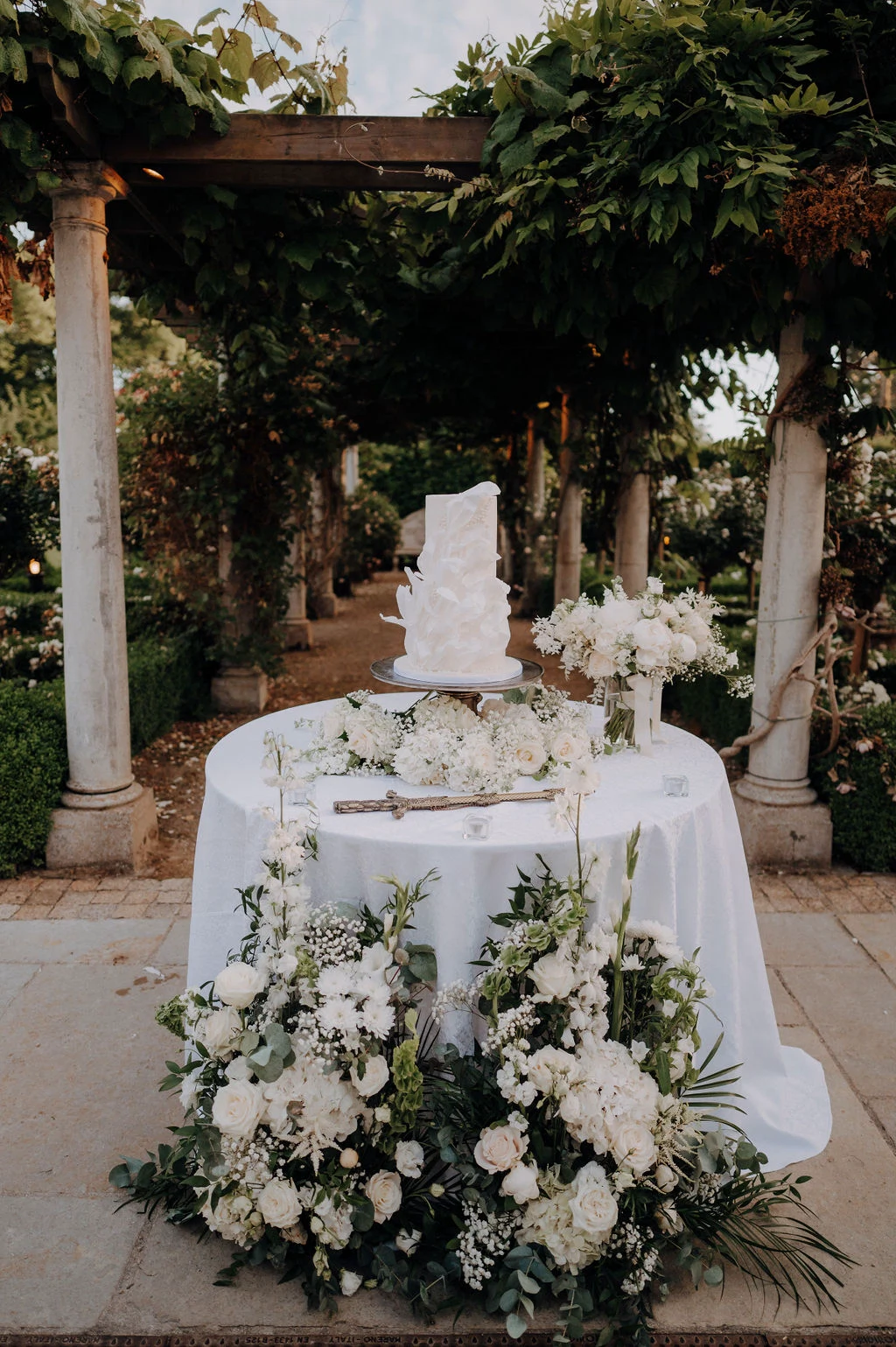 Wedding Dress: Elysee from Knutsford Wedding Gallery. Bridal Shoes: Sophia Webster. Groom’s Tux: Reiss. Groom’s Shoes: Christian Louboutin. Entertainment: The Event Band, Alana Fox, and DJ & Sax. Bridesmaids’ Dresses: Style Cheat. Groomsmen’s Suits: CT2 Suits. Cake: Pearly Cakes. Flowers/Decor: Finesse Weddings. Stationery/Signs: Dusty Rose Designs. Hair: Debonair Hair, Lindsey Burke. Make-up: Natasha Ray. Videography: VowArt. Wedding Rings: Cara Jewellers Dubai / Cartier. Dress alterations: Bridal by Tamem Michael.