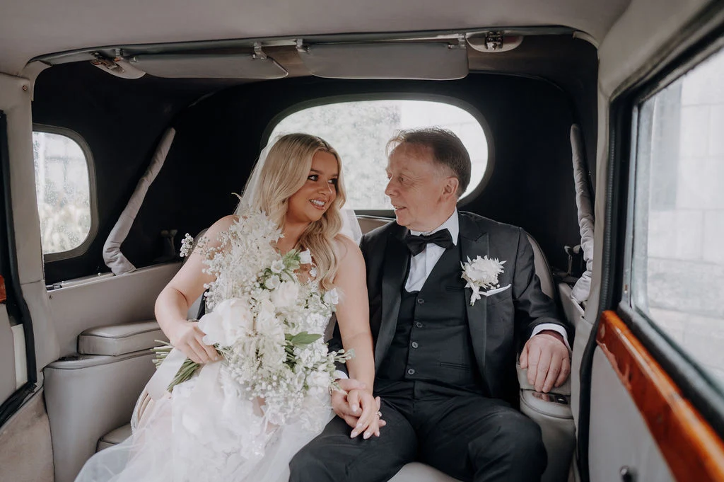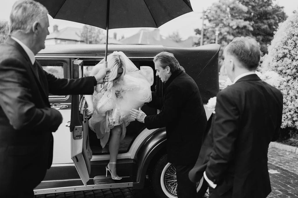 We got married in June, thinking we would be safe from the rain, but from the minute we woke up, the rain didn’t stop. I checked the weather all morning and could see no rain in Louth, and was confidently saying how it’s going to be sunny at our reception. But, in the wedding car driving to the venue, the closer we got, the rain wasn’t subsiding. The driver had us laughing, slagging my optimism, but when we drove into Bellingham Castle, it stopped – it was honestly a miracle! There were blue skies; our guests all could have their reception canapes and drinks outside.