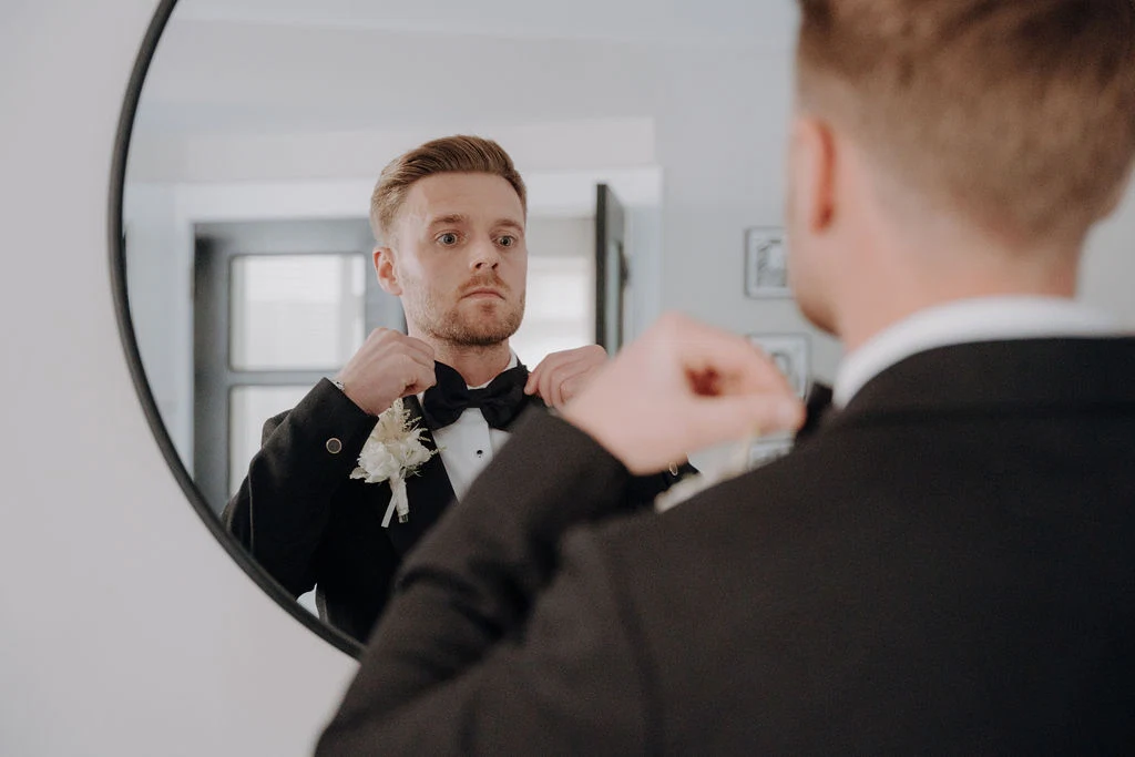 Conor’s tuxedo was from Reiss, and he got it tailored in the Alteration Centre off Grafton Street. His shoes were Christian Louboutin.