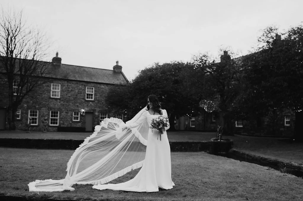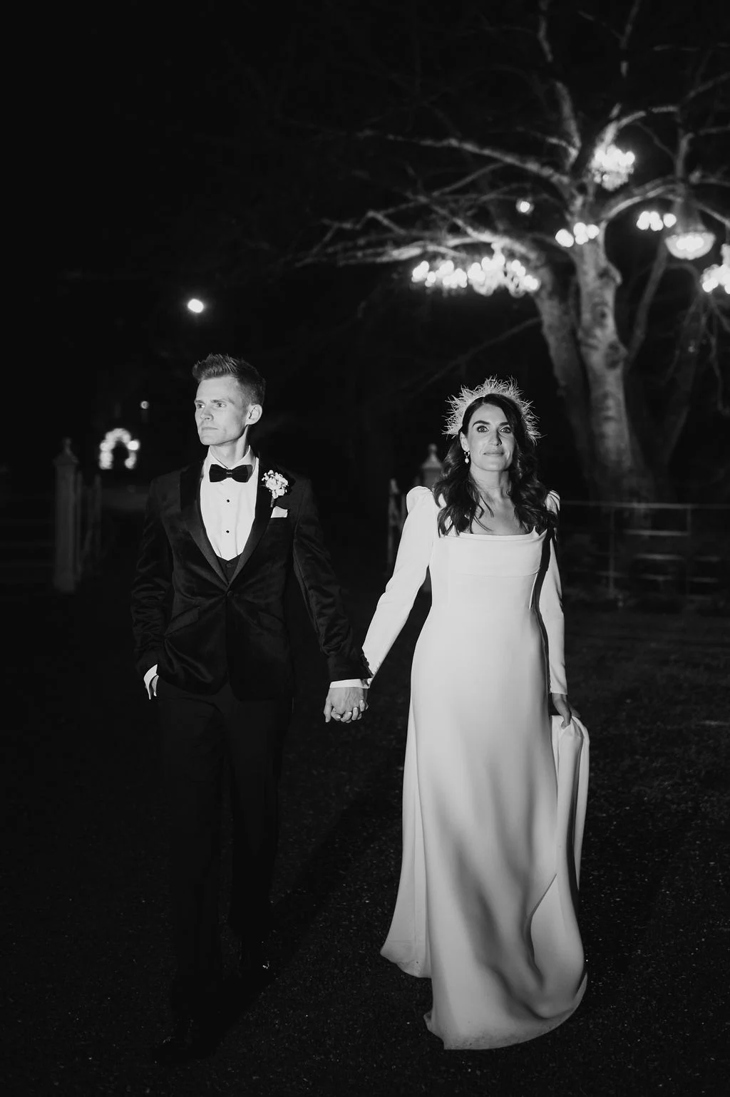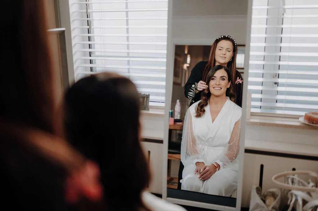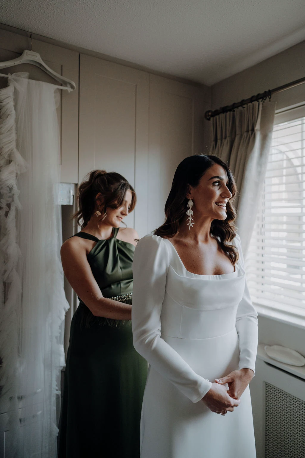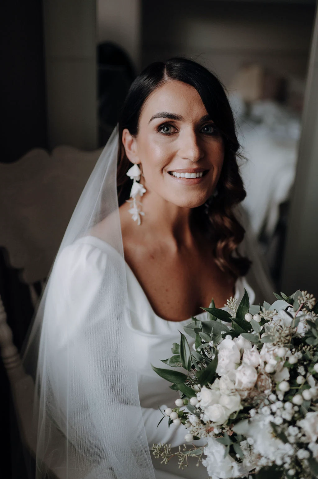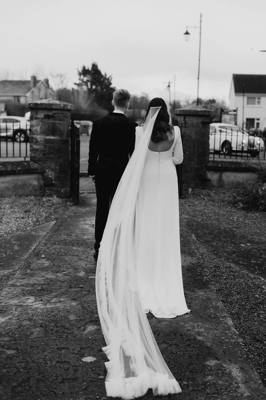 I wanted to keep my dress classic so that I could add some statement accessories. My veil was from Blue Meadow, as were my earrings. Just before dinner, I made a subtle change to my look and instead of my Blue Meadow veil and earrings, I wore a beautiful, feathered hairband for the rest of the night from Designed by Nua, an Irish-based bridal accessories brand and accessories from Betty and Biddy.