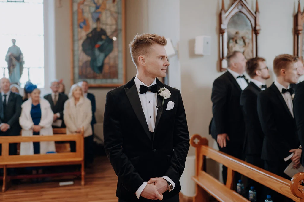 Marc’s quest for the perfect wedding attire was much more straightforward and unsurprisingly, he found his suit in the first shop he went to! Having come highly recommended, Marc purchased his suit in a local menswear shop, Richie Whelan’s Menswear in Naas, Co Kildare. He wore a classic tuxedo with a black velvet jacket to add a modern twist.