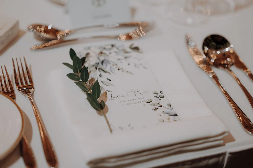 Ballymagarvey is known for its breath-taking décor in the dining room and so, we didn’t need to add much more. Our fabulous flowers were by Ali from The Tangled Bramble who, in addition to Ballymagarvey’s gorgeous décor, added some beautiful finishing touches to our tables and candelabras.