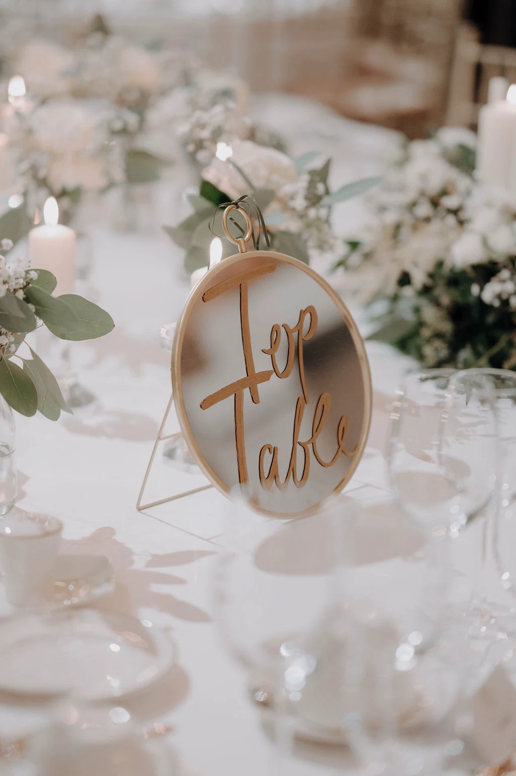 My wonderfully creative and talented bridesmaid, Ruth, handmade our beautiful table numbers which were a very special, personal touch. Ruth is a perfectionist and went above and beyond to ensure we had the perfect font and perfect style of table number – they were gorgeous.