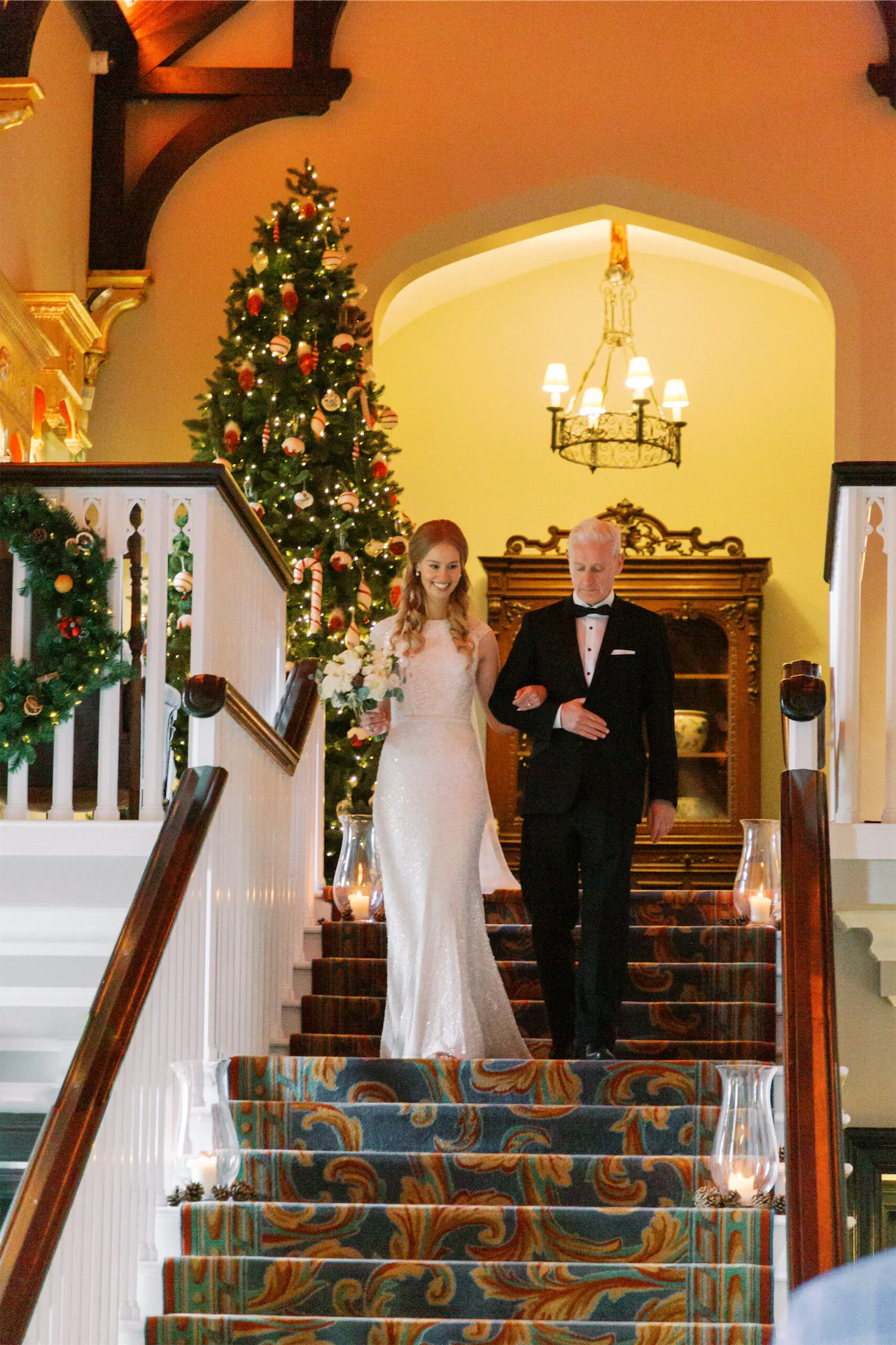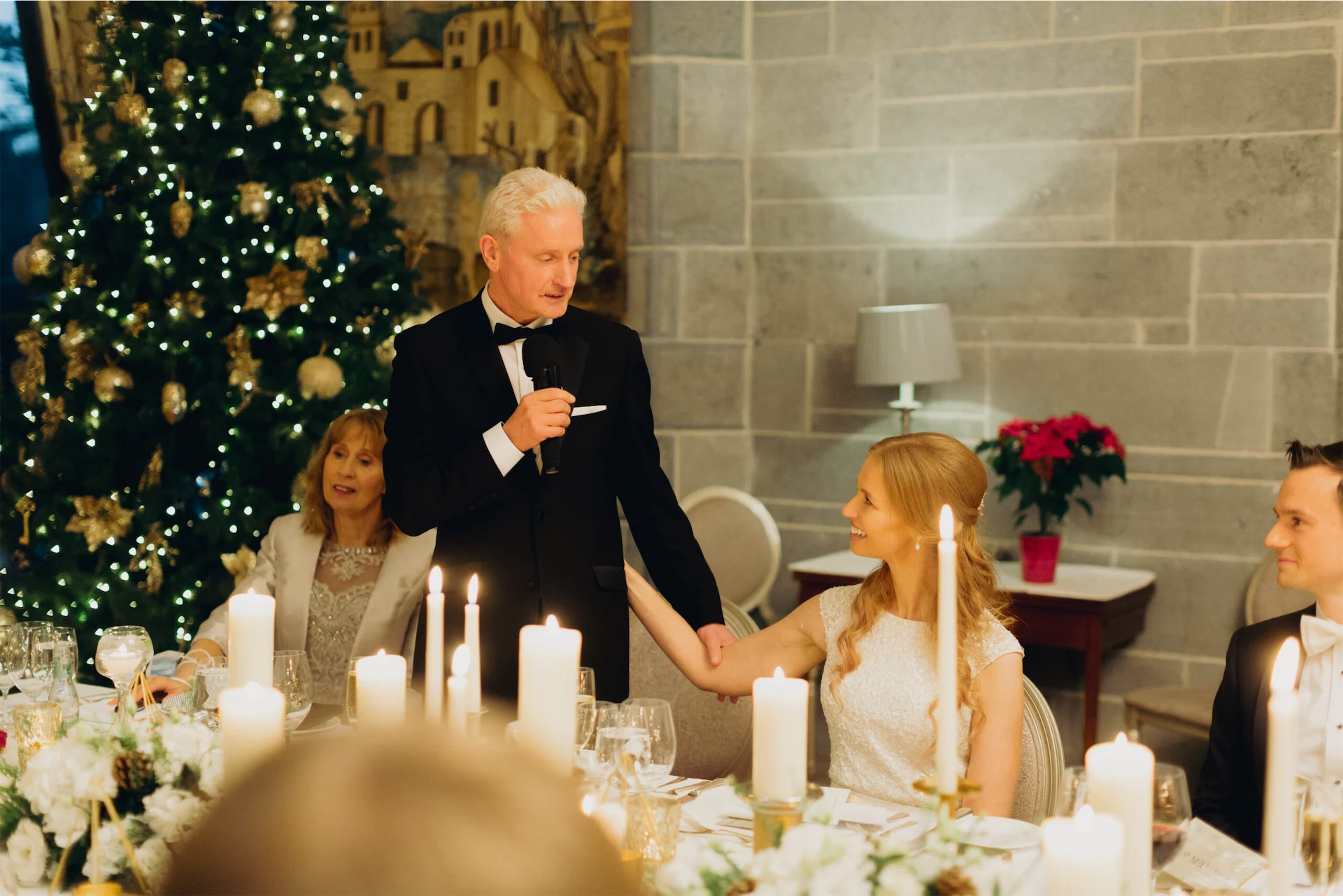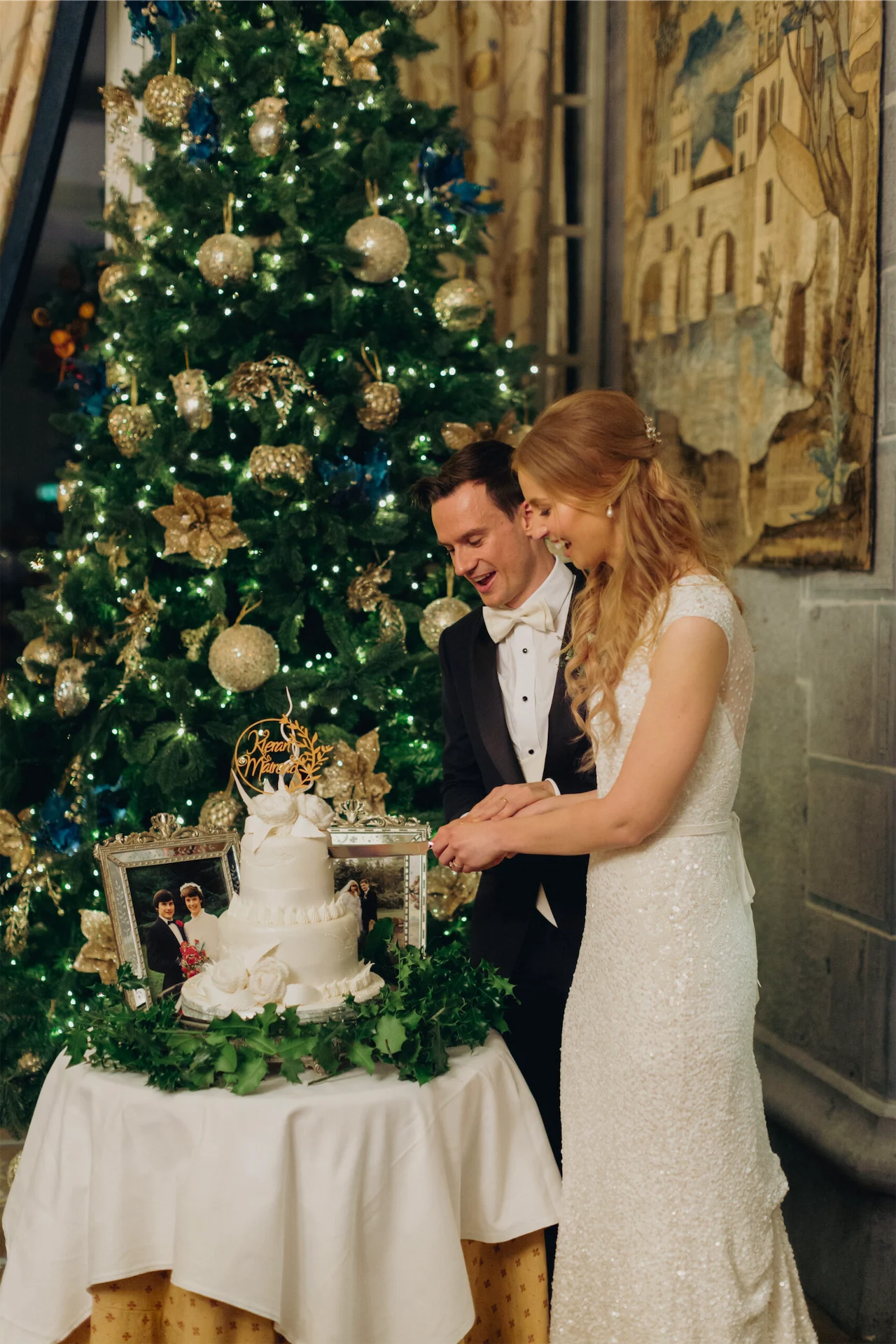 We were lucky that the castle was already beautifully decorated as we were getting married at Christmas time. Perfect details added some gorgeous finishing touches such as the flower arch and table décor. Dromoland Castle’s pastry team made the cake which was decorated with some crochet flowers fashioned by Mairead’s mother.