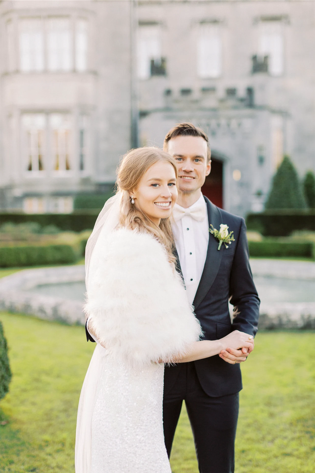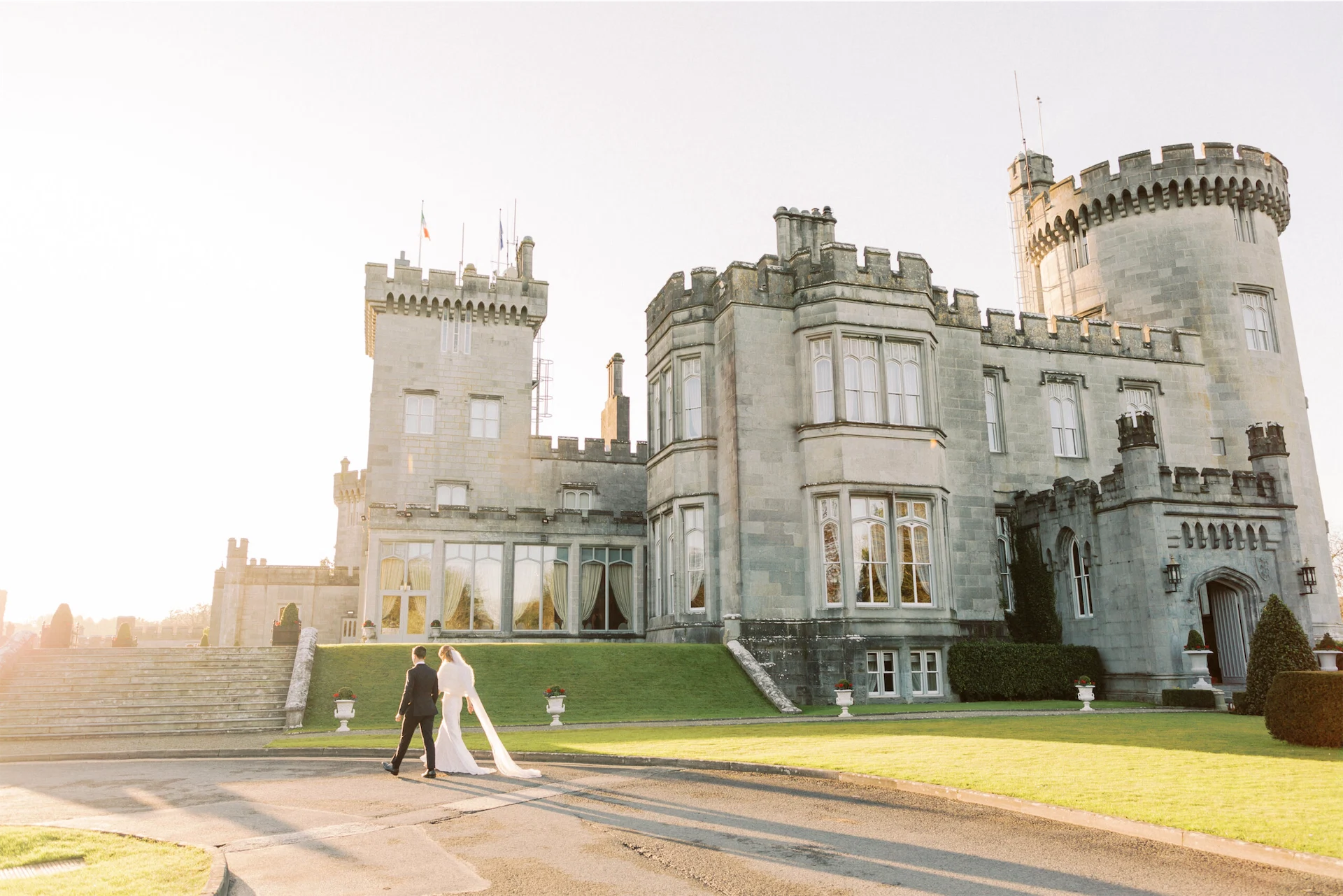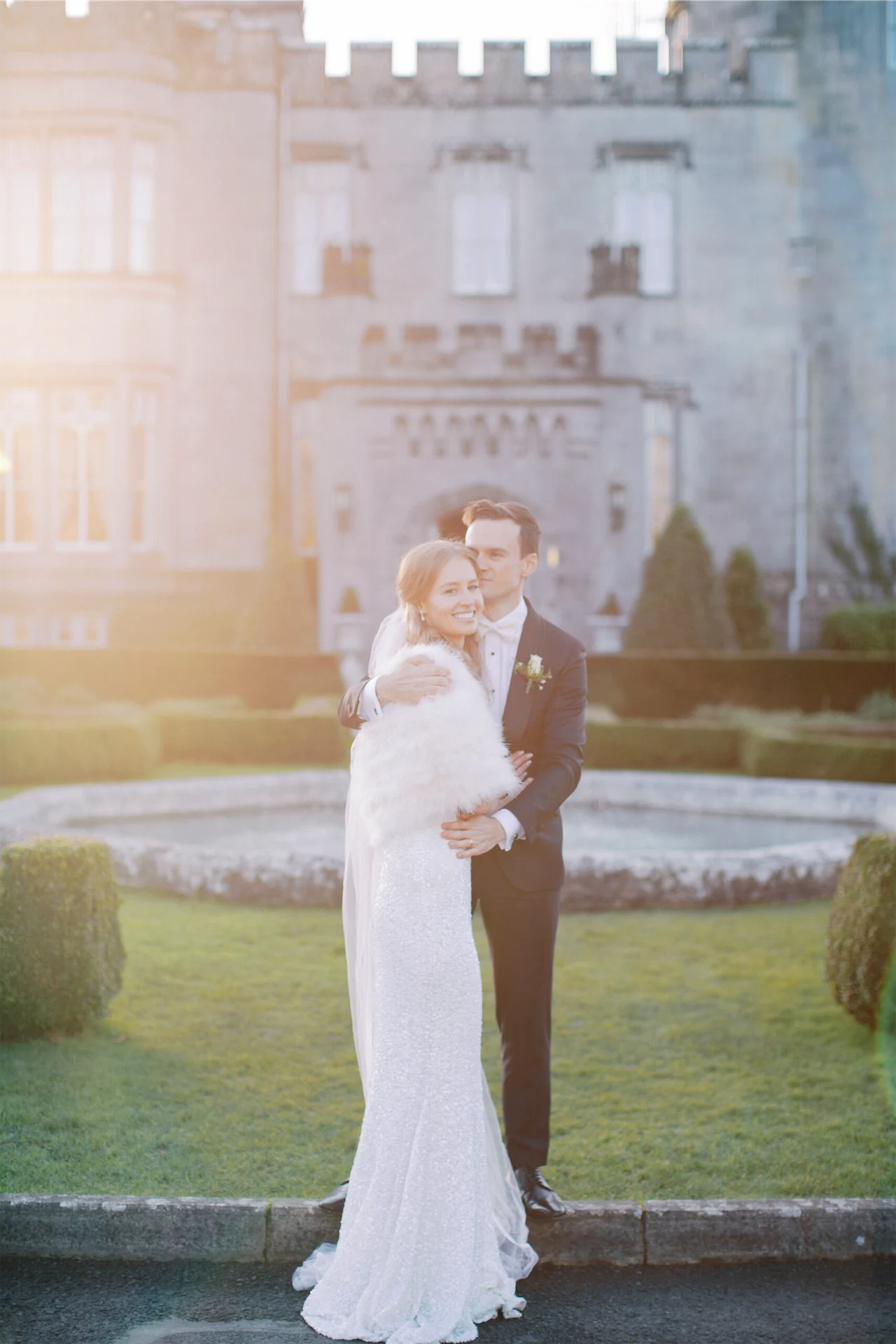Bride’s Dress: Karen Willis Holmes. Bride’s Shawl: Glitzi Bitz. Groom’s Suit: Brent Wilson. Hair & Make-Up: Catherine Hickey. Florist: Lawless Flowers. Music: Sean de Burca. Transport: Bentley Wedding Cars. Videography: Limelight Wedding Films.