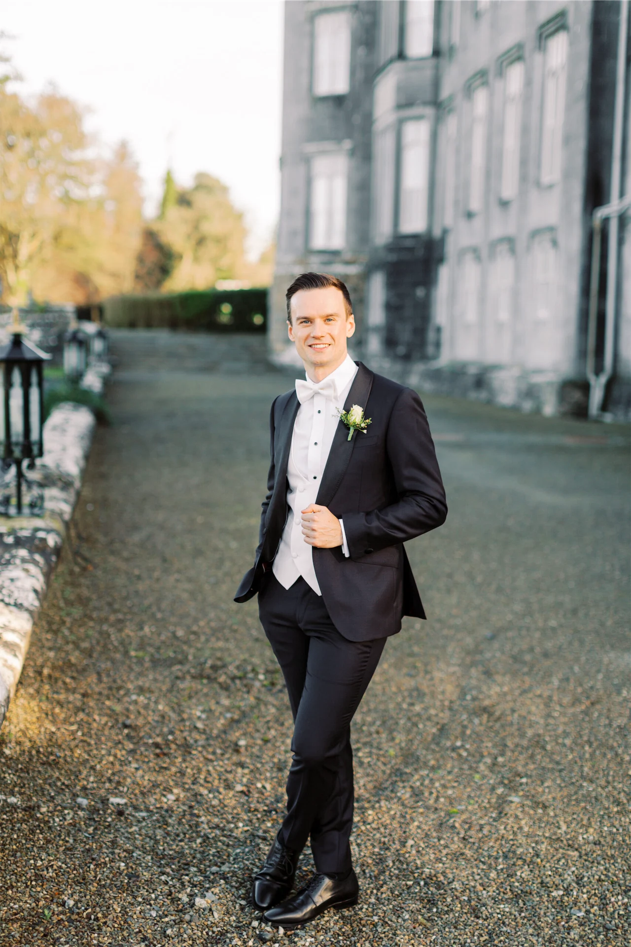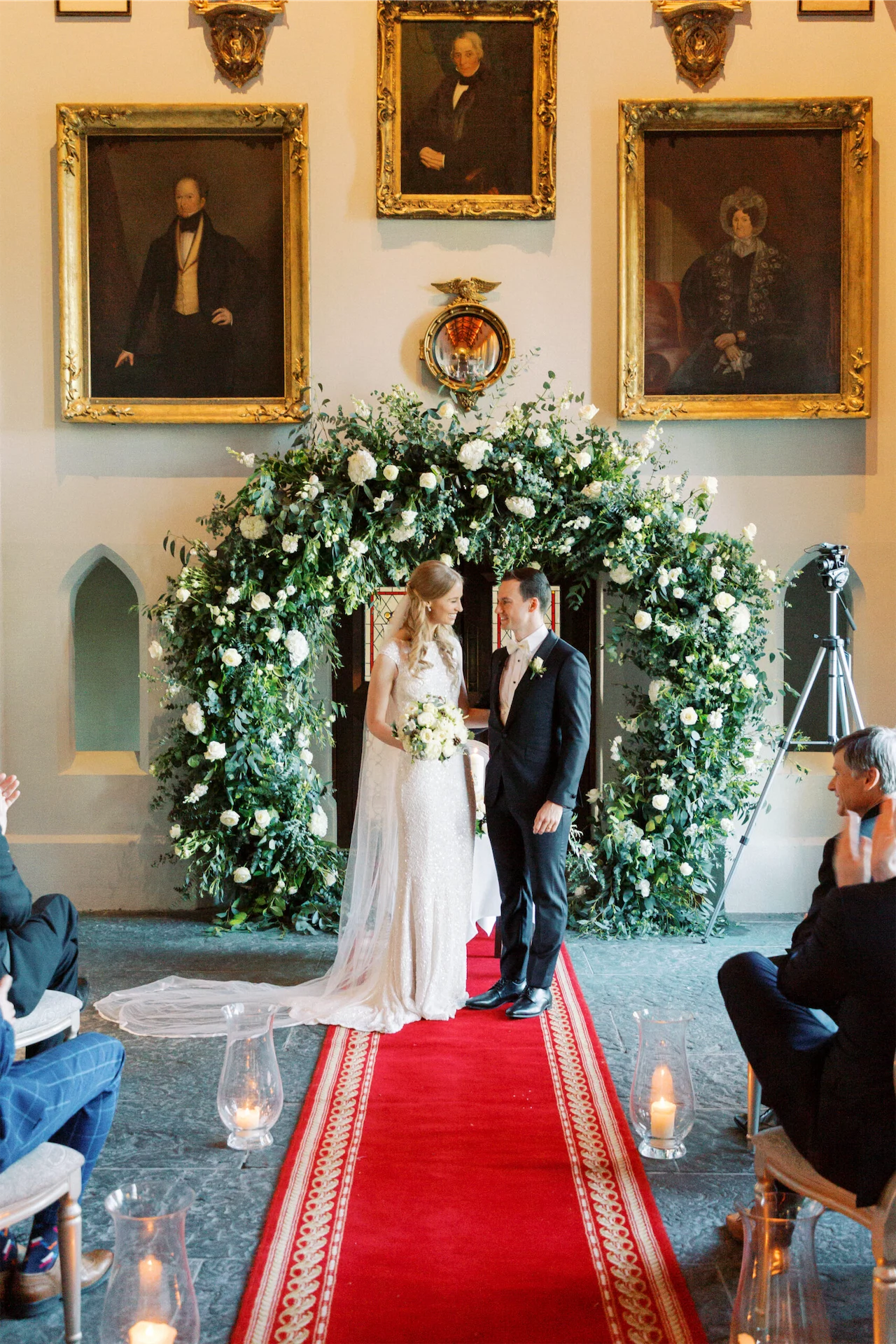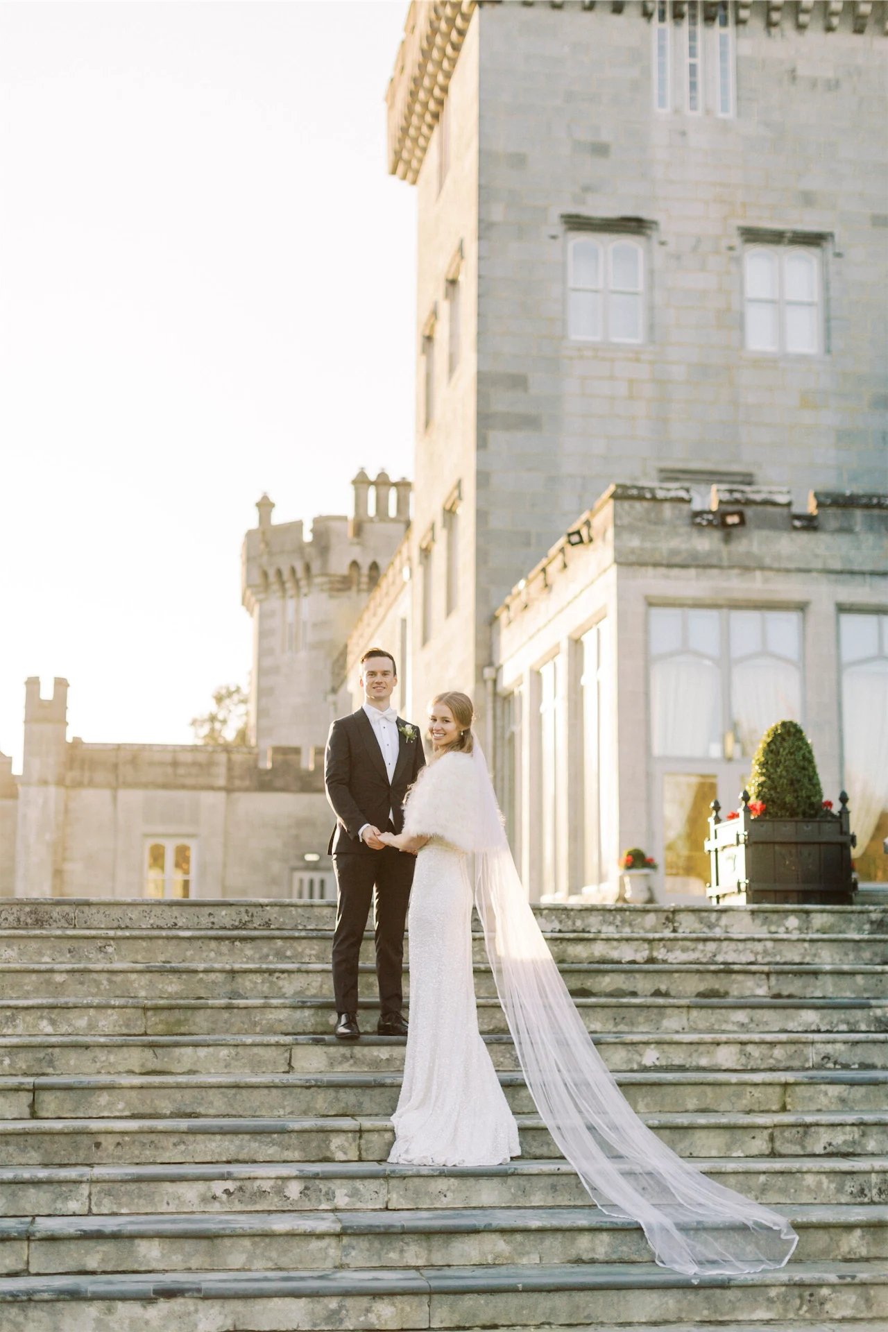 Bride’s Dress: Karen Willis Holmes. Bride’s Shawl: Glitzi Bitz. Groom’s Suit: Brent Wilson. Hair & Make-Up: Catherine Hickey. Florist: Lawless Flowers. Music: Sean de Burca. Transport: Bentley Wedding Cars. Videography: Limelight Wedding Films.