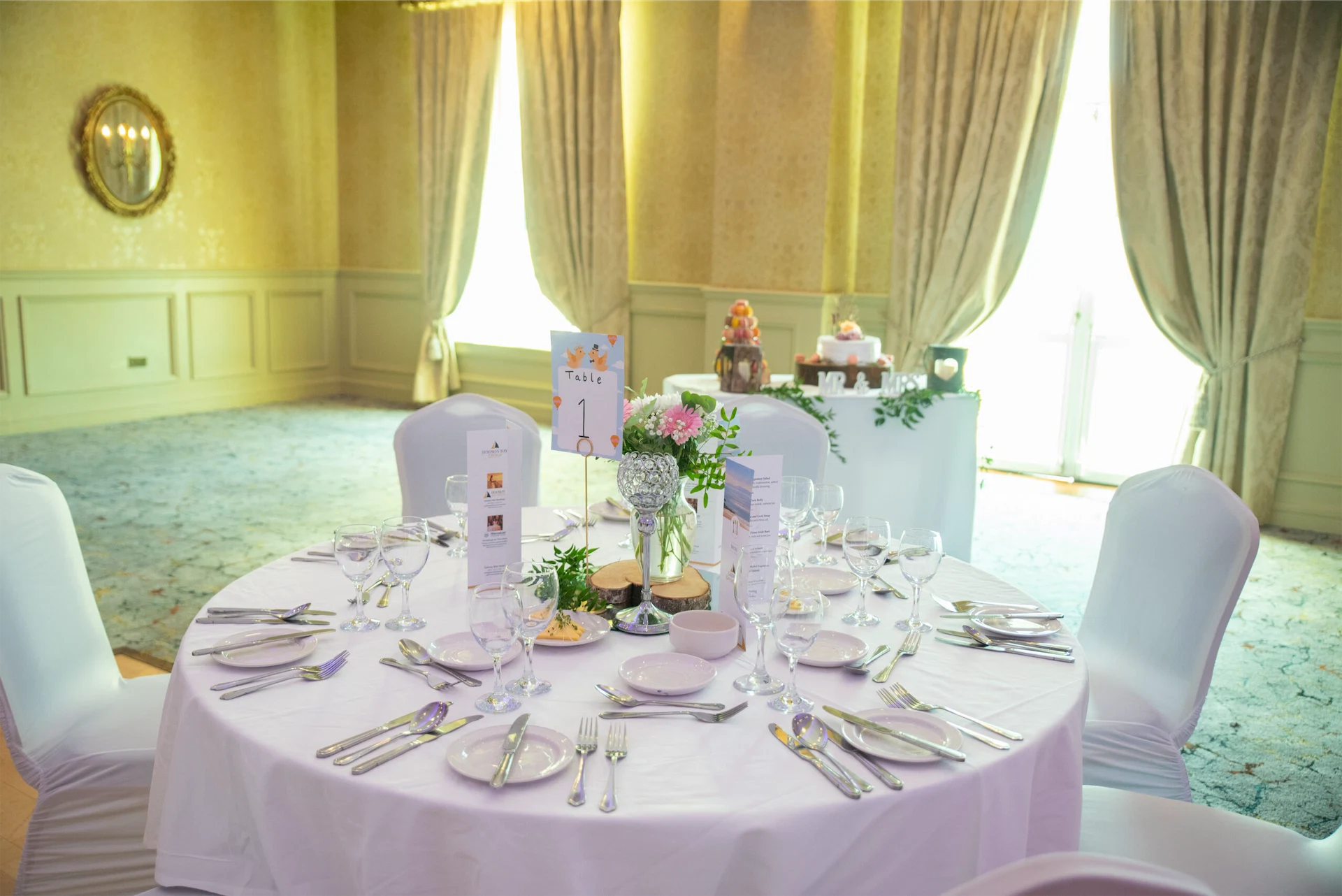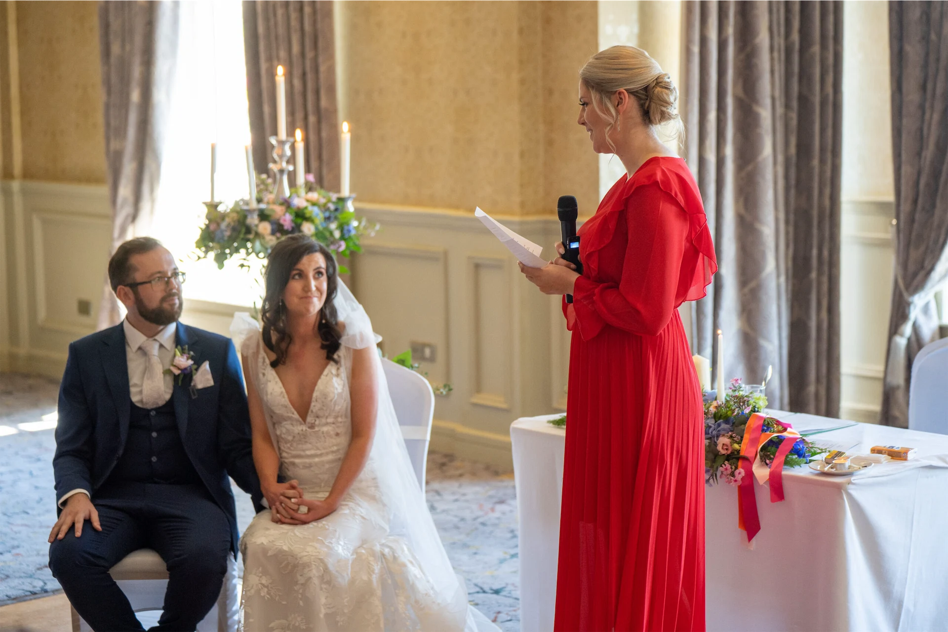 Keane’s Florist with Niamh provided us with stunning bouquets, candelabra flowers, chair flowers and more. ‘I Do’ Candle Lighting (provided directly by Galway Bay Hotel) had the ceremony and reception rooms kitted out beautifully.