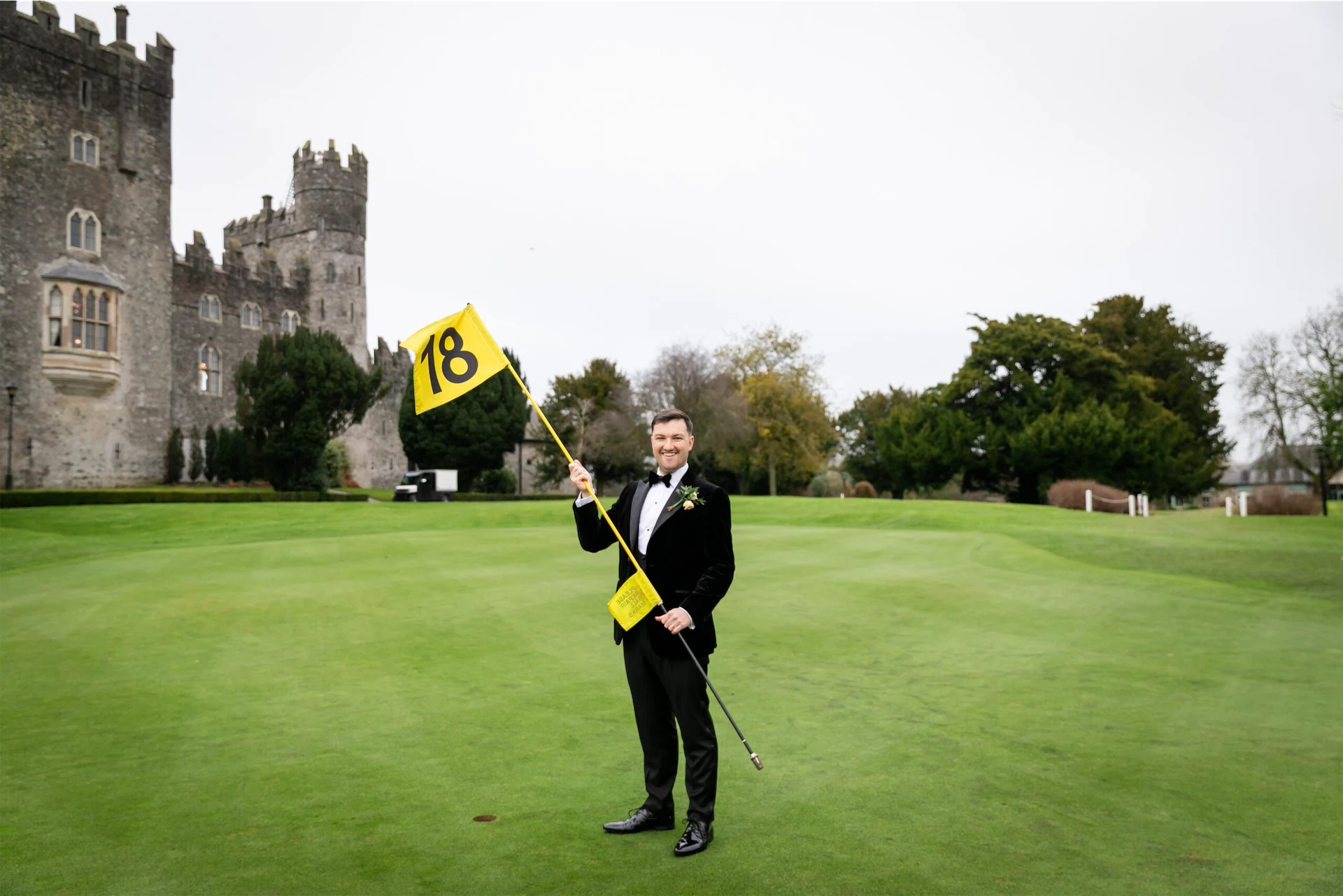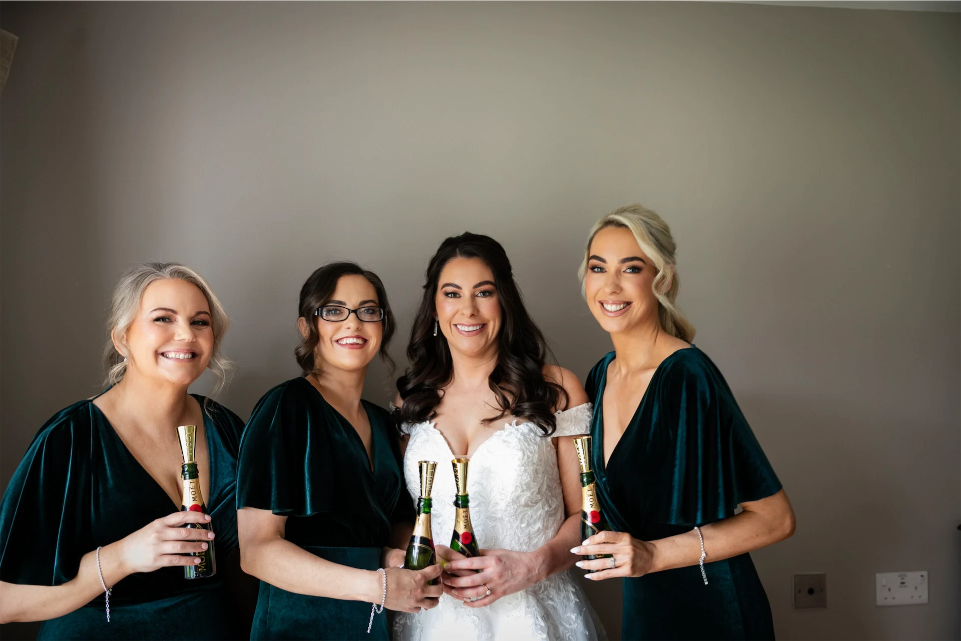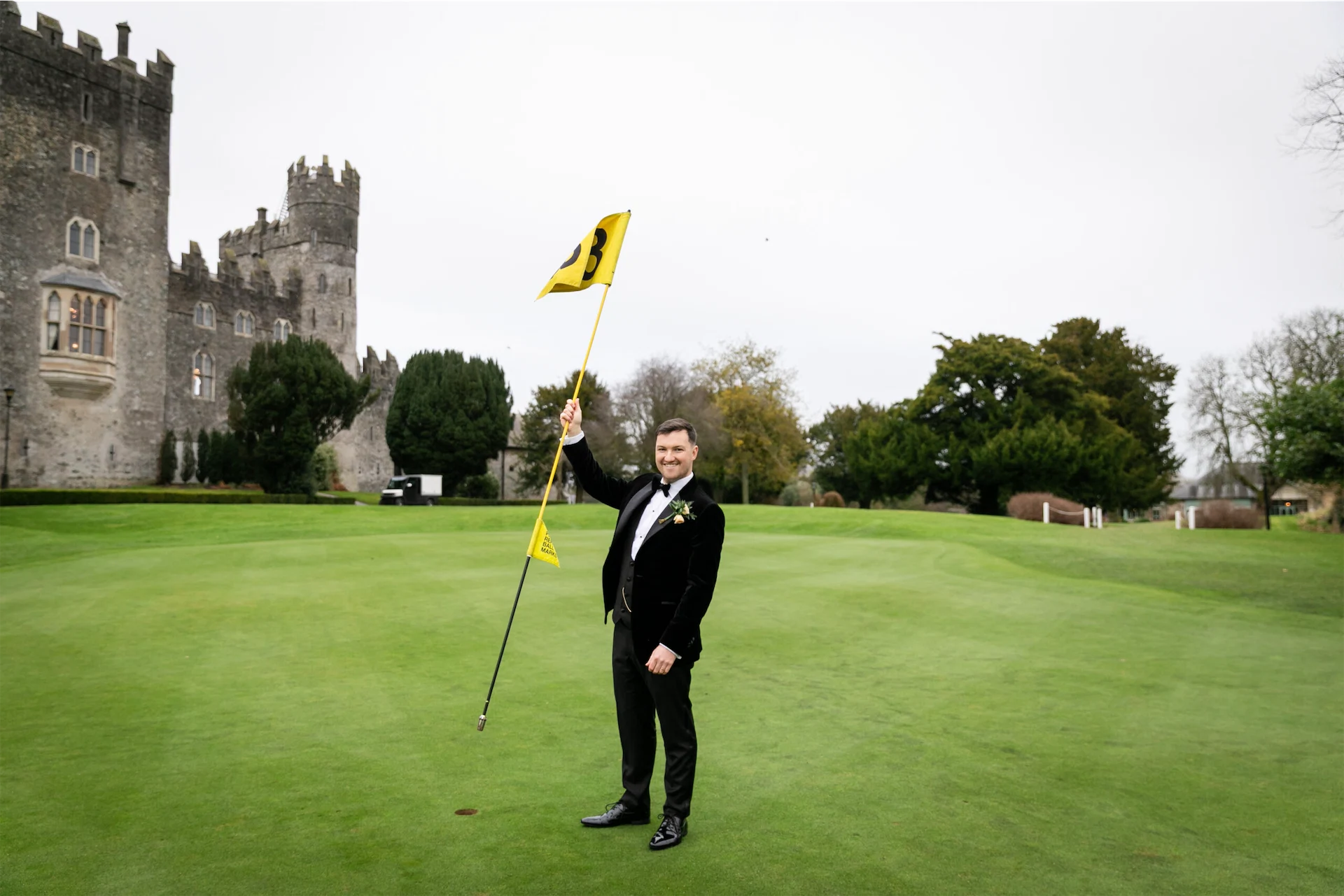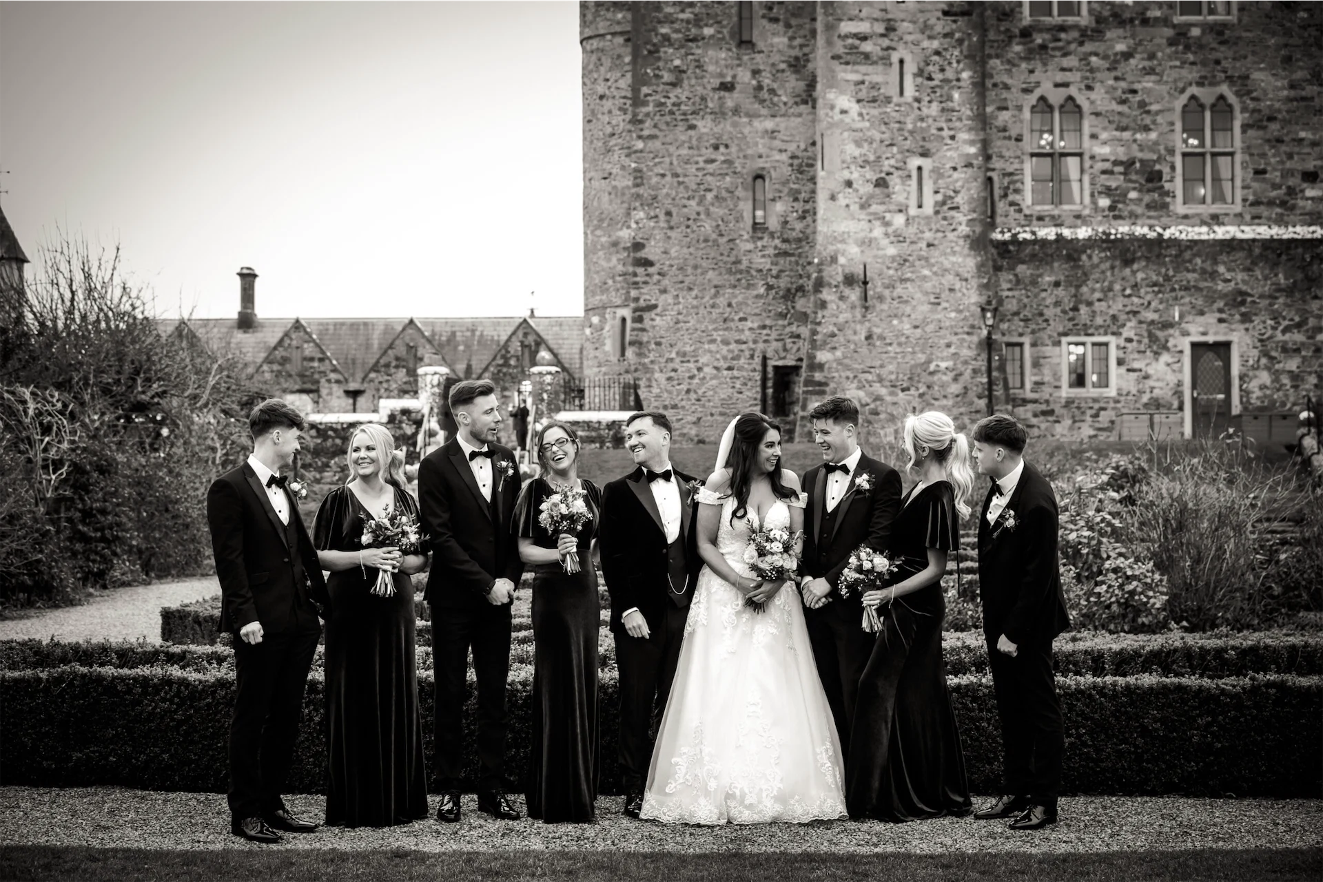 Wedding Dress: Essence of Australia from Jeutonic Bridal. Bride’s Earrings: Alan Dalton. Groom’s Tux: Louis Copeland. Bridesmaids’ Dresses: Sorella Vita. Groomsmen’s Tuxes: Mac’s Menswear. Flowers: Slieveardagh Blooms and Oasis Flowers. Make-up: Coco Rouge Make-up. Hair: Joanne Kelly O’Hara. Cake: Catherine McKeown. Transport: VW Weddings. Videographer: I Carry Your Heart Wedding. Content Creation: FOMO Media.