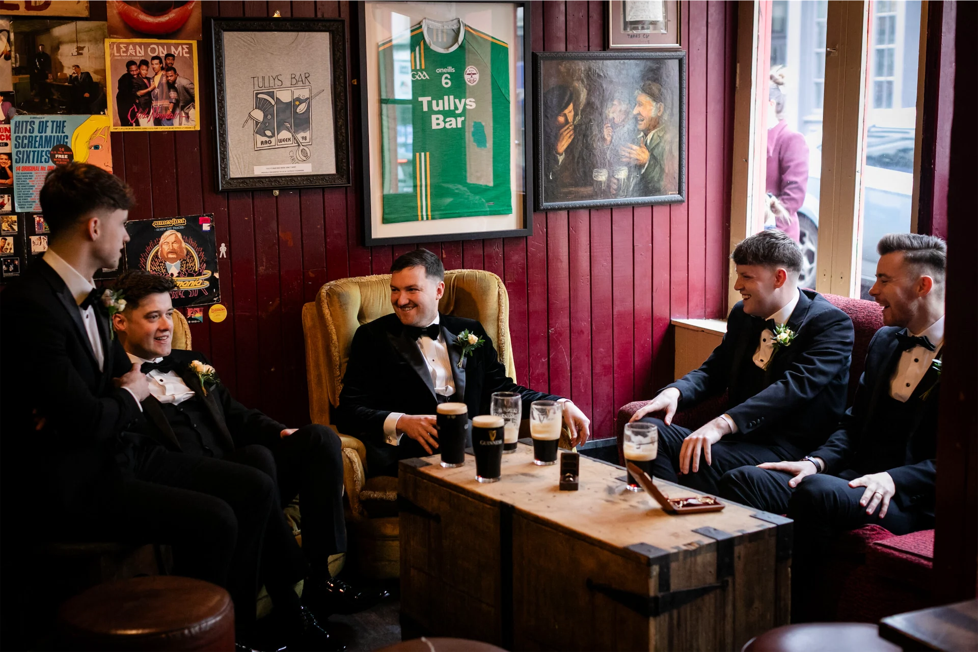 My son Noah walked me up the aisle to Love is A Compass. We lit a candle, and I wore a Las Mo Shlí compass bracelet to remember my father and family who have passed. The compass was also an important nod to the coast and sea, and funnily enough, a compass always points to N – Neil & Noah! Before the ceremony, Neil and his groomsmen went to Tully’s Bar (family owned) in Carlow Town and sat in the mustard yellow armchairs that once belonged to their departed grandparents and took a few moments to gather themselves for the day ahead!