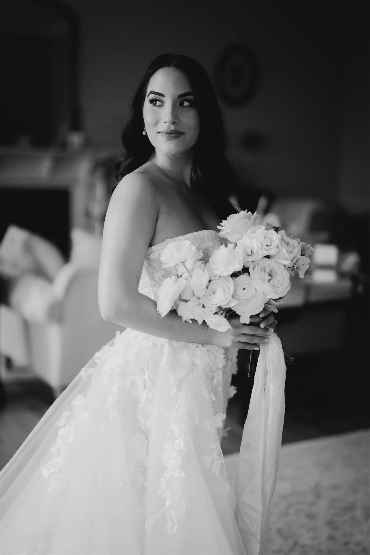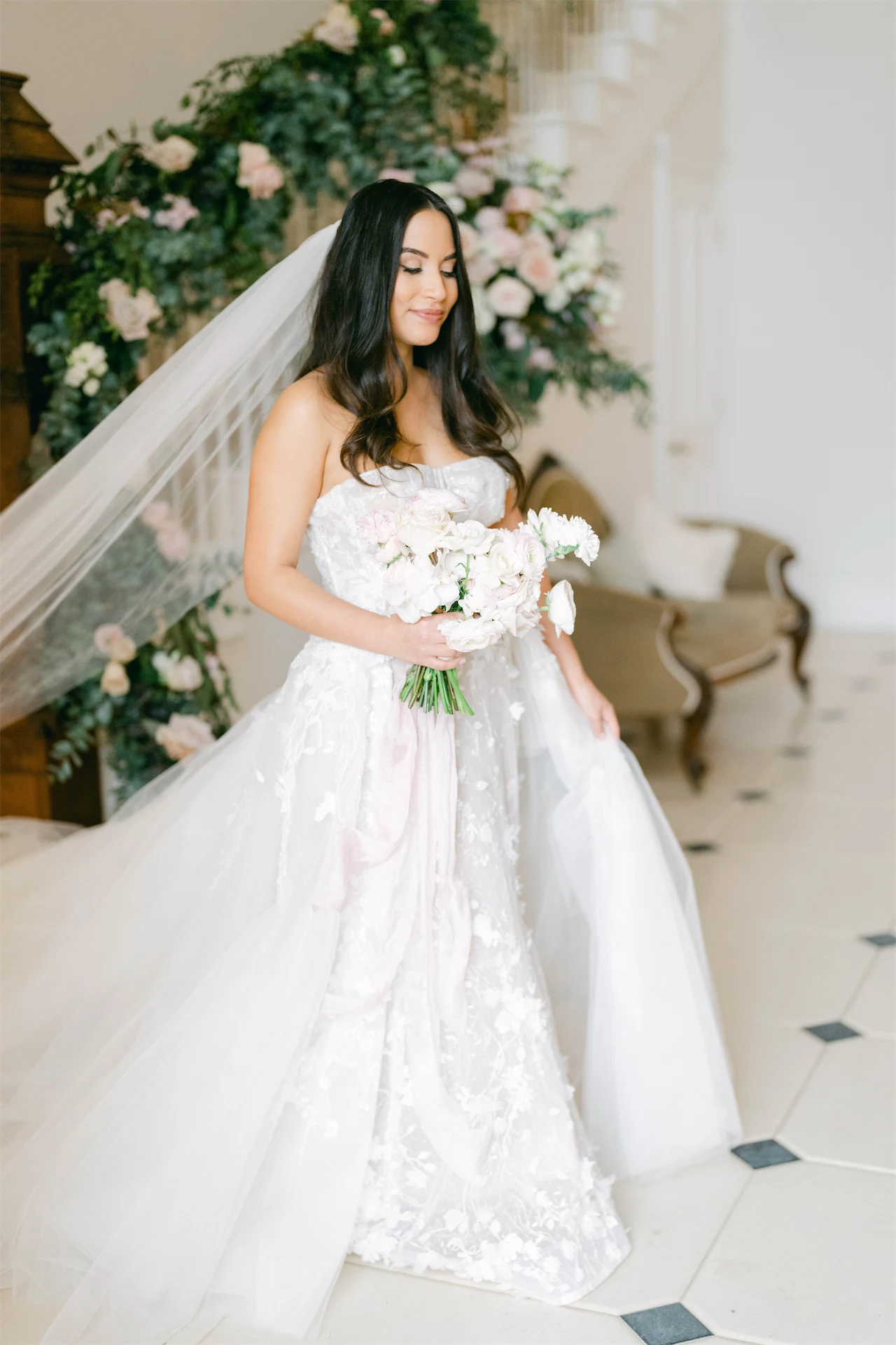 The minute I tried on the dress; I knew it had all the key details that I was looking for. The dress had a beautiful tulle overskirt embroidered with gorgeous appliqués, that could be removed after the ceremony, providing two outfits in one for the wedding day, which I loved! The level of detail and embellishment across the dress was simply stunning.
