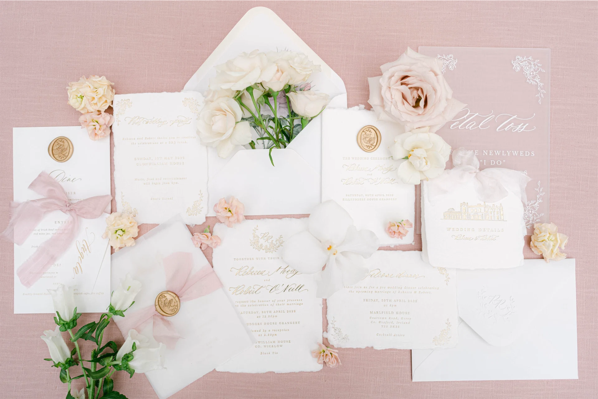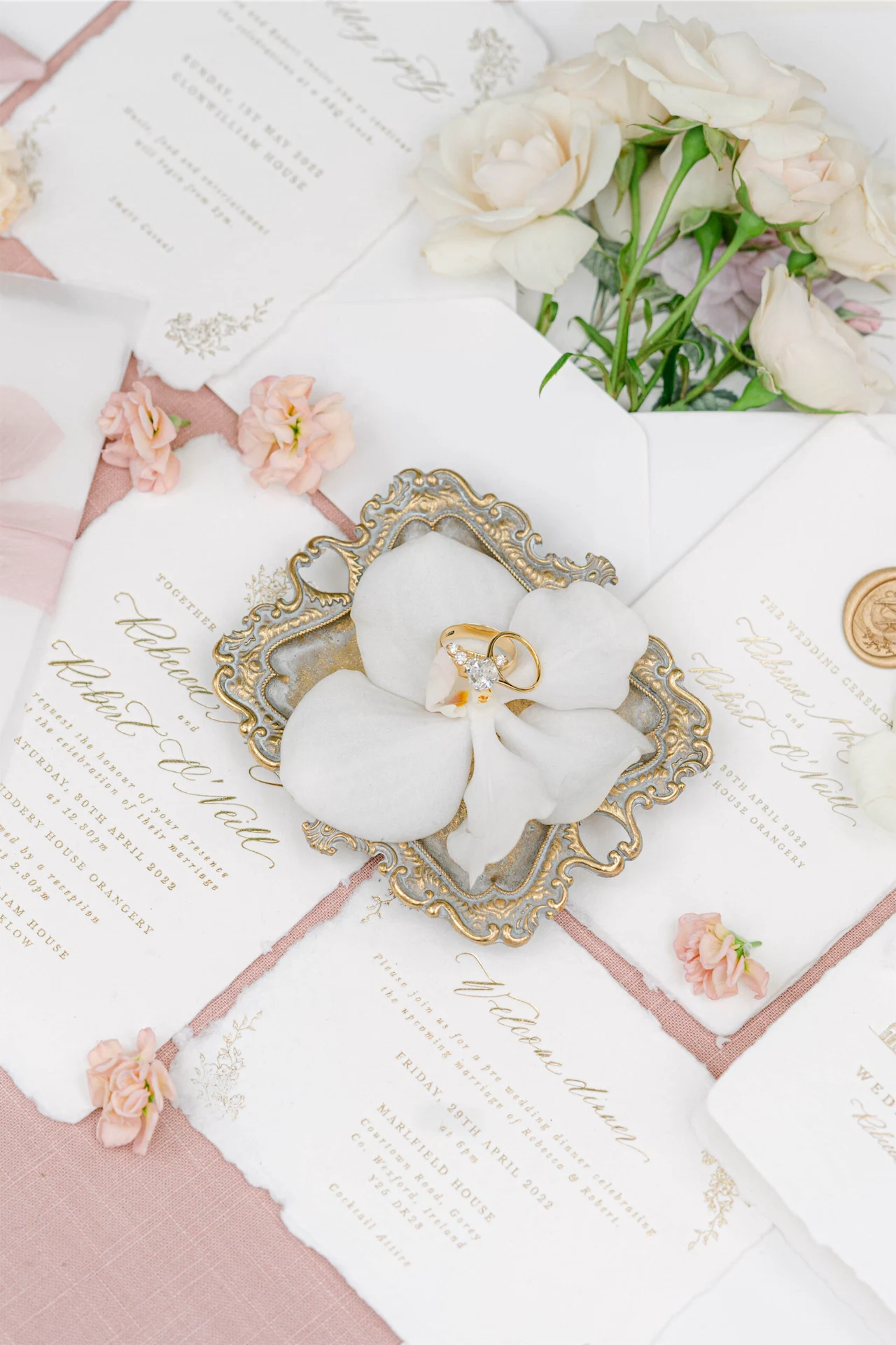 As I work in fashion and product development, I had a very clear vision for our wedding celebrations from the outset. Our theme was romantic and relaxed elegance with luxurious details. My colour scheme focused on ivory, creams, and shades of pink and gold. I wanted each element to marry back to the overarching vibe and aesthetic of the weekend.