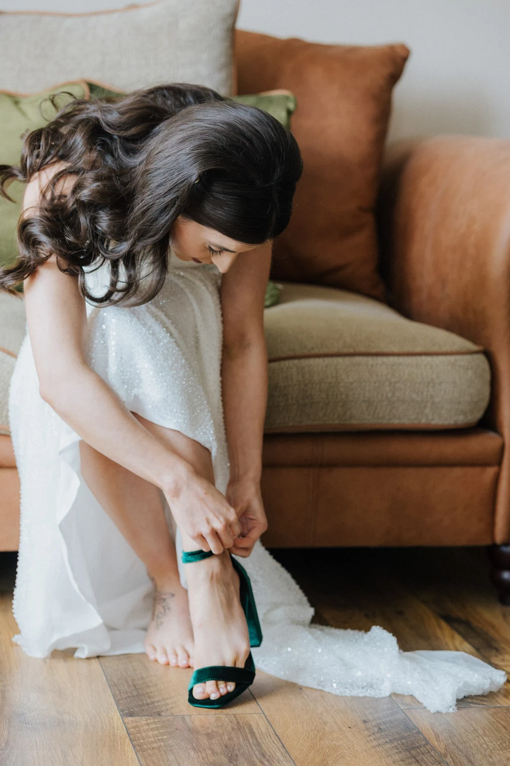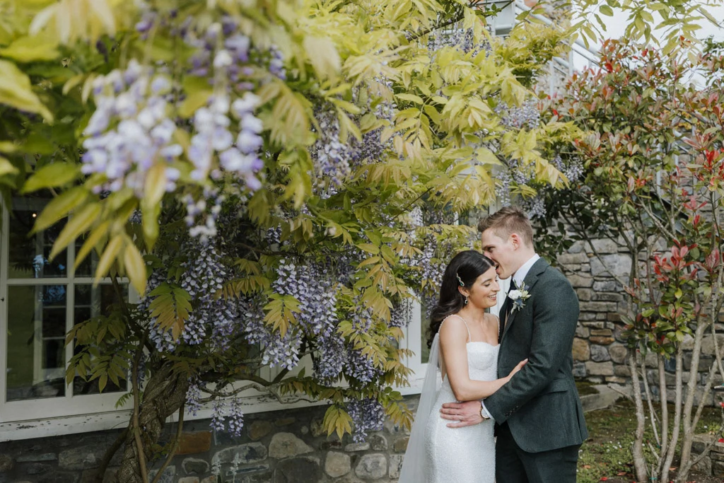 We wanted to stay true to ourselves and our taste. We didn’t want to lean too far into trends and themes and instead, chose colour schemes that we love outside of a wedding – we settled on forest green and sage with accents of gold, white and purple (to pull from the venue). We were also conscious of how much waste weddings can create so were intentional about using minimal flowers ourselves and leaning into the beautiful surroundings of Ballymagarvey’s gardens instead.
