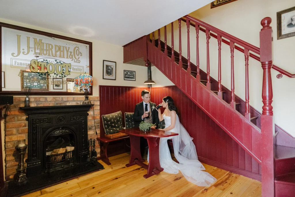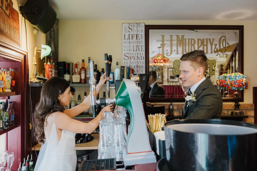 The first look was so intimate and personal to us both – it felt really special. John’s favourite drink is Guinness and I was a barmaid in days gone by, so we enjoyed a pint together in the snug bar afterwards. Standing in front of our loved ones exchanging vows was definitely a highlight too, along with the fireworks display after dinner.