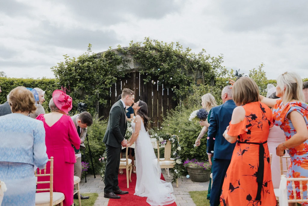 The ceremony was at Ballymagarvey Village in their outdoor ceremony garden. We were the first outdoor wedding of the year there which felt special. My cousin Tia Scully was the wedding celebrant, who kept the content personal while still being light-hearted and keeping everyone giggling along.
