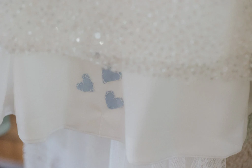 - My grandfather had passed away the previous December, so I used his shirt to sew five blue hearts into the train of my dress to represent his five beloved grandchildren.