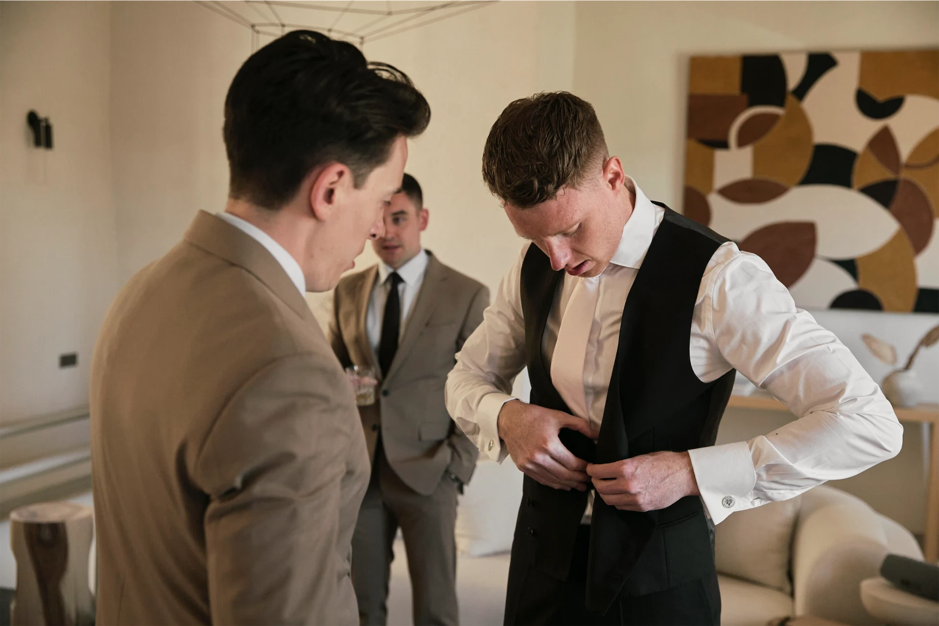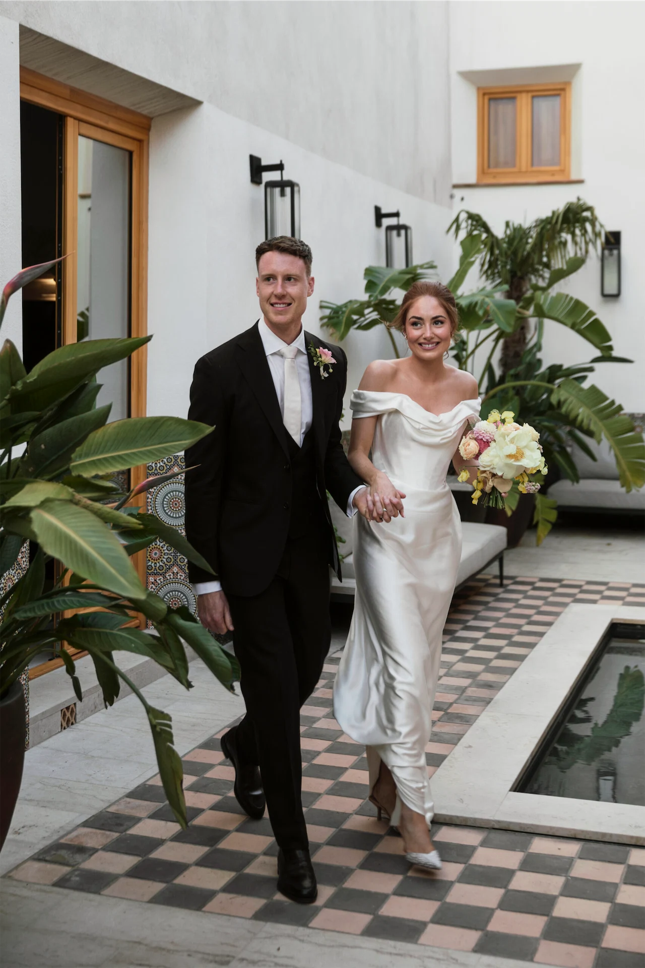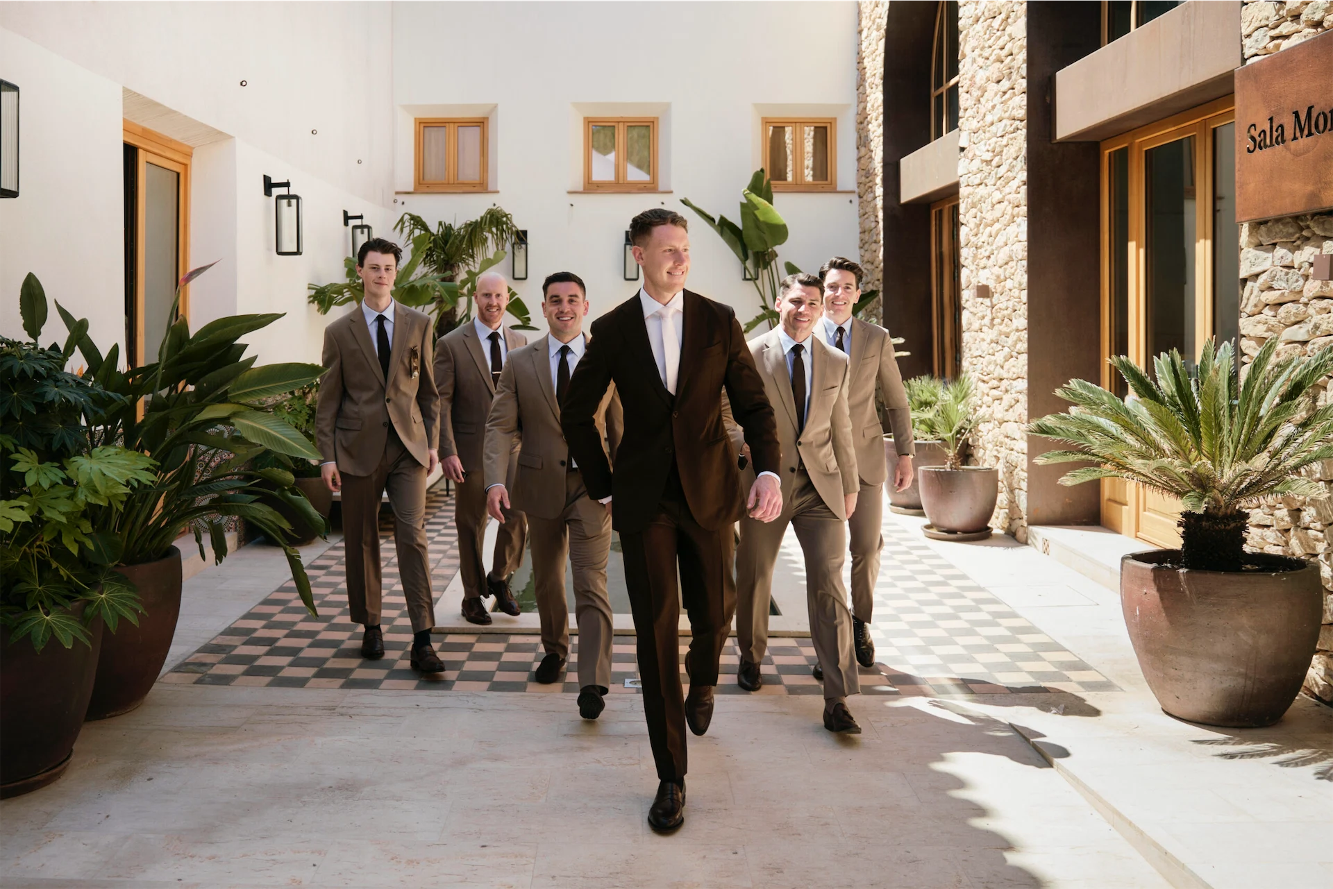 I started the day with a face mask and a quiet cup of tea in the garden of Masia Cabellut with my mom and sister. Hair and make-up then started with the very talented Roy Leigh and Imanol Fuentes. The two fathers were put to work preparing breakfast for the group. The bridal suite was my perfect vibe, the ladies laughed, danced, cried, had the chats and were actually very relaxed. Meanwhile, Luke and his groomsmen started their day poolside, taking full advantage of the 4pm ceremony time.