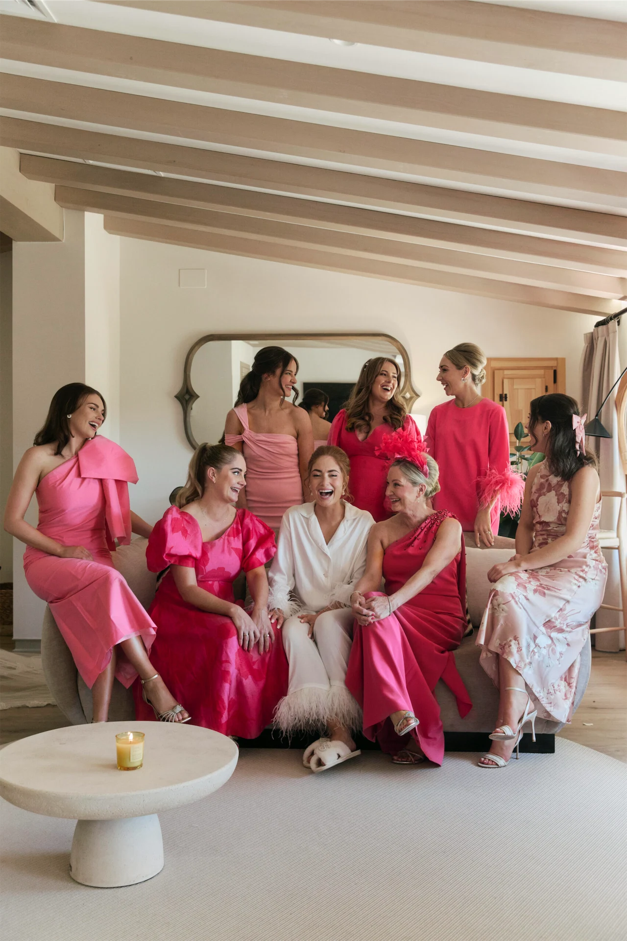 I worked closely with her wedding planner, Betsaida to nail down the “vision” of the weekend. I wanted it to be glamorous, chic and fun! Early in the planning phases, I made the decision to have my bridesmaids pick their own dresses. The “brief” was pink but they could choose any style, length and texture. I loved how the variations in dresses turned out and it is slightly more sustainable as hopefully the dresses will be worn again. Because the dresses were different I wanted their flowers to be simple and uniform, so I chose yellow sweet peas for them all.