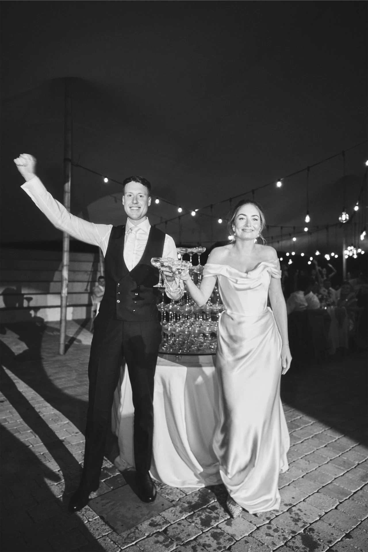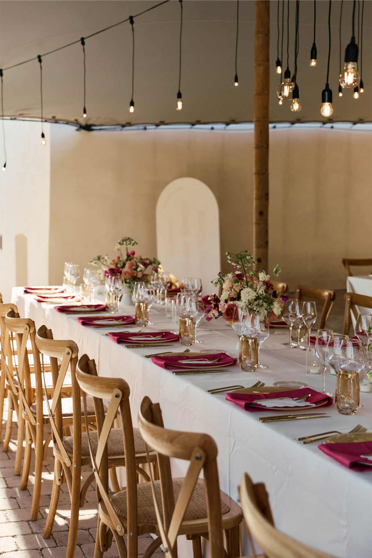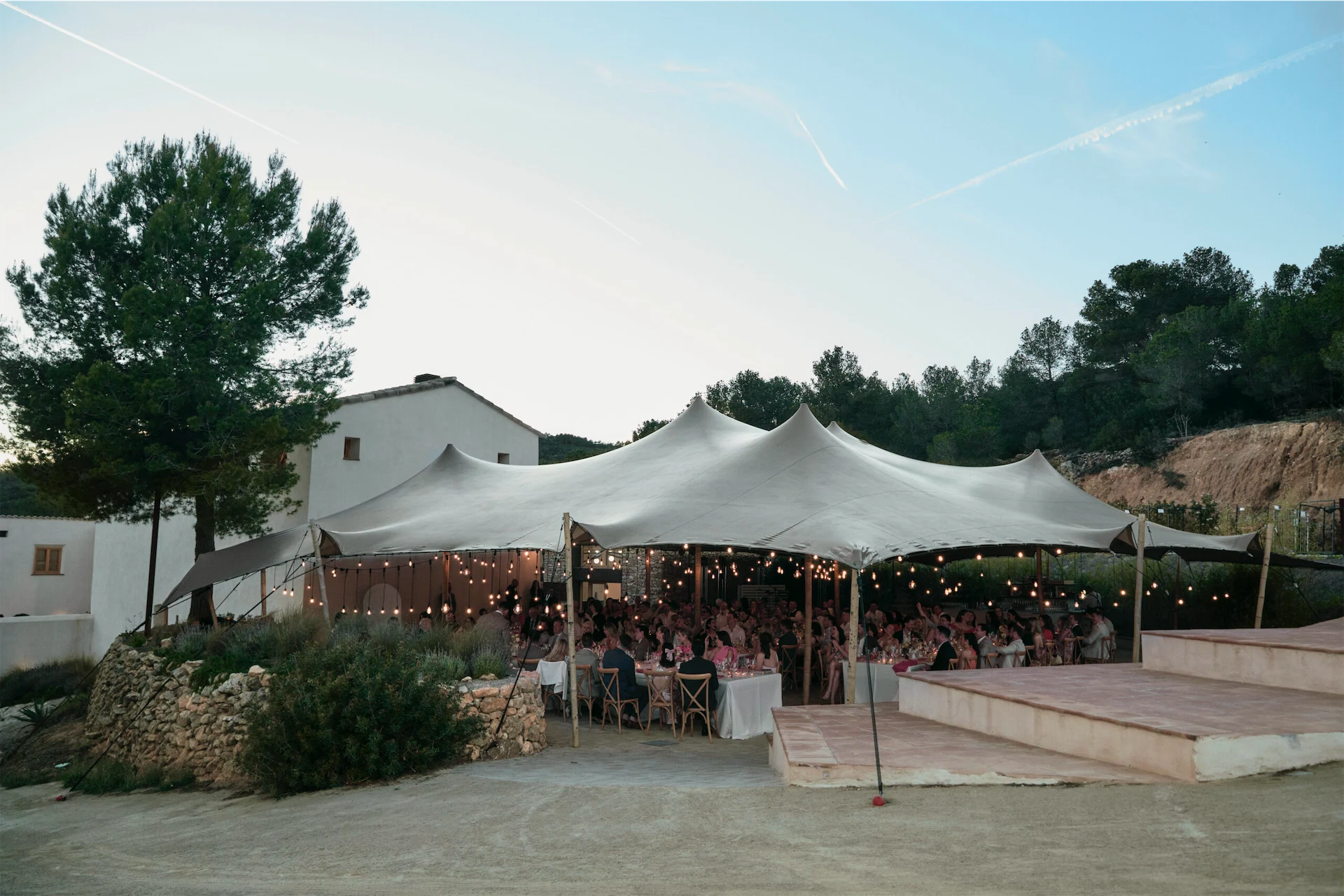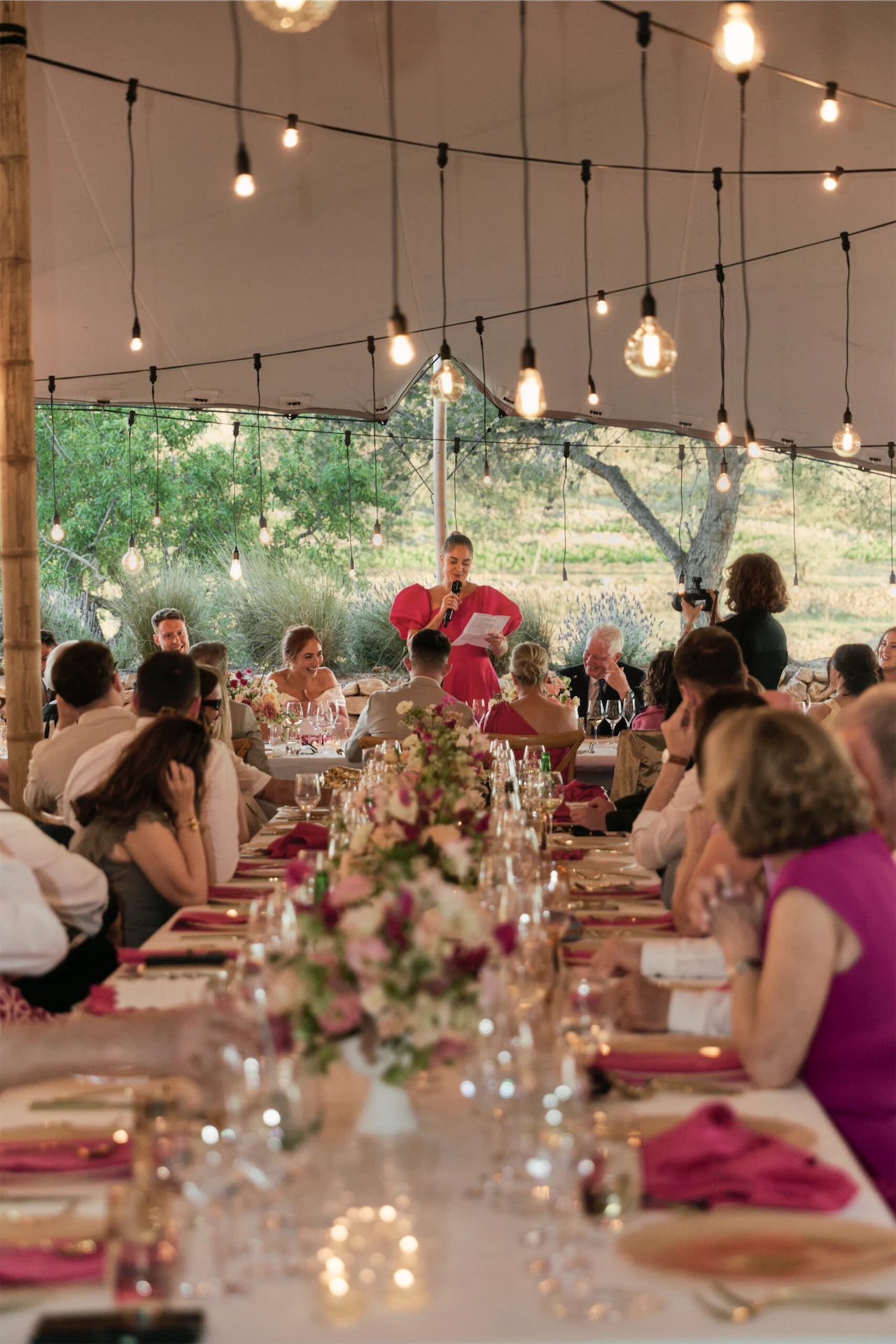 We built a stellar playlist (Wedding Weekend Vibezz on Spotify) that we shared with the band and DJ. The band Truly Medley Deeply were excellent and we had seen them at a friend’s wedding the year before and knew they were the best choice. For the aperitivo and during dinner we had Josep DJ. His team also coordinated the sound and lighting requirements, including beautiful hanging bulbs in the main tent.