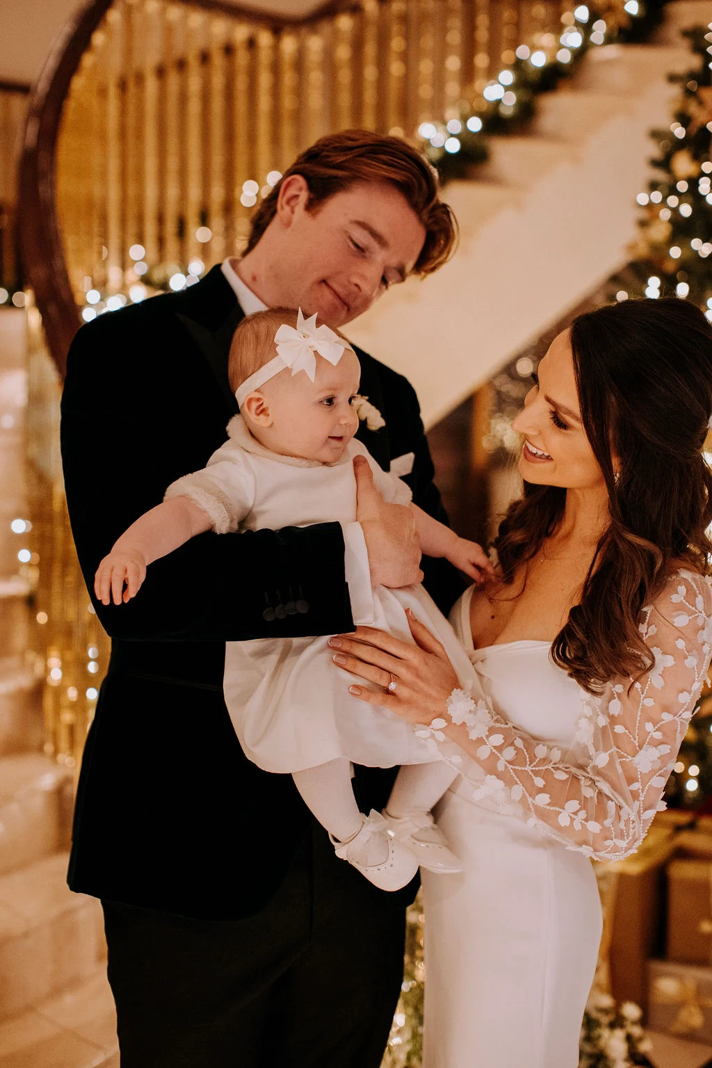 Sarah and Karl, who first met while working as doctors in a Dublin hospital, celebrated their love with a stunning festive wedding in Co Wicklow. Joined by their baby daughter, the couple described the day as 'magical' from 'start to finish.'