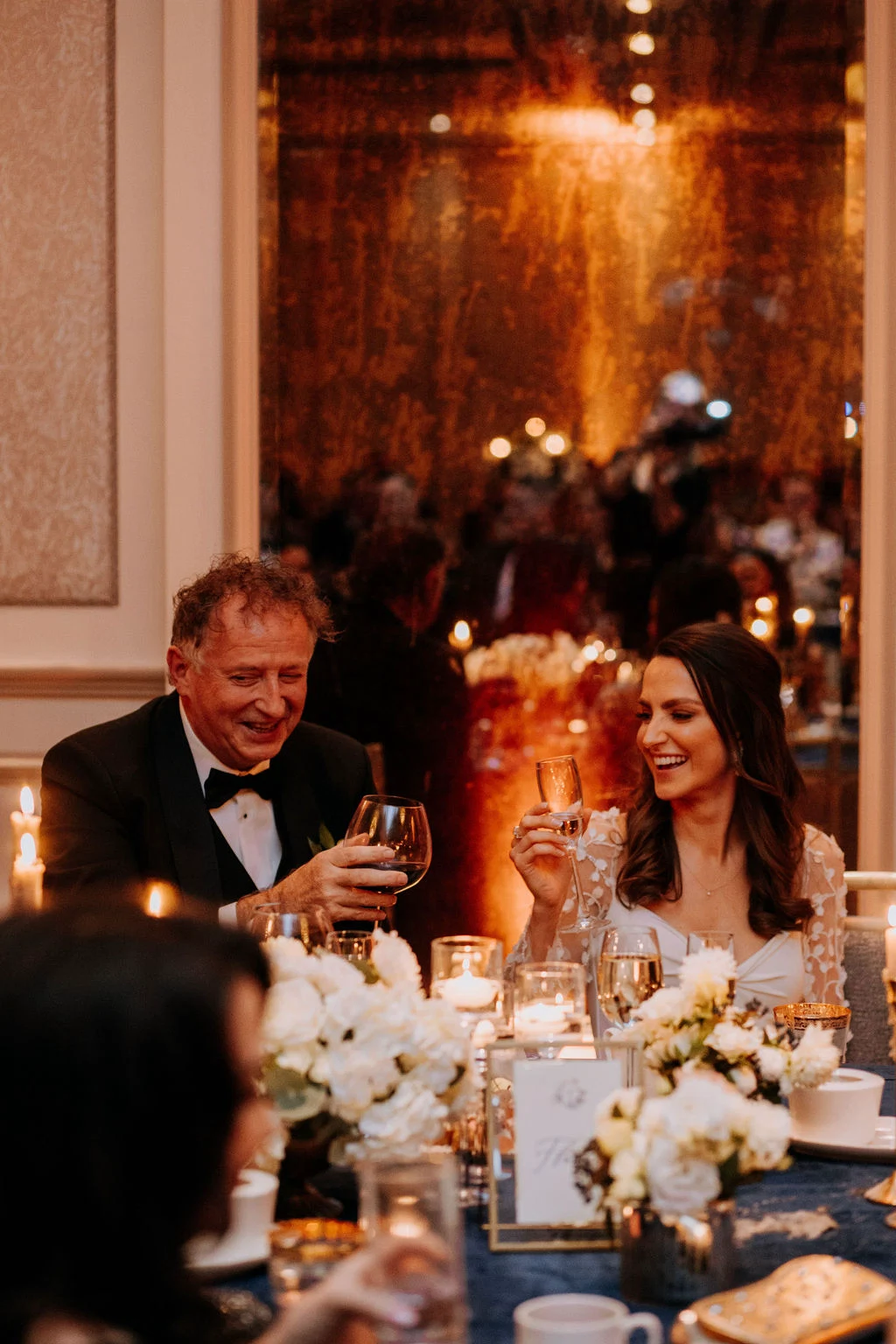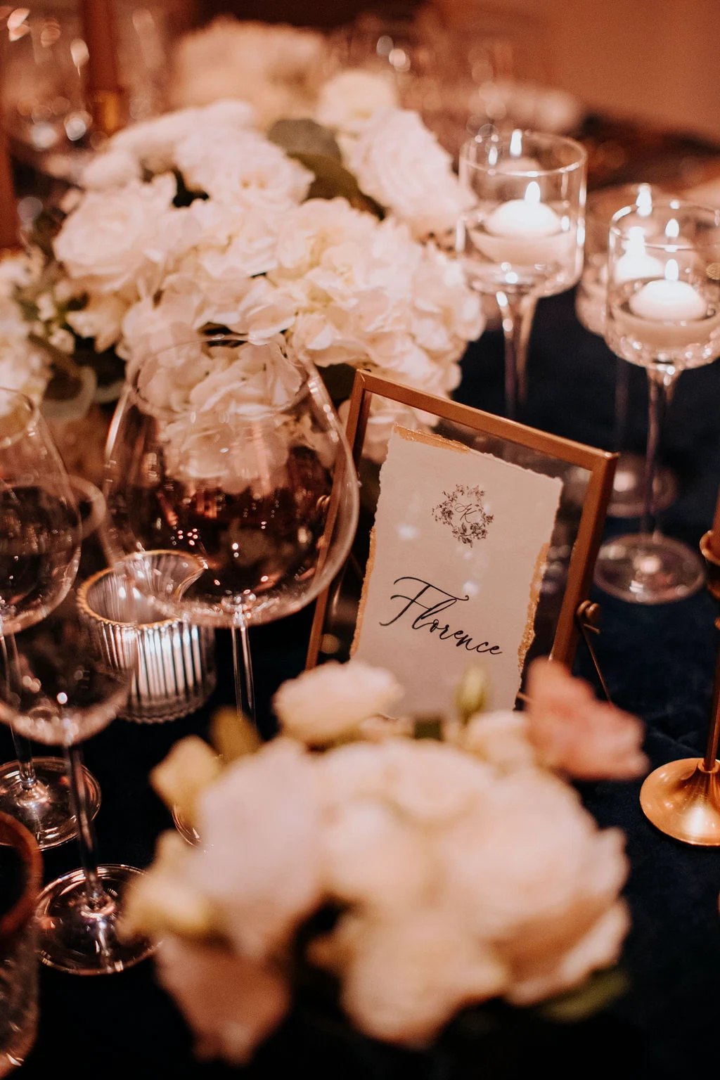 Aoife Hodgins, wedding planner with Blue Blossom Creative, helped bring our vision to life for the day. We got married in December so we wanted it to feel like a magical winter wonderland, and she really made this happen. She understood the vision from the beginning and her creativity helped add those extra special touches. Alongside the amazing staff from Powerscourt Hotel, no detail went unnoticed. The décor was either supplied by the hotel or sourced by Aoife and hired for the day.