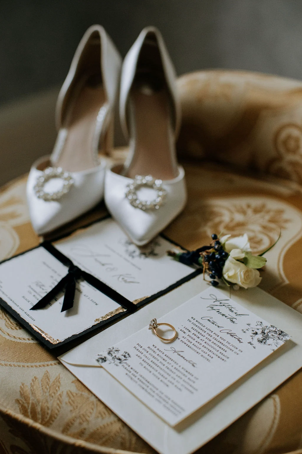 Fernwood Floral Studio did our flowers. They were incredible and even more beautiful than I could have imagined. I knew I wanted to keep the flowers neutral and Brigid created gorgeous arrangements using seasonal flowers and greenery in classic tones of white and green with gold accents.