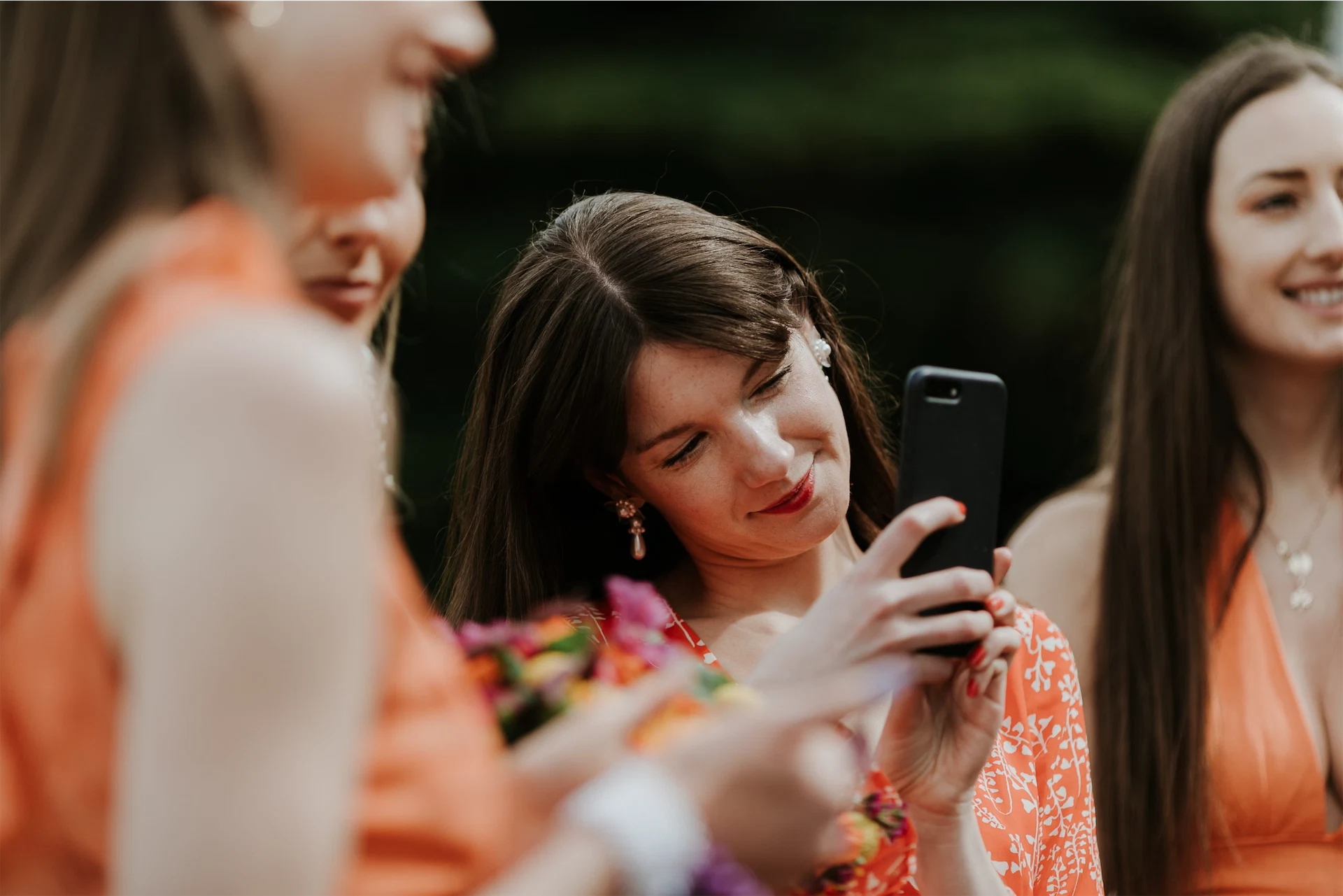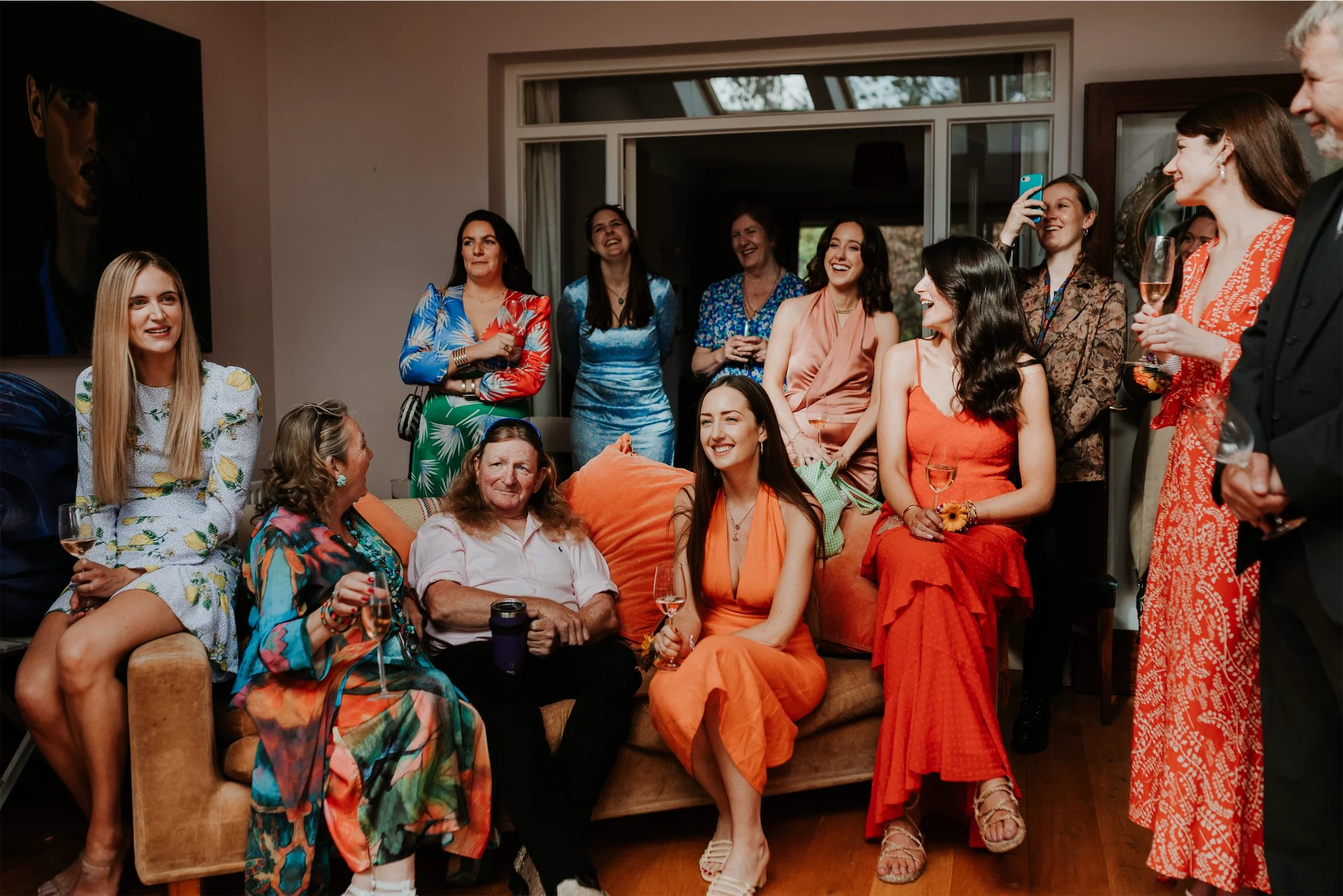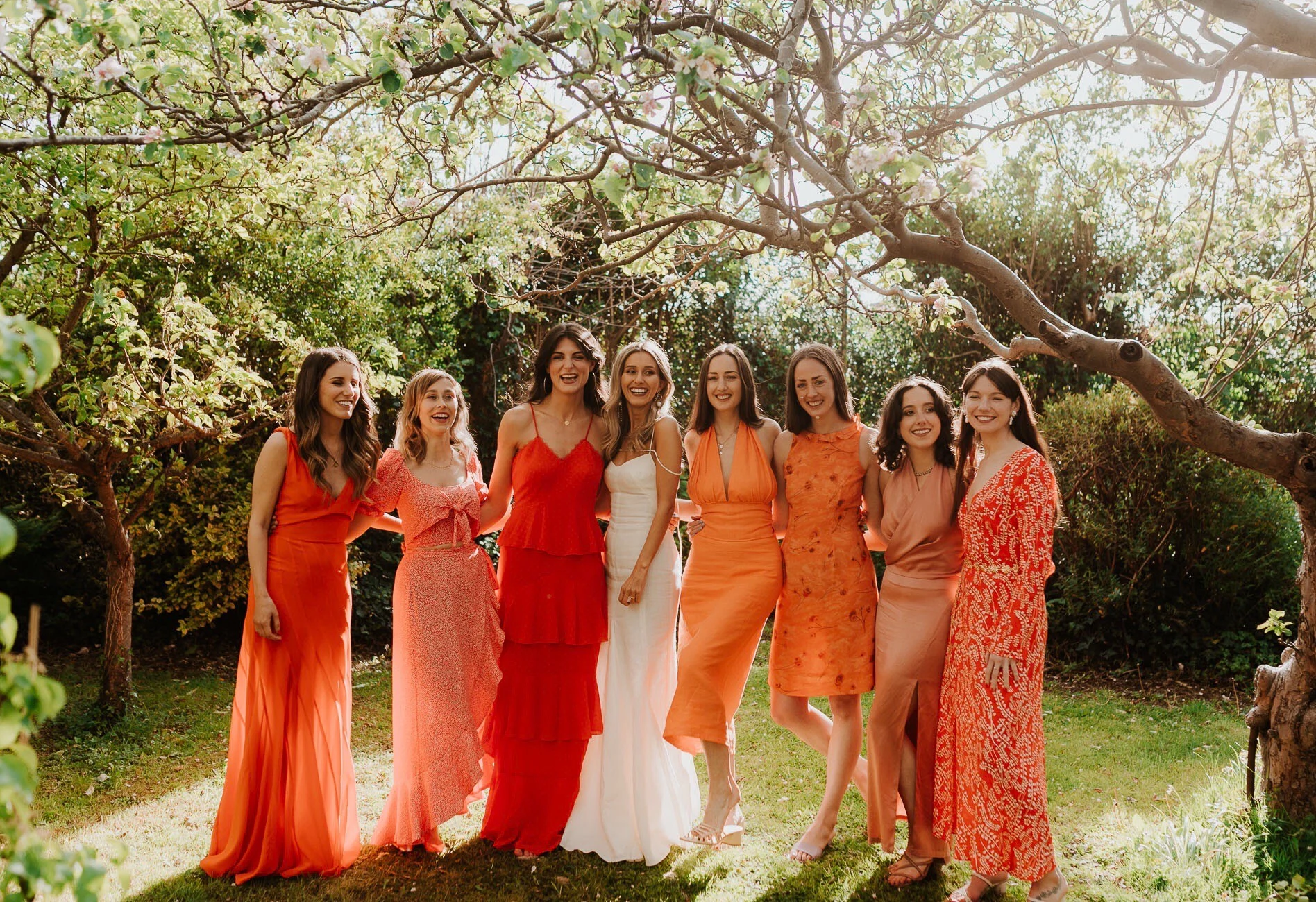 I asked all of my best friends to be bridesmaids on the day and thought the more girls the merrier! It really felt so special having them all by my side. I told them the bridesmaid dress theme was going to be ‘Aperol Spritz’ and I asked them to find a shade or patterned outfit within that theme.