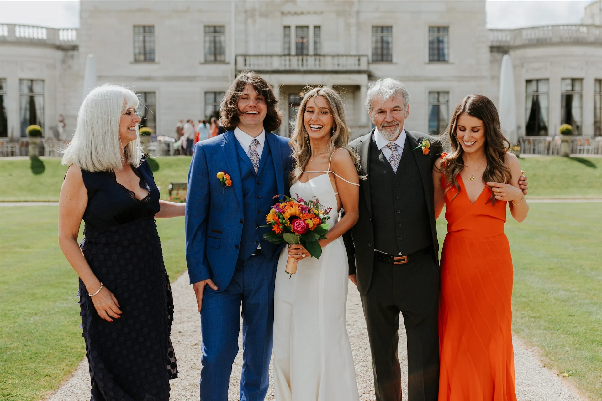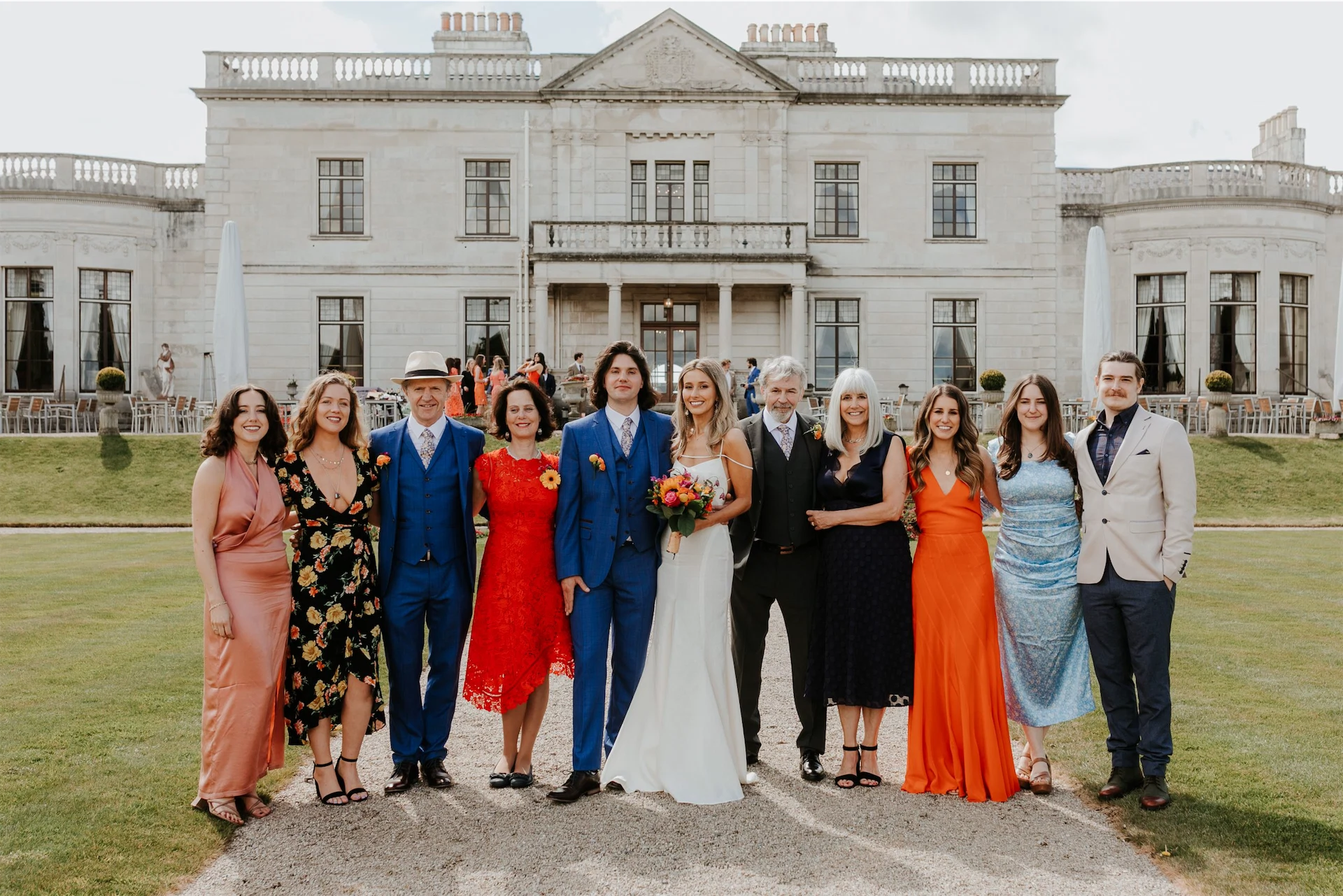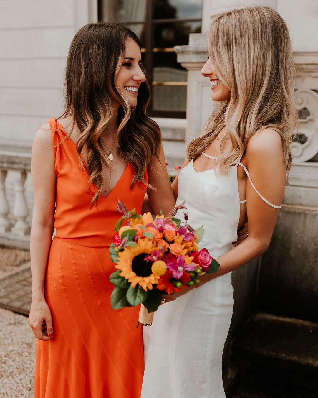 I asked all of my best friends to be bridesmaids on the day and thought the more girls the merrier! It really felt so special having them all by my side. I told them the bridesmaid dress theme was going to be ‘Aperol Spritz’ and I asked them to find a shade or patterned outfit within that theme.