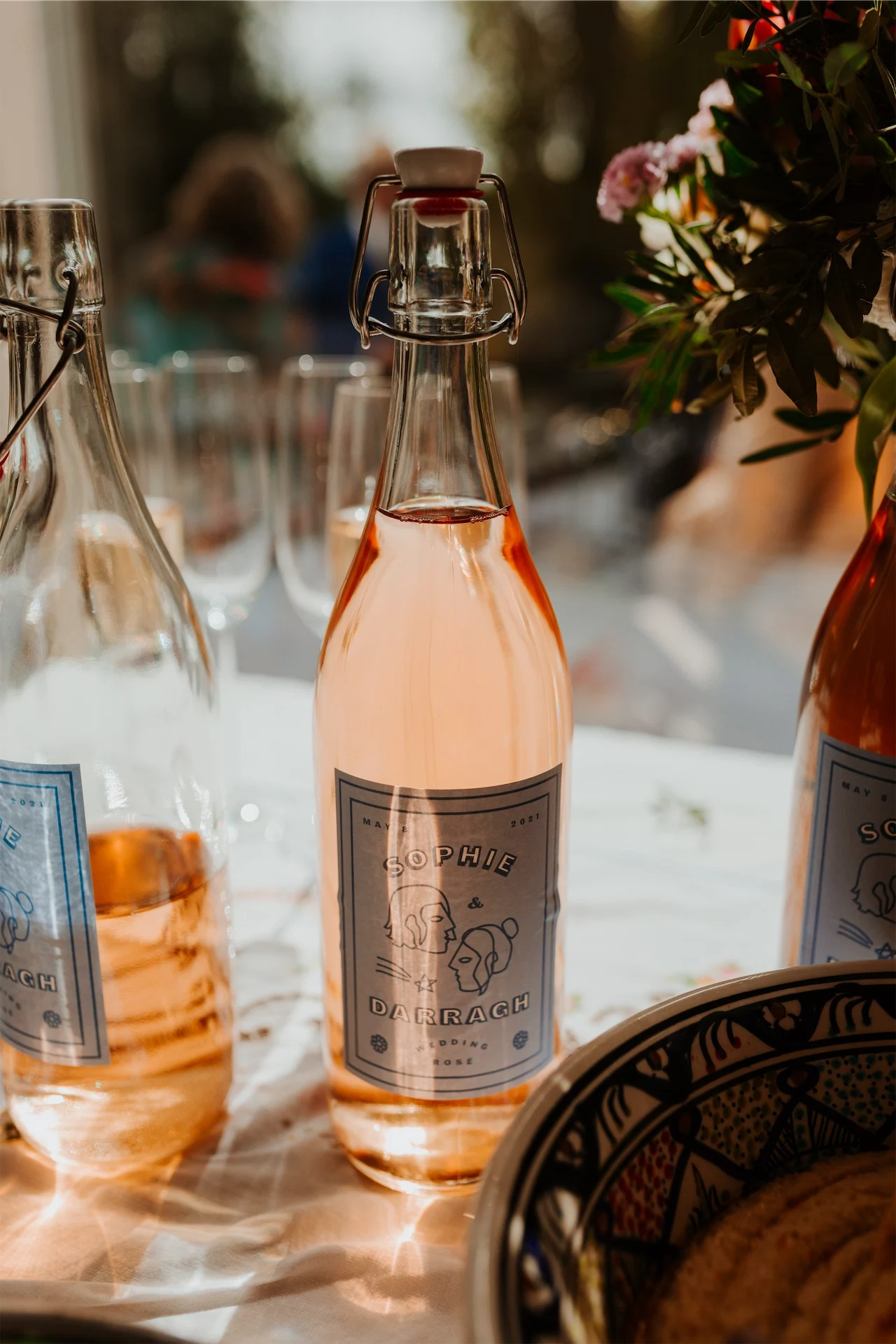 My sister-in-law and talented friend Keelin designed our wedding invitations and rosé wine labels. Darragh illustrated a little image of him and I which Keelin incorporated into her final designs. The wine was supplied in clear bottles from Frank’s Wine Bar on Camden Street. These extra little details really helped tie everything in together.