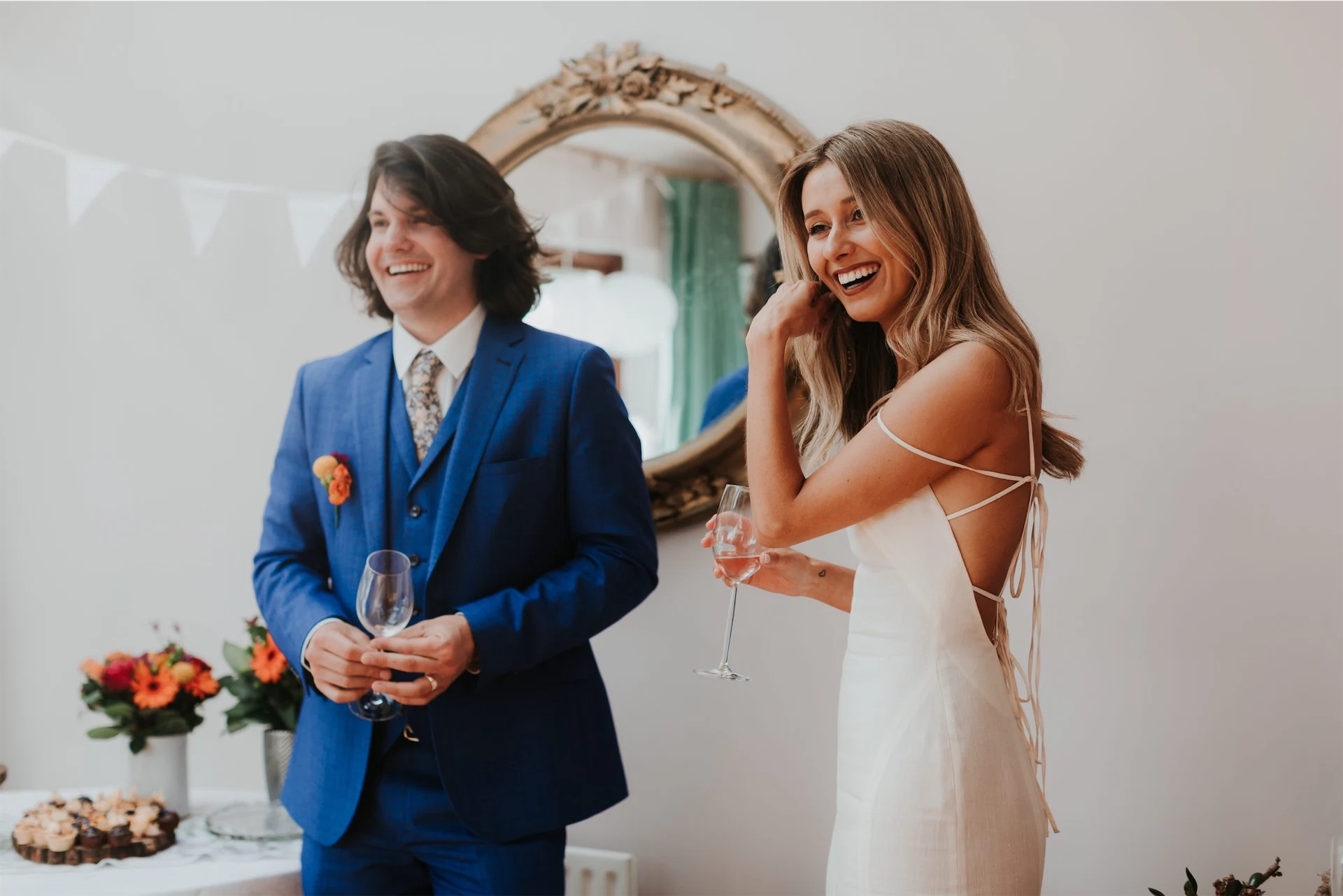 Our reception took place in Darragh’s family home in Dun Laoghaire. We stayed up decorating the house the night before praying the weather would cooperate because we were seriously relying on the garden as our reception come party space!