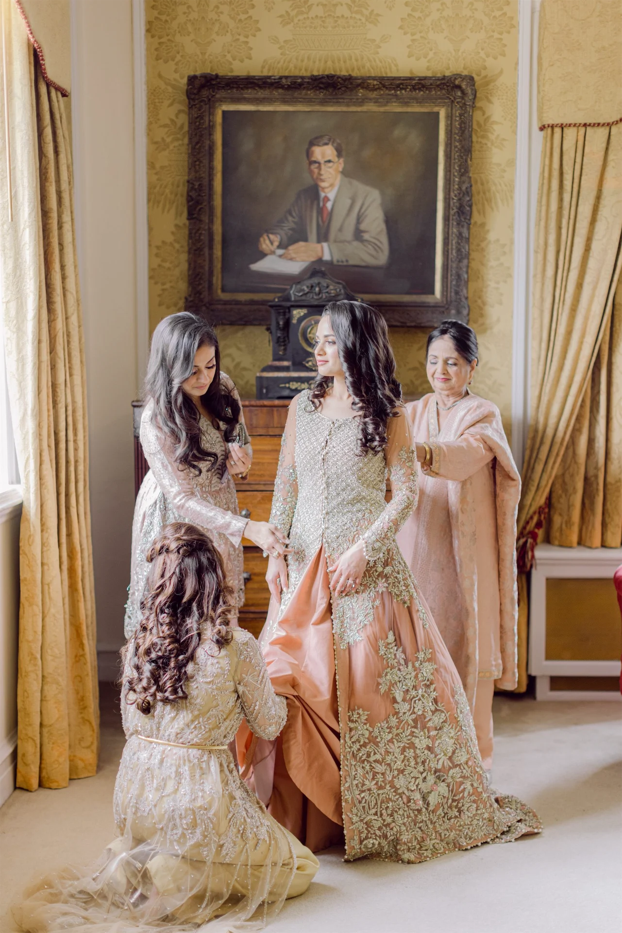 I chose to wear a Pakistani bridal dress as a nod to my heritage. After speaking to a few designers over the phone but not being able to make the decision, I decided to take a short trip home and spent three days going to various designers in Lahore that I had shortlisted, with my mam by my side.