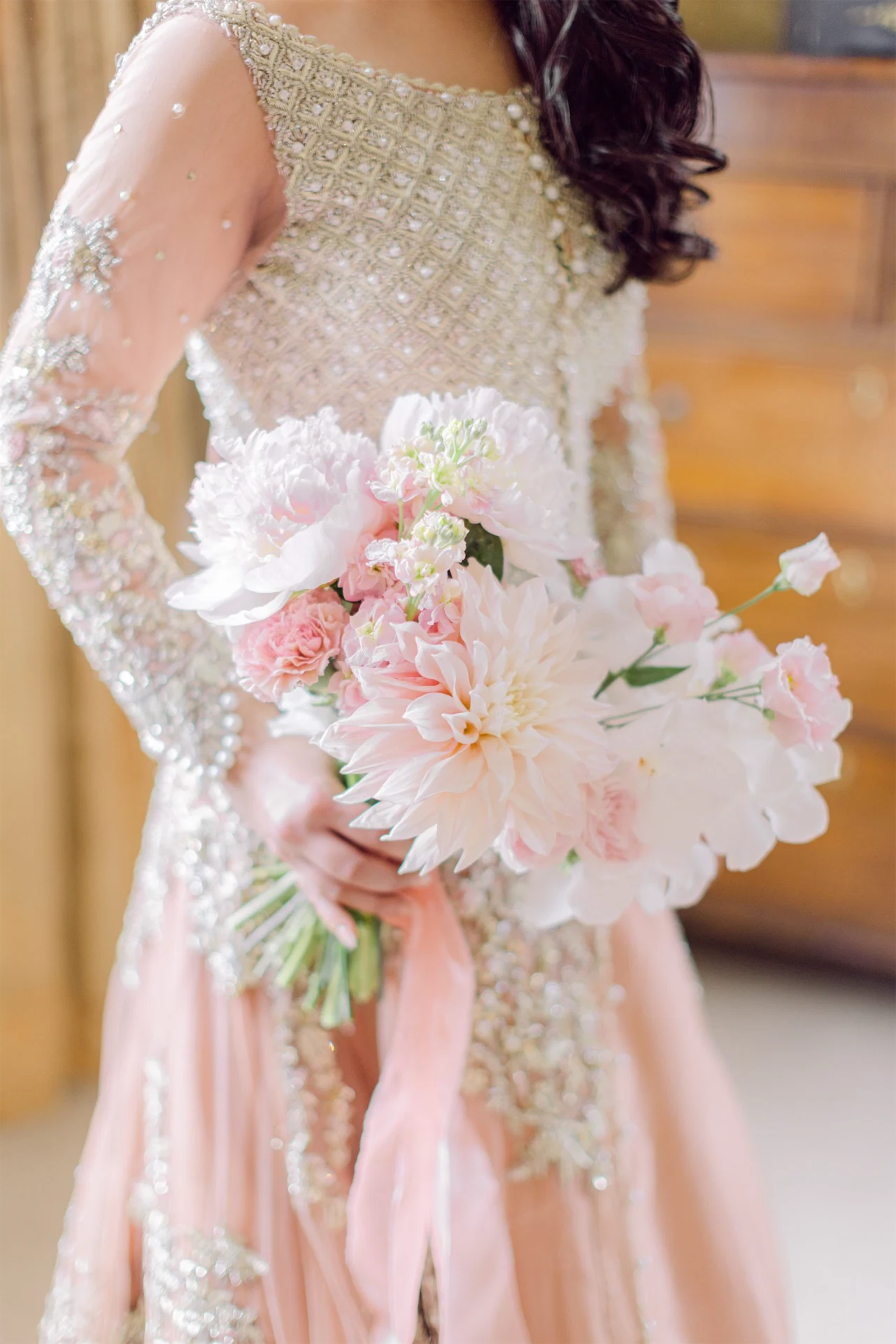 While waiting in Saira Shakira’s boutique (a Pakistani designer), a dress caught my eye, hanging in between all the other beautiful dresses. After trying it on and some video calls with my sisters, it felt like the one and I took the plunge!