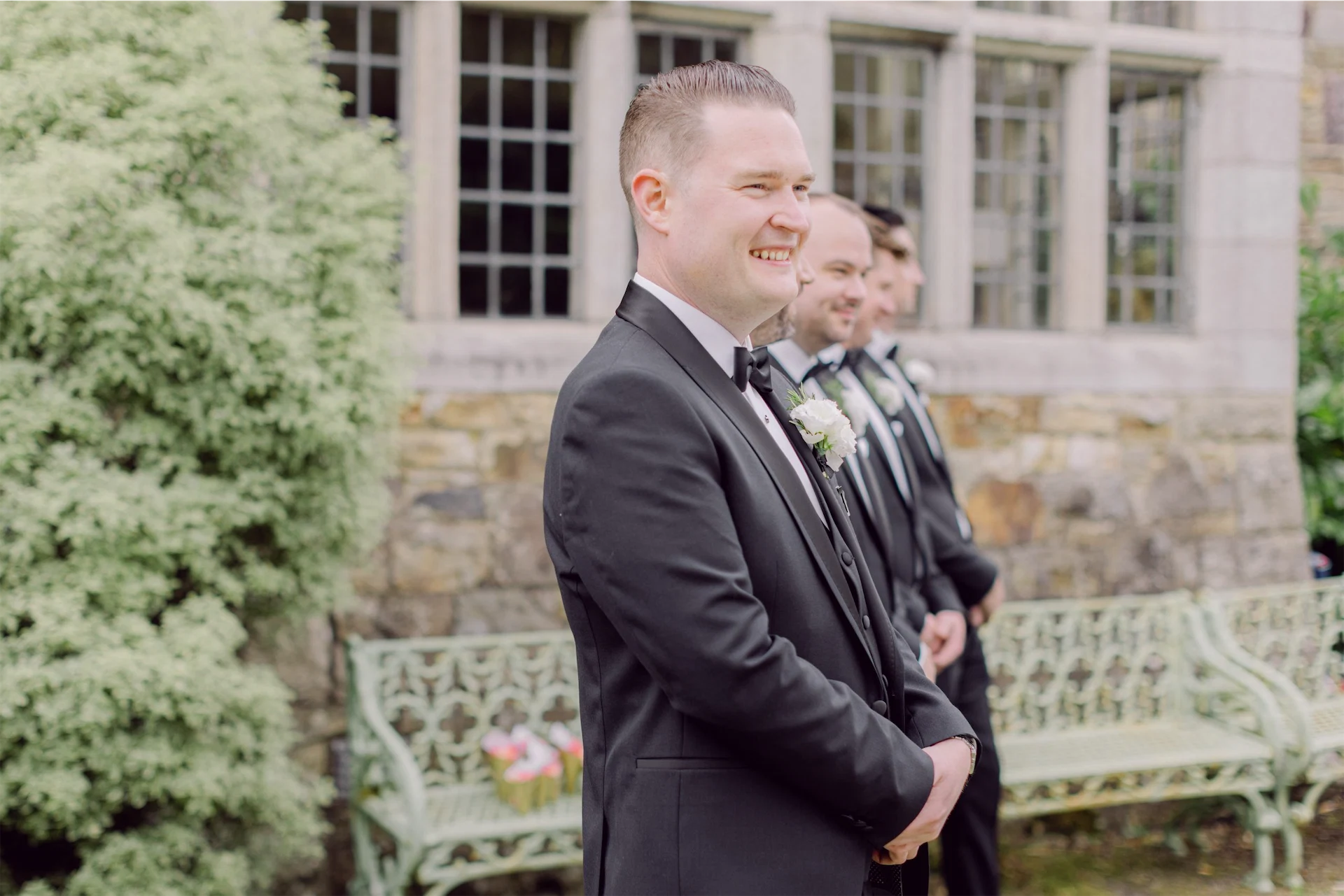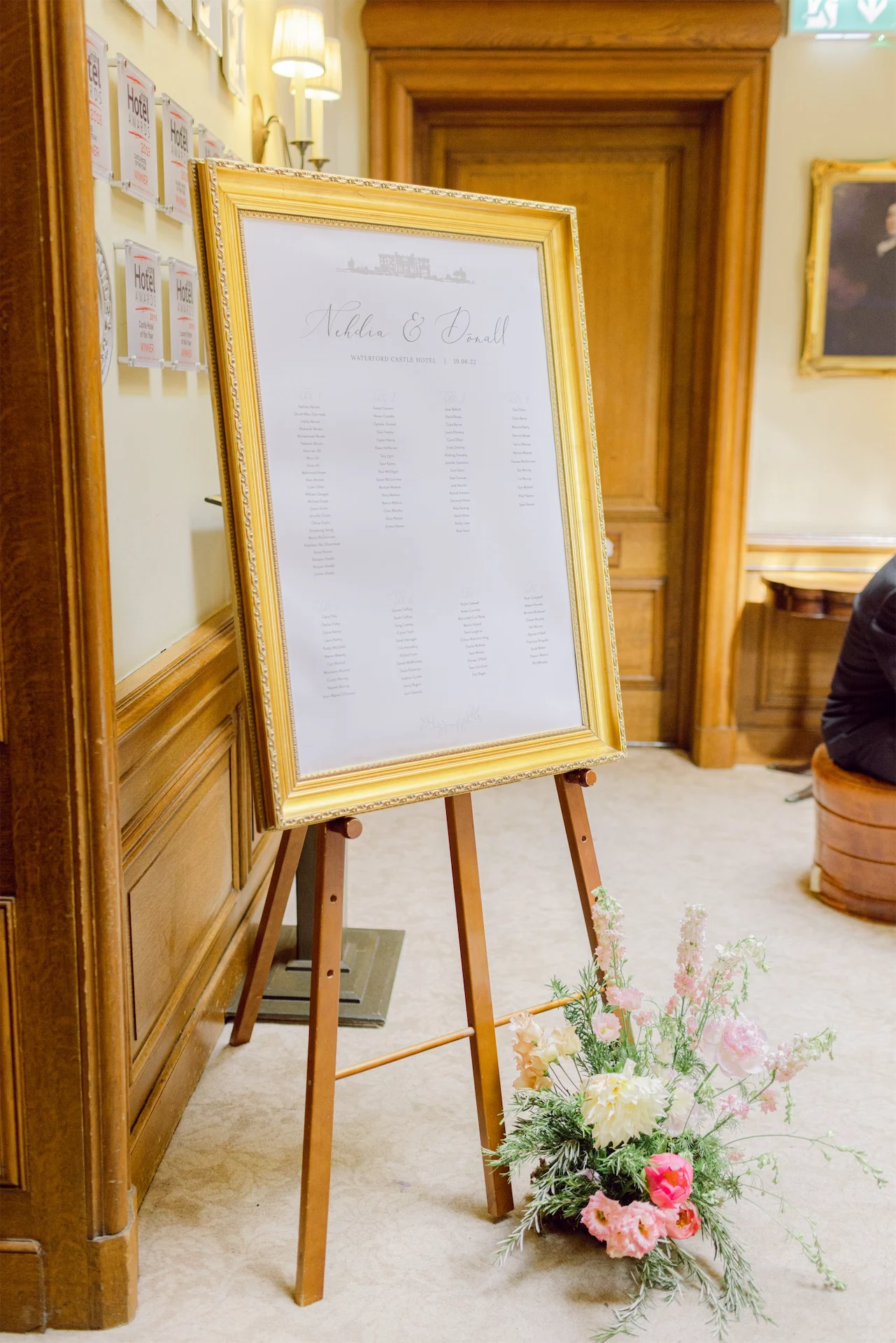 I also finalised my four bridesmaids (all wore different dresses), my two nieces’ and my mam’s dresses in that short trip. Dónall chose a classic black tux with velvet shawl lapel for the day from Detail Menswear in Kilkenny.